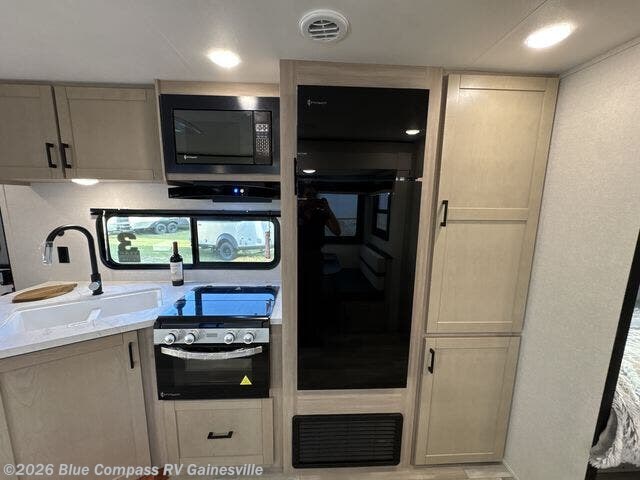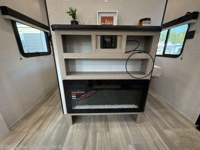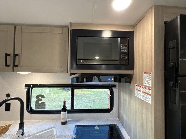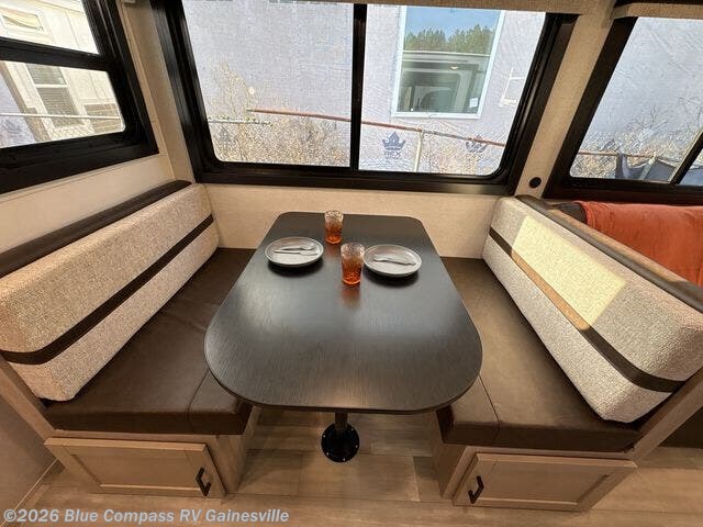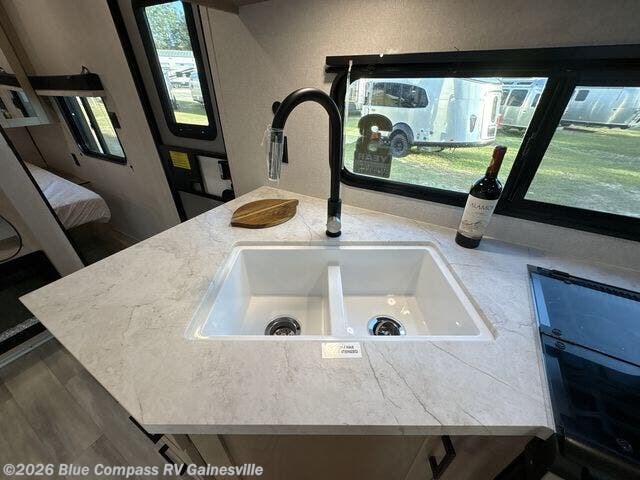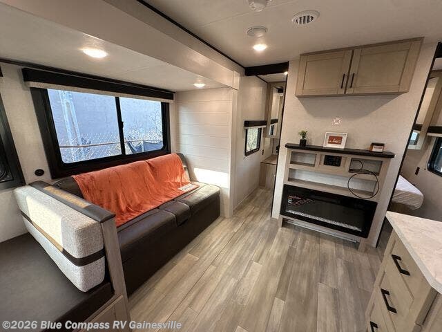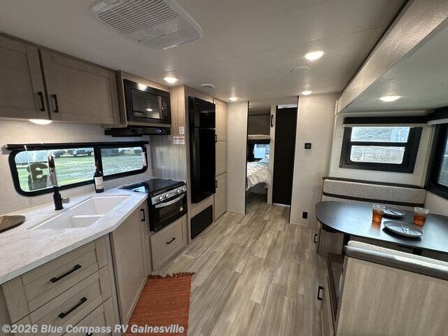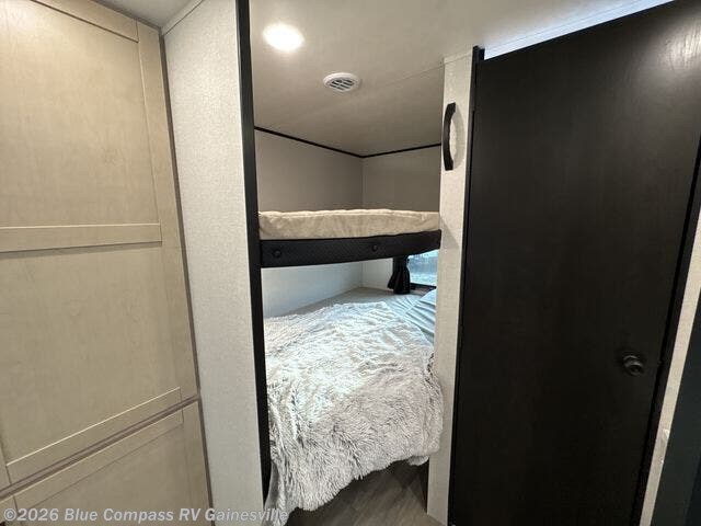 The whole gang will love weekends in the woods with this travel trailer in tow! There is a large slide out for added space, and here you'll find the jack-knife sofa and booth dinette. You can claim the front private bedroom to yourselves, while your guests or little ones take the double-size bunks. A full kitchen is complete with a three-burner cooktop and microwave oven to make meals each day, plus a 12V refrigerator and pantry for food storage. This unit also includes an outdoor kitchen with a refrigerator to keep cold drinks ready to enjoy!