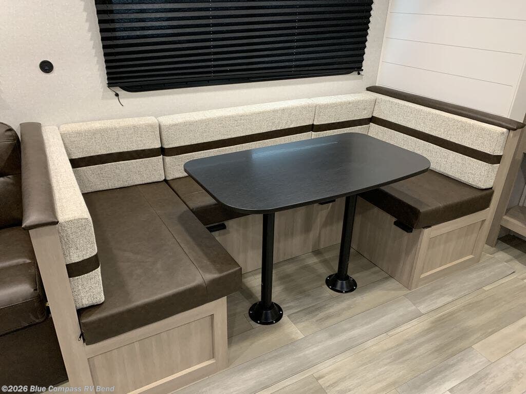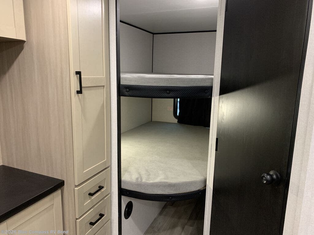The whole gang will love weekends in the woods with this travel trailer in tow! There is a large slide out for added space, and here you'll find the jack-knife sofa and booth dinette. You can claim the front private bedroom to yourselves, while your guests or little ones take the double-size bunks. A full kitchen is complete with a three-burner cooktop and microwave oven to make meals each day, plus a 12V refrigerator and pantry for food storage. This unit also includes an outdoor kitchen with a refrigerator to keep cold drinks ready to enjoy!