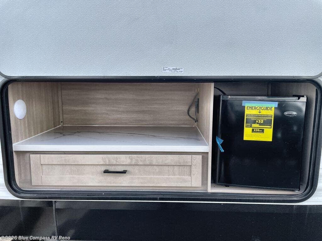 The whole gang will love weekends in the woods with this travel trailer in tow! There is a large slide out for added space, and here you'll find the jack-knife sofa and U-shaped dinette. There is also an entertainment center with a fireplace for cozy evenings indoors, and you'll appreciate the storage cabinet and shelves for board games, movies and more! You can claim the front private bedroom to yourselves, while your guests or little ones take the double-size bunks. A full kitchen is complete with a three-burner cooktop and microwave oven to make meals each day, plus a 12V refrigerator for food storage. This unit also includes an outdoor kitchen with a refrigerator to keep cold drinks ready to enjoy!