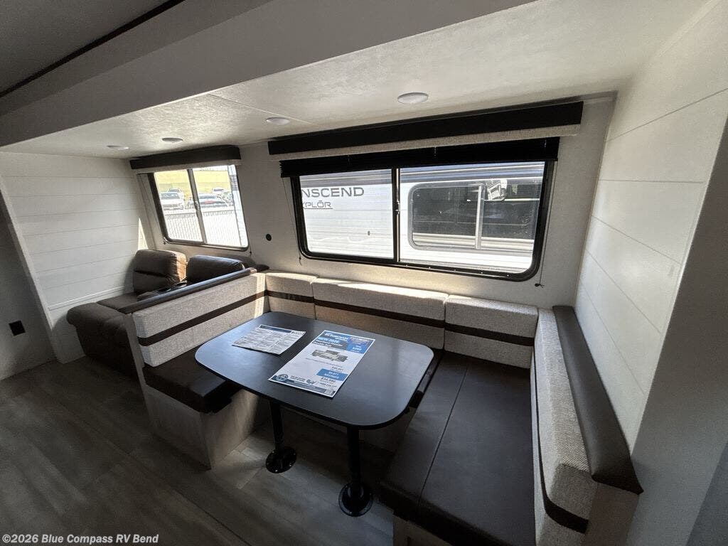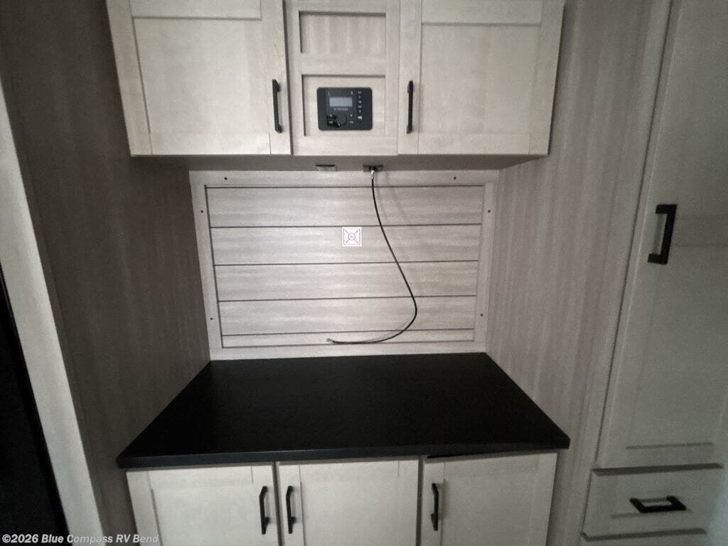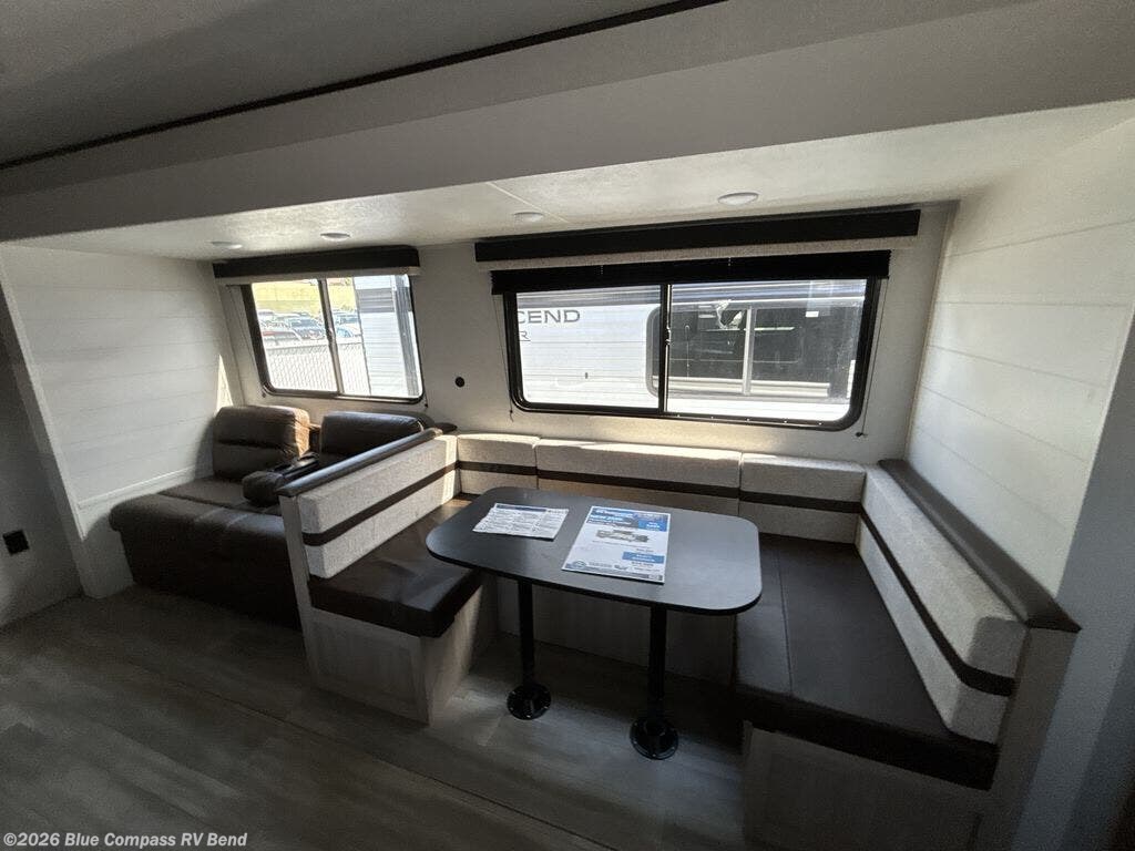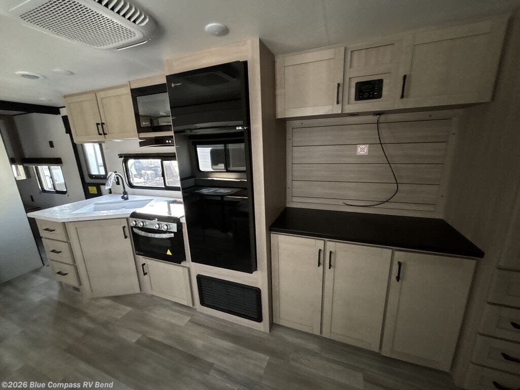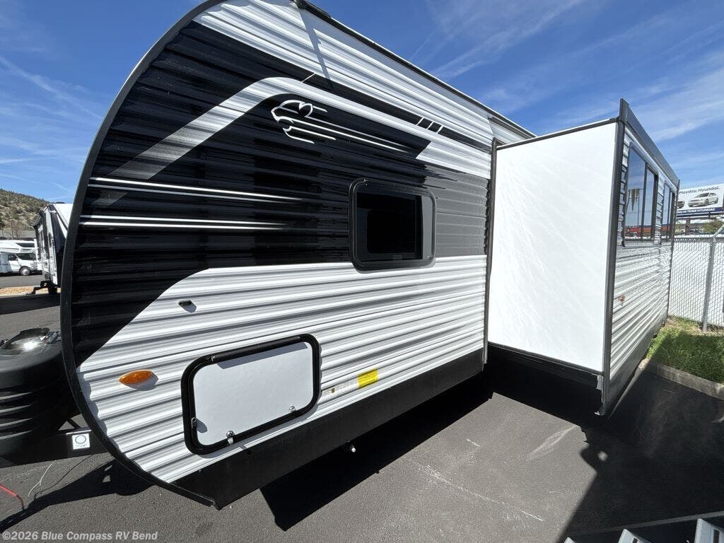 The whole gang will love weekends in the woods with this travel trailer in tow! There is a large slide out for added space, and here you'll find the jack-knife sofa and U-shaped dinette. There is also an entertainment center with a fireplace for cozy evenings indoors, and you'll appreciate the storage cabinet and shelves for board games, movies and more! You can claim the front private bedroom to yourselves, while your guests or little ones take the double-size bunks. A full kitchen is complete with a three-burner cooktop and microwave oven to make meals each day, plus a 12V refrigerator for food storage. This unit also includes an outdoor kitchen with a refrigerator to keep cold drinks ready to enjoy!