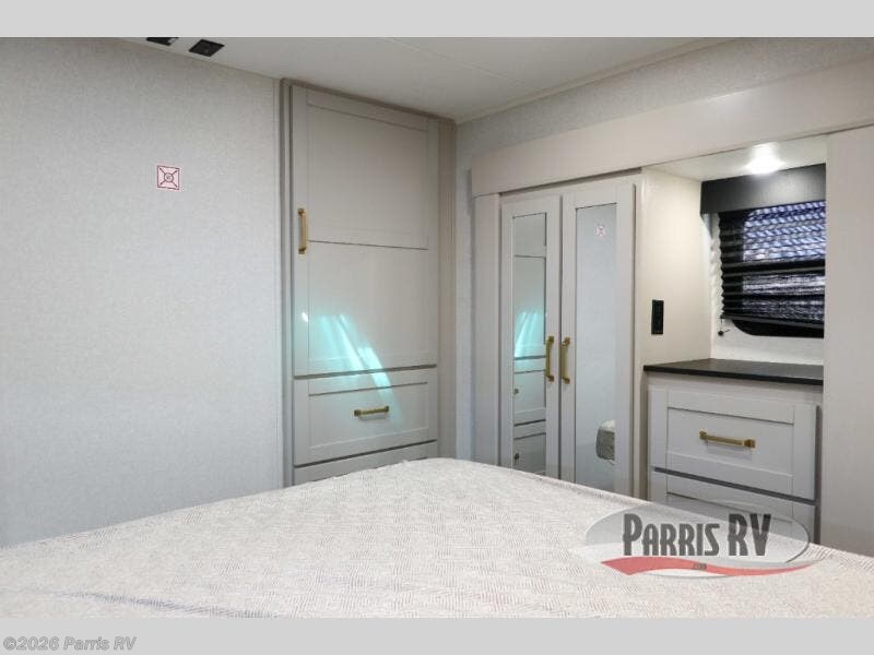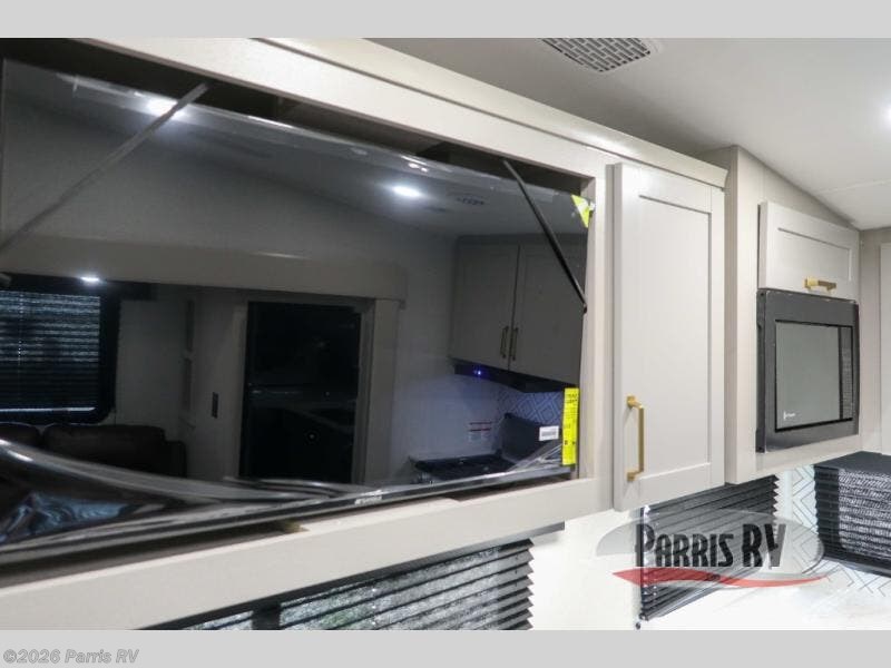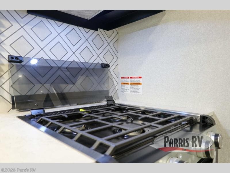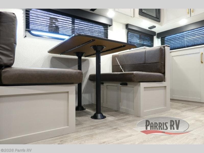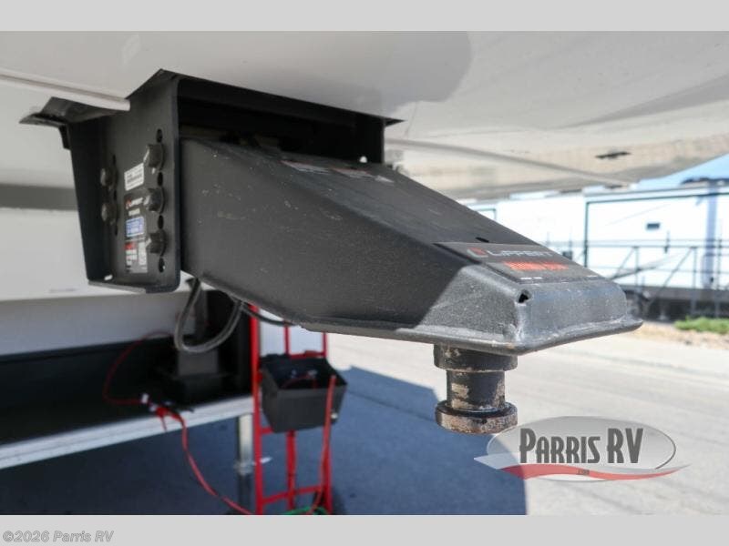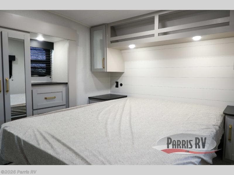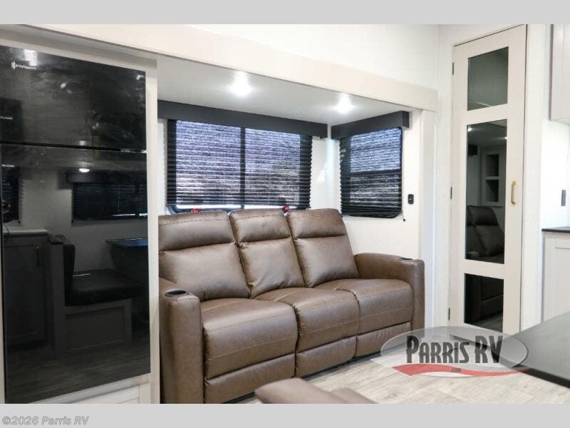 The fifth wheel you were waiting for! The spacious rear kitchen is equipped with a three-burner cooktop, microwave, booth dinette, 12V refrigerator, and sink, providing ample space for meal preparation. Overhead cabinets and a pantry provide ample storage for cookware, dishes, and other essential kitchen items. The living area features a trifold sofa, perfect for relaxation and entertainment. The full bathroom’s thoughtful design ensures that everyone has their own space, and the front bedroom is a retreat from the world, featuring a plush queen bed, a spacious wardrobe, and a closet.