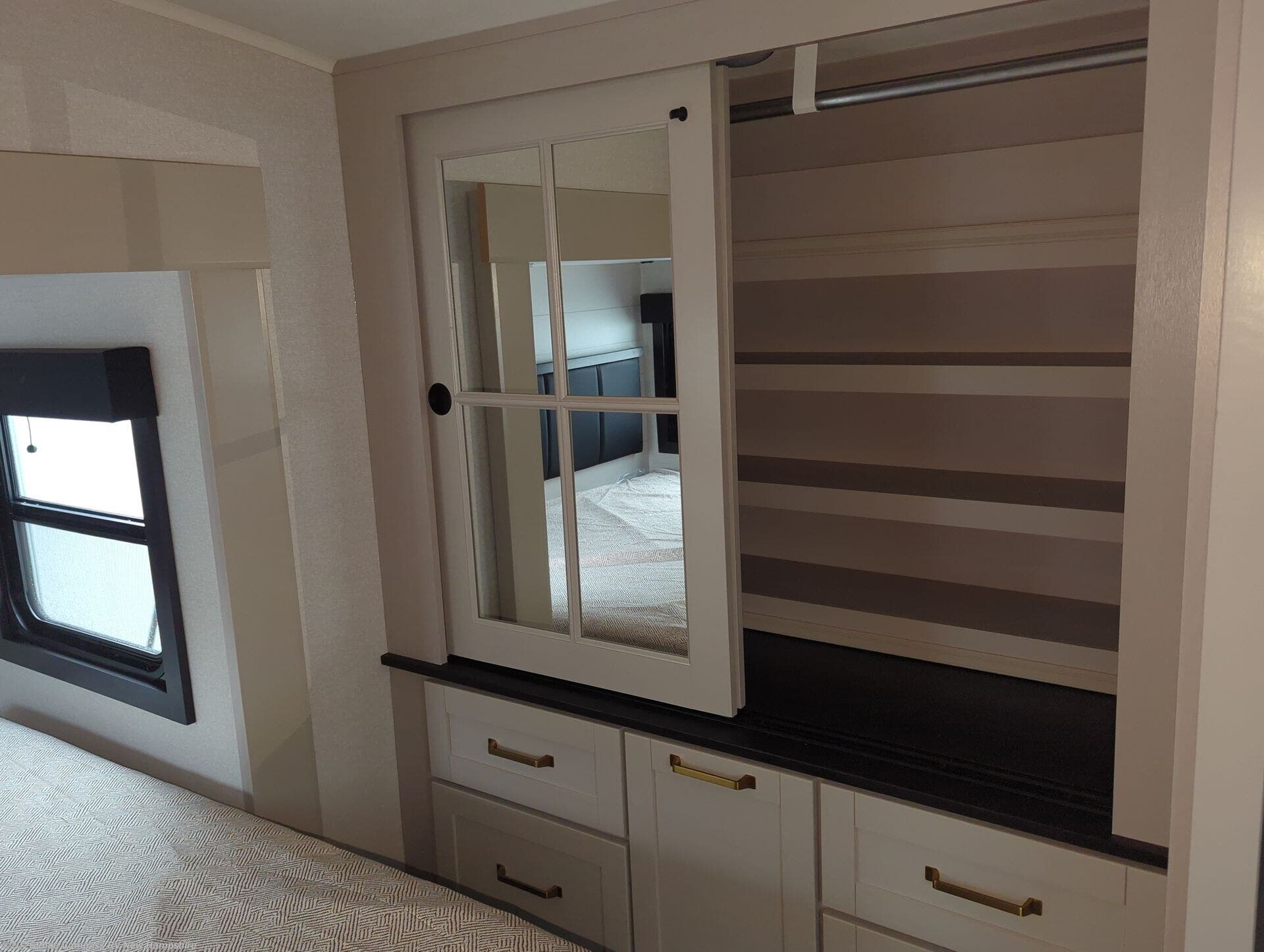 A roomy fifth-wheel designed for families or travelers seeking high comfort, large living areas, and abundant storage. With multiple slide-outs, a strong GVWR, and built for long trips, it's perfect for those who want a home-away-from-home experience.