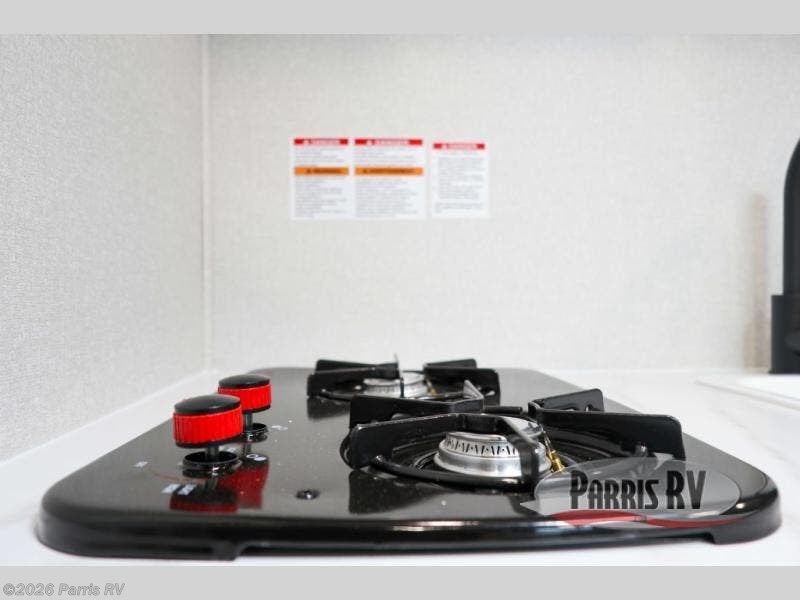 This lightweight travel trailer includes everything you need for comfortable camping trips at the lake. You can make your meals on the two-burner cooktop or in the microwave oven, and a 12V refrigerator will keep leftovers fresh. A front bed provides a great night's rest, and there are 30" x 73" bunk beds for your guests or little ones. And a private bath with a shower and toilet will let you easily freshen up without having to use the camp's facilities!