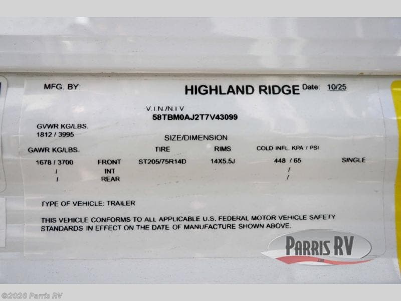 Request More Info on this 2026 Highland Ridge Colt 17QB Offered for sale by Parris RV