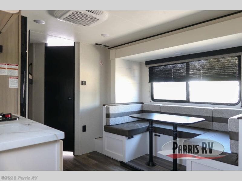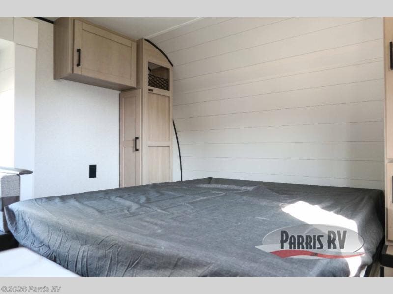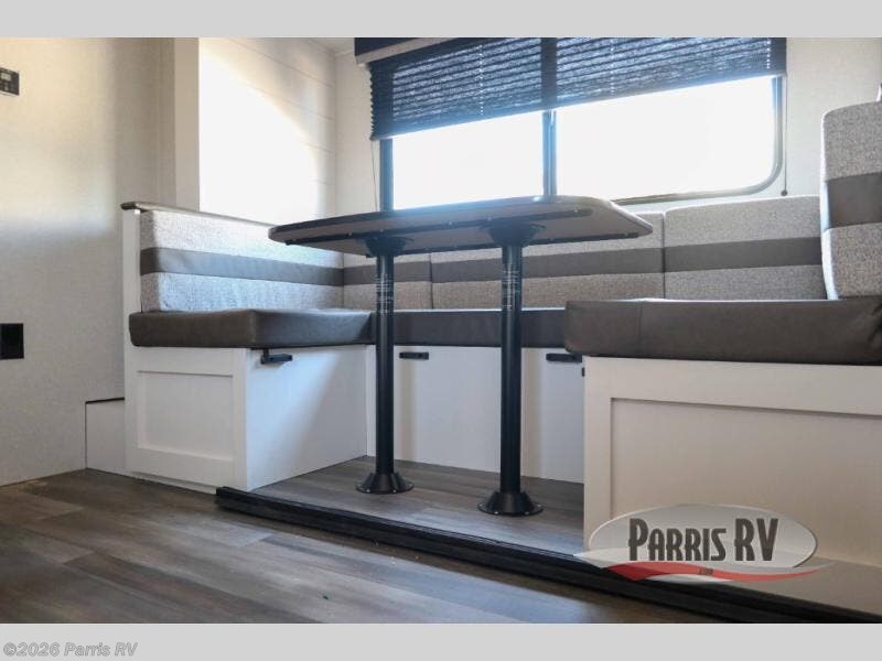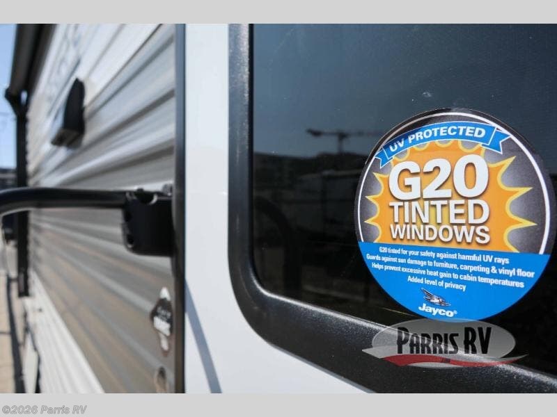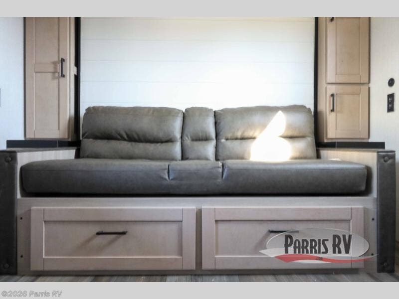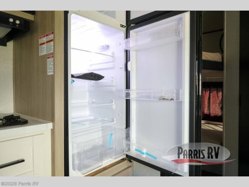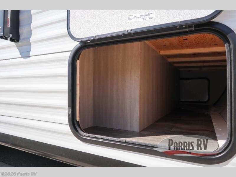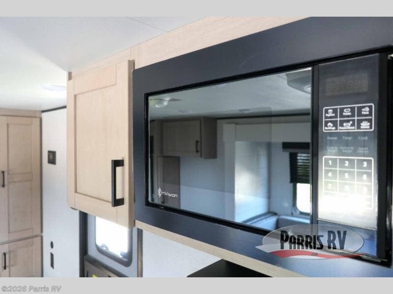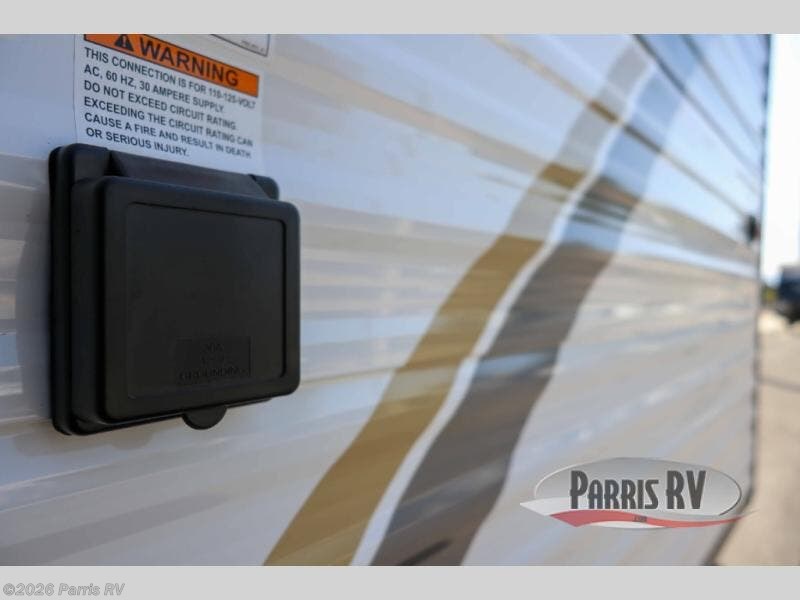 This travel trailer features compact sleeping spaces thanks to the double-size bunk beds in the rear corner, and the private full bath is right next to the bunks for easy nighttime use! You'll have the front Murphy bed all to yourselves, and in the morning, you can fold it away to sit on the jack-knife sofa. A cooktop and microwave oven will let you make meals each day, and there is a 12V refrigerator to keep your cold items fresh. Outside, you'll enjoy the 13' power awning for added shade, and there are two exterior storage compartments to keep fishing poles, hiking gear and more!