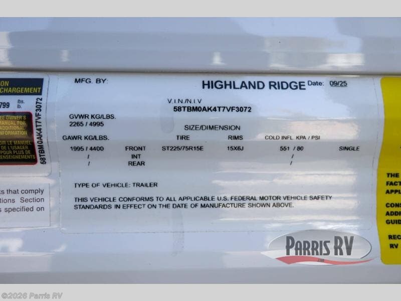 Request More Info on this 2026 Highland Ridge Colt 18MBS Offered for sale by Parris RV