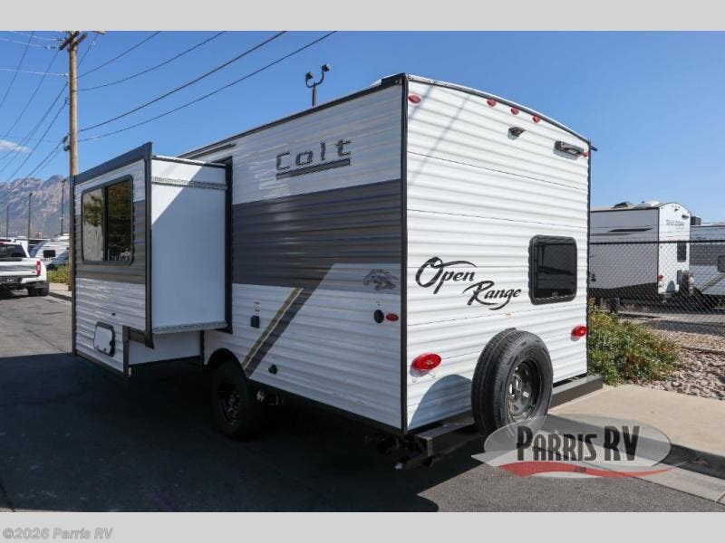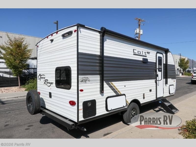 With any Colt travel trailer by Open Range RV, you can be sure you're getting a budget-friendly unit designed to fit your lifestyle! Each one is built to last with a PVC roofing membrane and built-in A-frame, plus there are nitrogen-filled radial tires and self-adjusting electric brakes for easy towing. You will appreciate the utilities that include 30-amp service, an A/C unit, and an on-demand tankless water heater. A few interior comforts include vinyl flooring throughout, solid hardwood cabinet doors, and residential grade kitchen countertops to make your space feel more like home. There are additional features available, depending on the edition you choose, along with available options to further customize your Colt travel trailer!