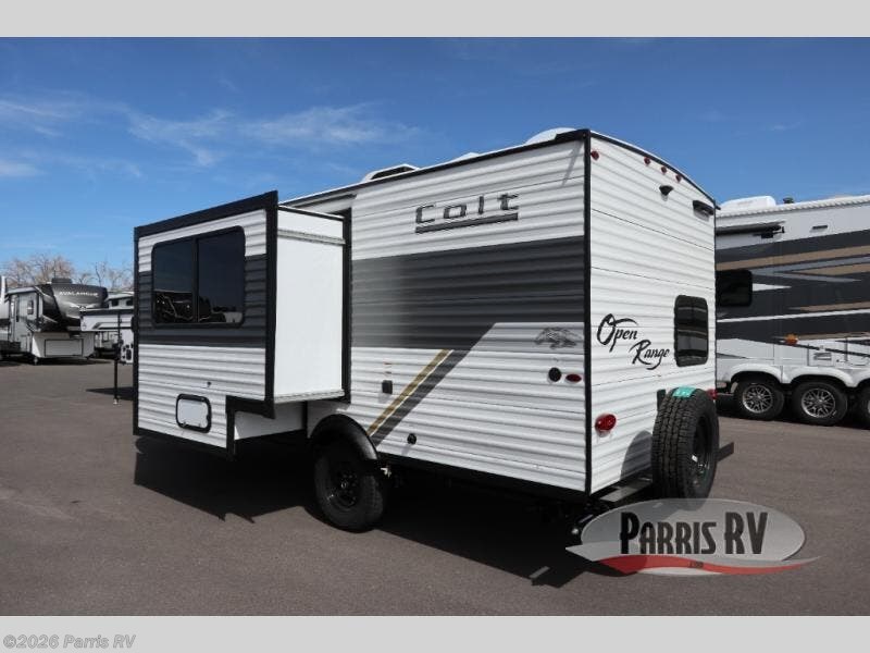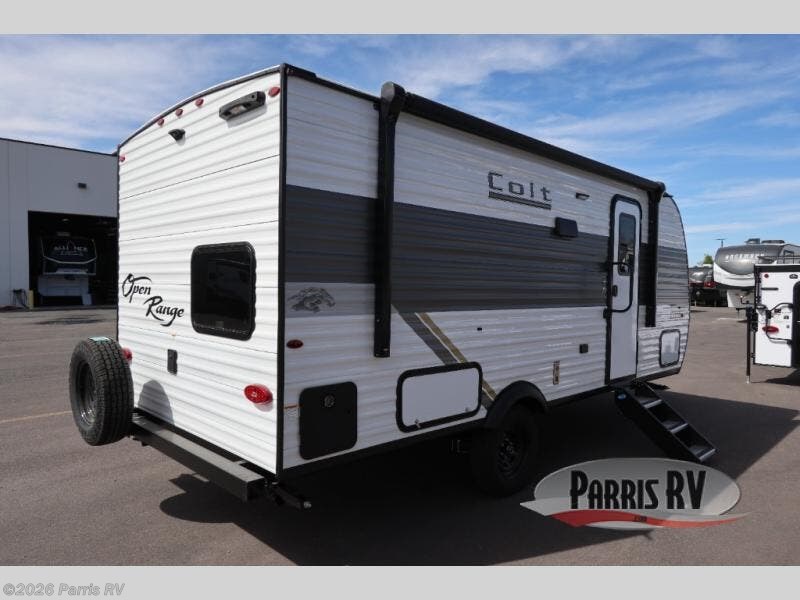 With any Colt travel trailer by Open Range RV, you can be sure you're getting a budget-friendly unit designed to fit your lifestyle! Each one is built to last with a PVC roofing membrane and built-in A-frame, plus there are nitrogen-filled radial tires and self-adjusting electric brakes for easy towing. You will appreciate the utilities that include 30-amp service, an A/C unit, and an on-demand tankless water heater. A few interior comforts include vinyl flooring throughout, solid hardwood cabinet doors, and residential grade kitchen countertops to make your space feel more like home. There are additional features available, depending on the edition you choose, along with available options to further customize your Colt travel trailer!