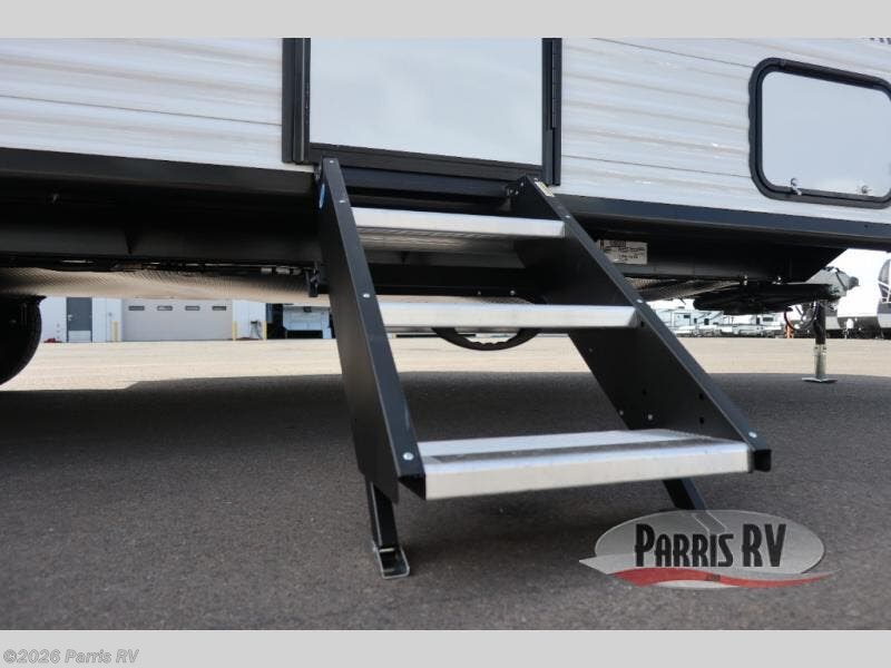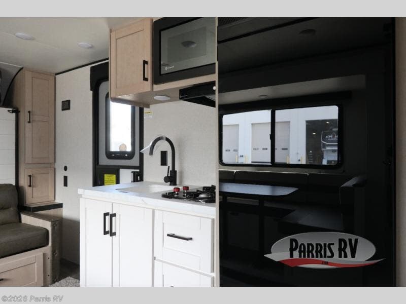 This travel trailer features compact sleeping spaces thanks to the double-size bunk beds in the rear corner, and the private full bath is right next to the bunks for easy nighttime use! You'll have the front Murphy bed all to yourselves, and in the morning, you can fold it away to sit on the jack-knife sofa. A cooktop and microwave oven will let you make meals each day, and there is a 12V refrigerator to keep your cold items fresh. Outside, you'll enjoy the 13' power awning for added shade, and there are two exterior storage compartments to keep fishing poles, hiking gear and more!