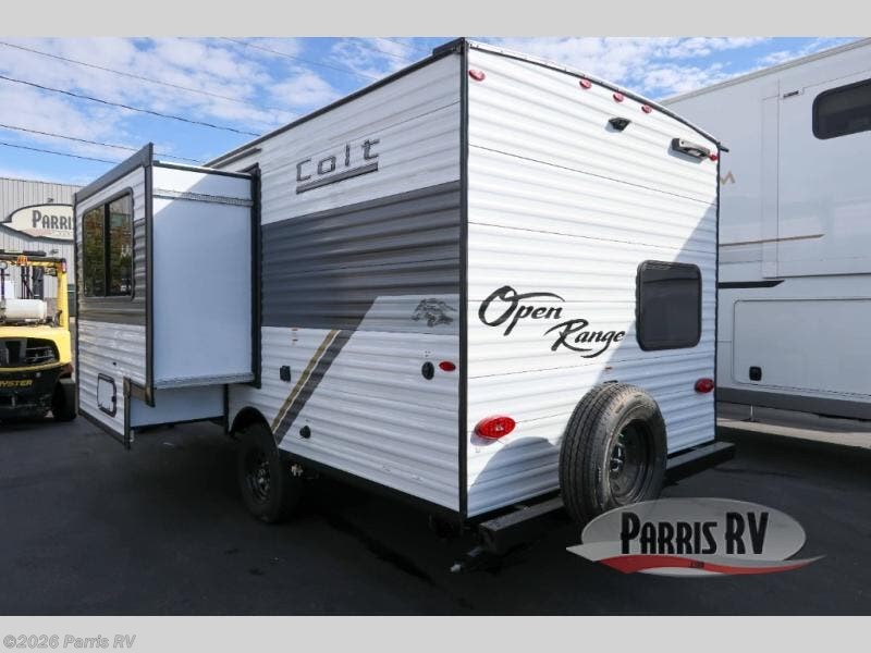 With any Colt travel trailer by Open Range RV, you can be sure you're getting a budget-friendly unit designed to fit your lifestyle! Each one is built to last with a PVC roofing membrane and built-in A-frame, plus there are nitrogen-filled radial tires and self-adjusting electric brakes for easy towing. You will appreciate the utilities that include 30-amp service, an A/C unit, and an on-demand tankless water heater. A few interior comforts include vinyl flooring throughout, solid hardwood cabinet doors, and residential grade kitchen countertops to make your space feel more like home. There are additional features available, depending on the edition you choose, along with available options to further customize your Colt travel trailer!