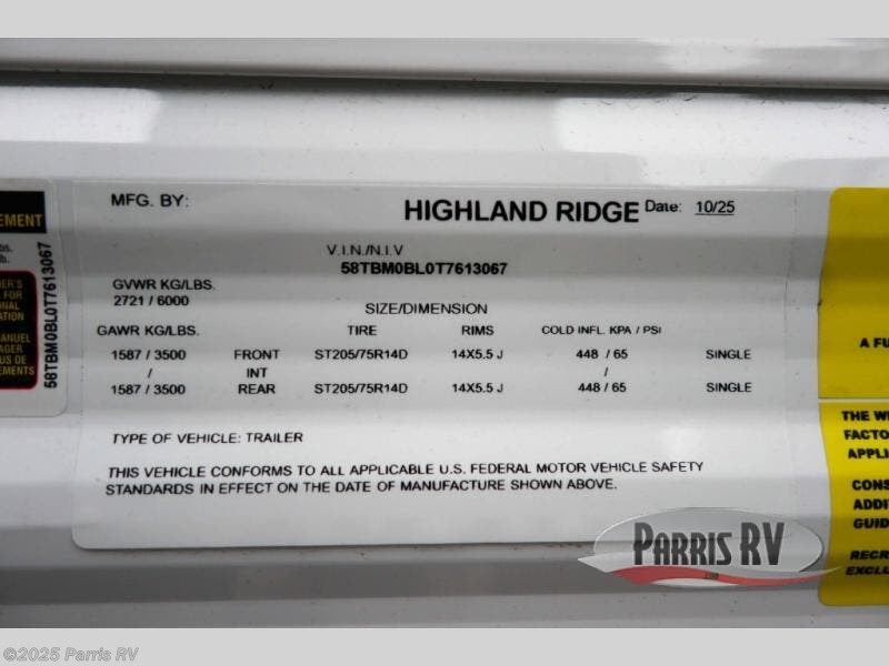 Request More Info on this 2026 Highland Ridge Colt 20DB Offered for sale by Parris RV