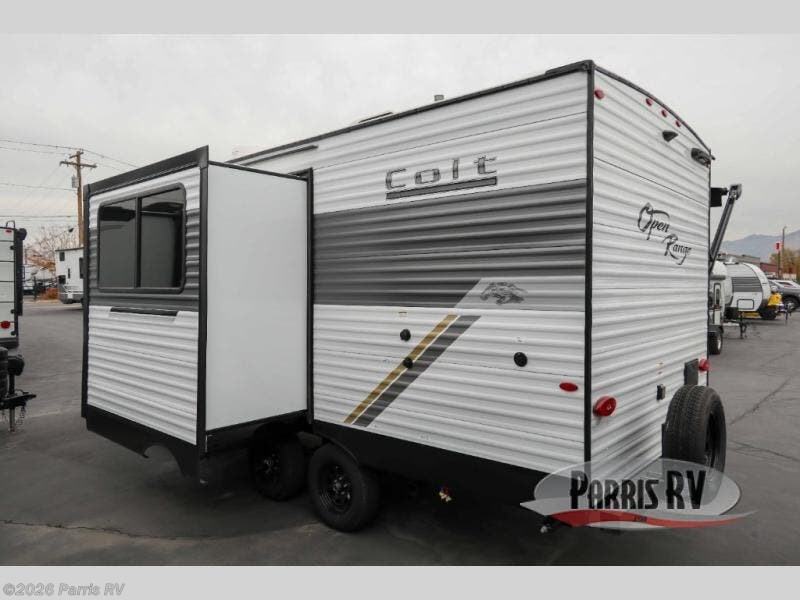 With any Colt travel trailer by Open Range RV, you can be sure you're getting a budget-friendly unit designed to fit your lifestyle! Each one is built to last with a PVC roofing membrane and built-in A-frame, plus there are nitrogen-filled radial tires and self-adjusting electric brakes for easy towing. You will appreciate the utilities that include 30-amp service, an A/C unit, and an on-demand tankless water heater. A few interior comforts include vinyl flooring throughout, solid hardwood cabinet doors, and residential grade kitchen countertops to make your space feel more like home. There are additional features available, depending on the edition you choose, along with available options to further customize your Colt travel trailer!