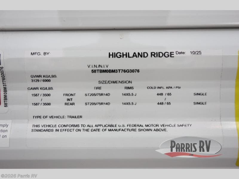 New 2026 Highland Ridge Colt 25BH