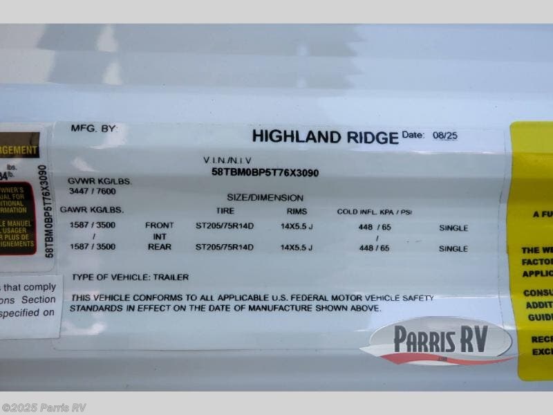 Request More Info on this 2026 Highland Ridge Colt 26DBS Offered for sale by Parris RV
