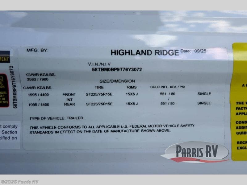 Request More Info on this 2026 Highland Ridge Colt 26RCS Offered for sale by Parris RV