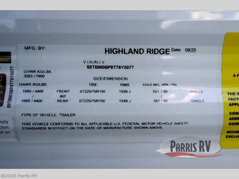 Request More Info on this 2026 Highland Ridge Colt 26RCS Offered for sale by Parris RV