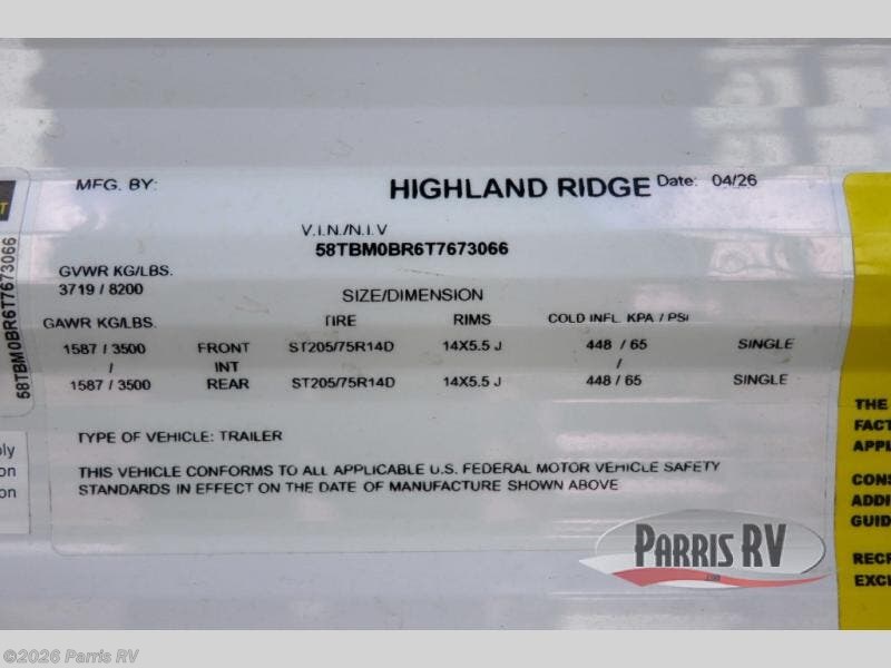Request More Info on this 2026 Highland Ridge Colt 28DBS Offered for sale by Parris RV