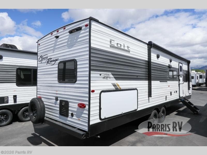 With any Colt travel trailer by Open Range RV, you can be sure you're getting a budget-friendly unit designed to fit your lifestyle! Each one is built to last with a PVC roofing membrane and built-in A-frame, plus there are nitrogen-filled radial tires and self-adjusting electric brakes for easy towing. You will appreciate the utilities that include 30-amp service, an A/C unit, and an on-demand tankless water heater. A few interior comforts include vinyl flooring throughout, solid hardwood cabinet doors, and residential grade kitchen countertops to make your space feel more like home. There are additional features available, depending on the edition you choose, along with available options to further customize your Colt travel trailer!