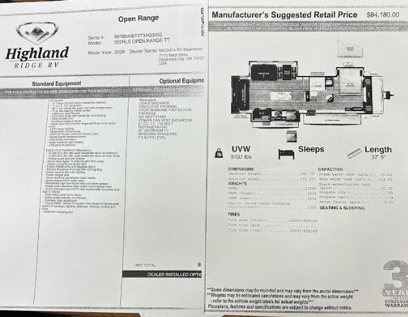 Request More Info on this 2026 Highland Ridge Open Range 322RLS Offered for sale by McClain's RV Oklahoma City