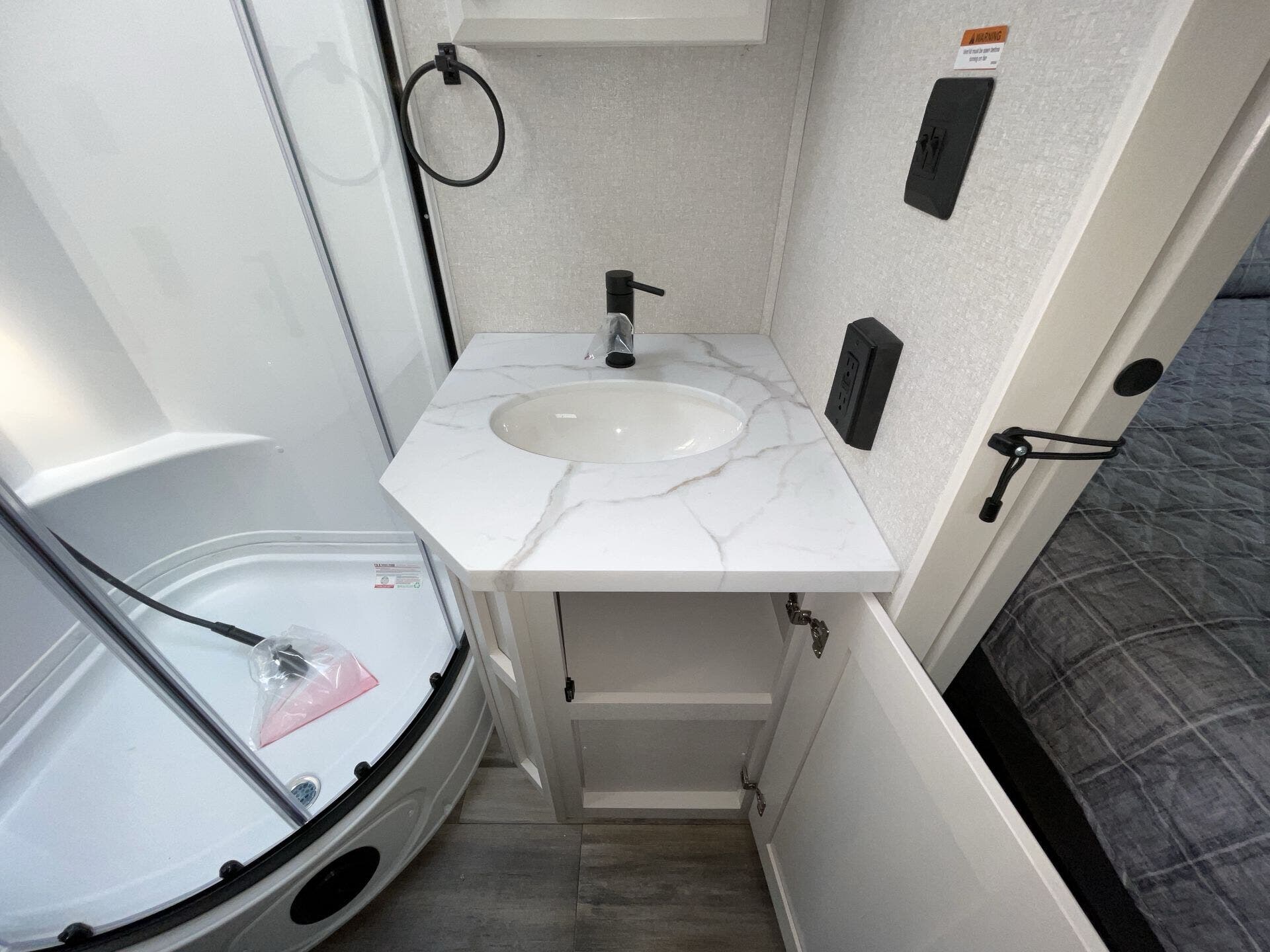 Bath & 1/2, Bunk Beds, Glass Shower Door, King Size Bed, Kitchen Sink, Medicine Cabinet, Overhead Cabinetry, Removable Table, Shower, Solid Surface Countertops, Theater Seating, Toilet, Wardrobe(s) -