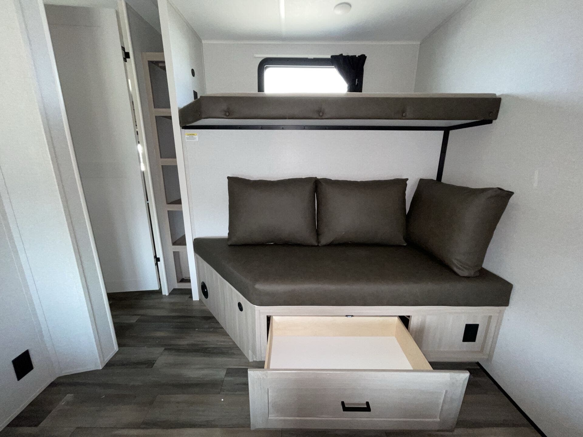 Family-friendly bunkhouse layout — rear bunks + front bedroom