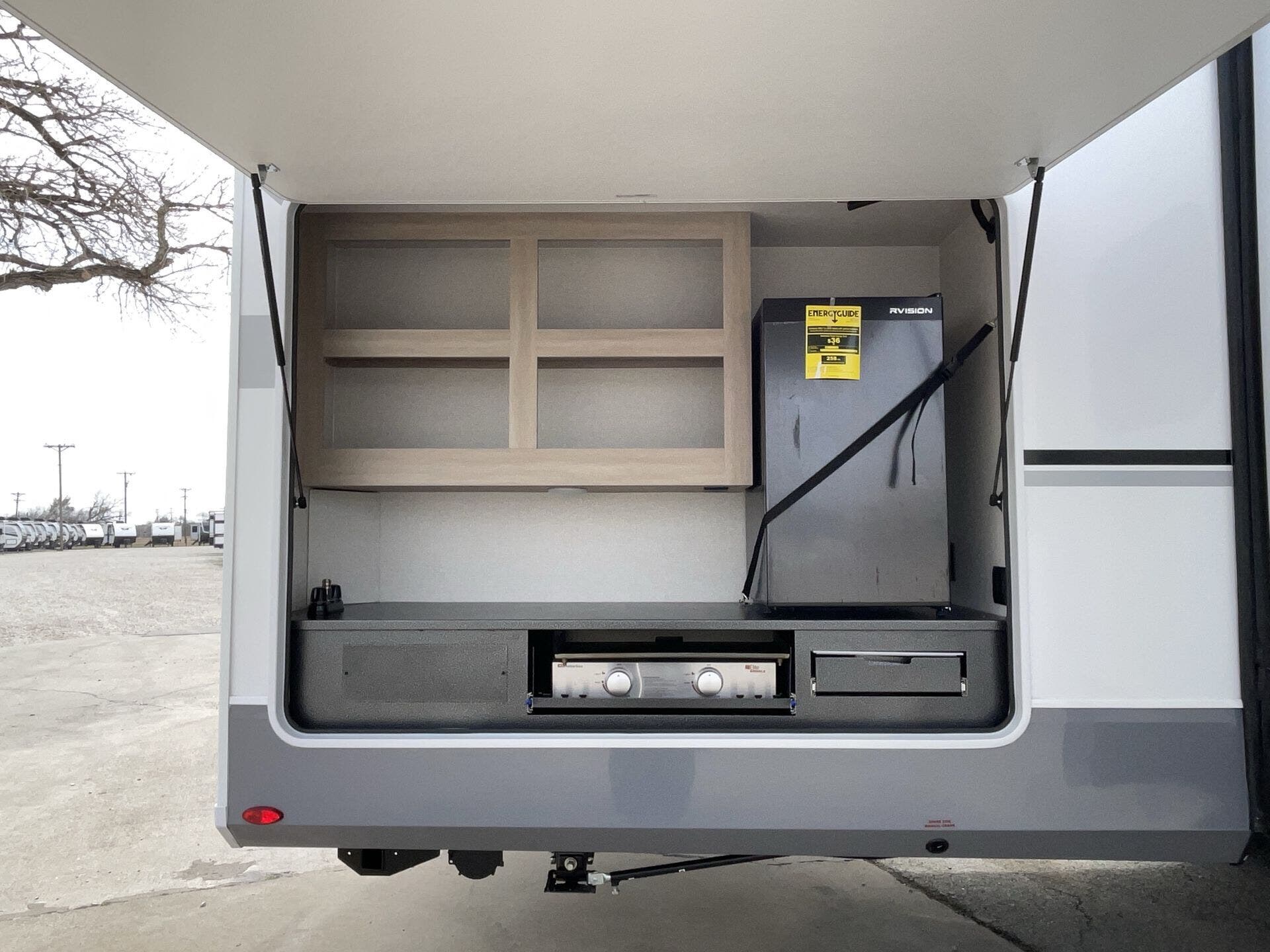 Awning, Black Tank Flush, Enclosed Underbelly, Exterior Grill, Griddle, Ladder, Power Awning, PVC Roof, Screen Door, Slideout -