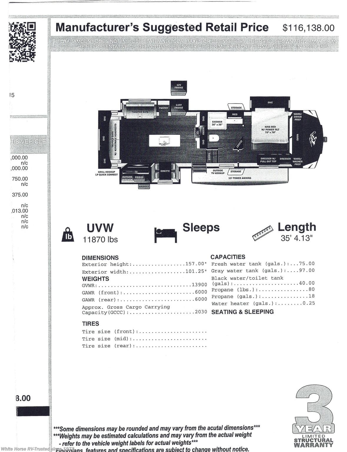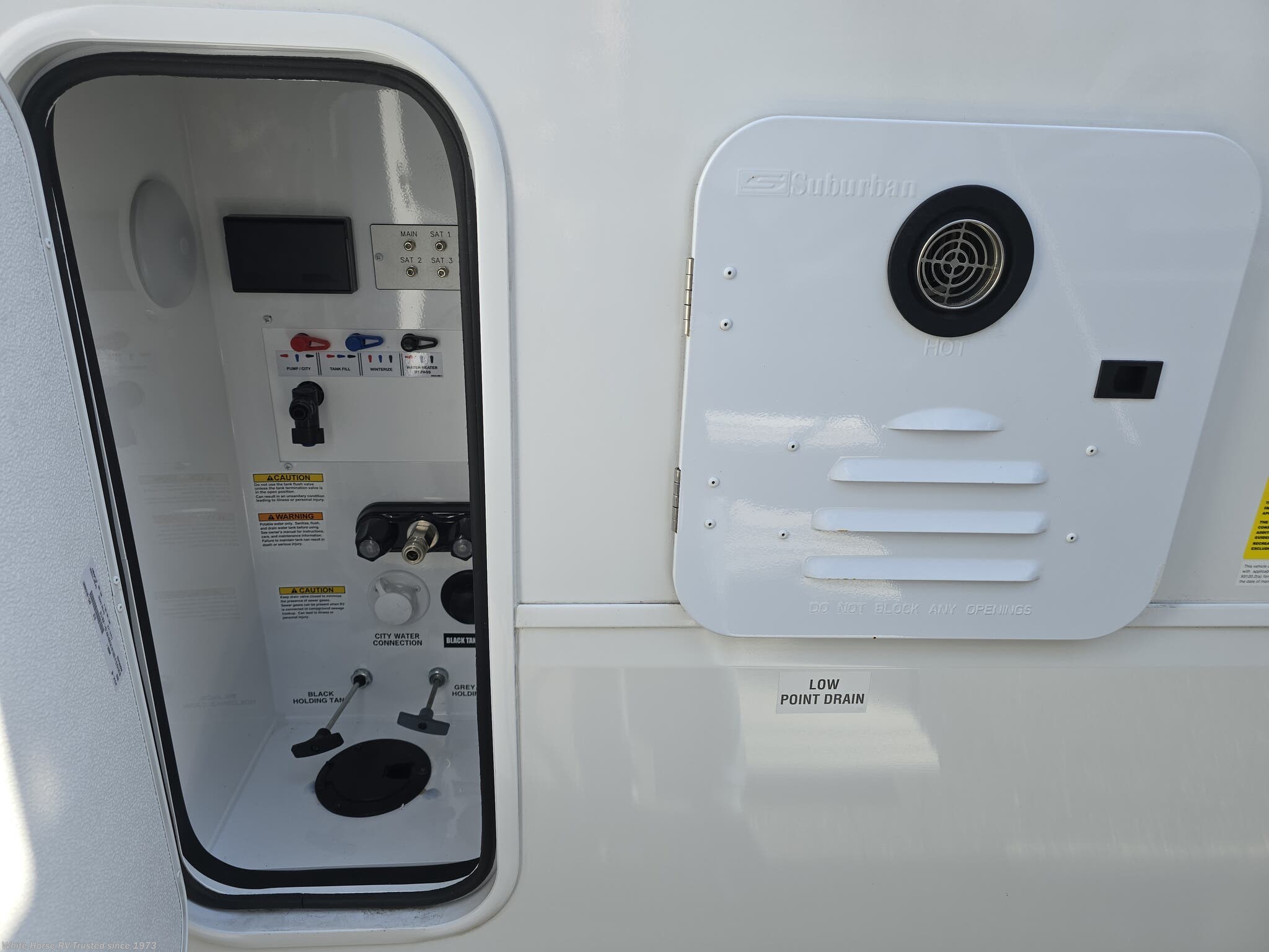 Awning, Black Tank Flush, Enclosed Underbelly, Exterior Grill, Griddle, Hitch, Ladder, Power Awning, PVC Roof, Screen Door, Slideout -