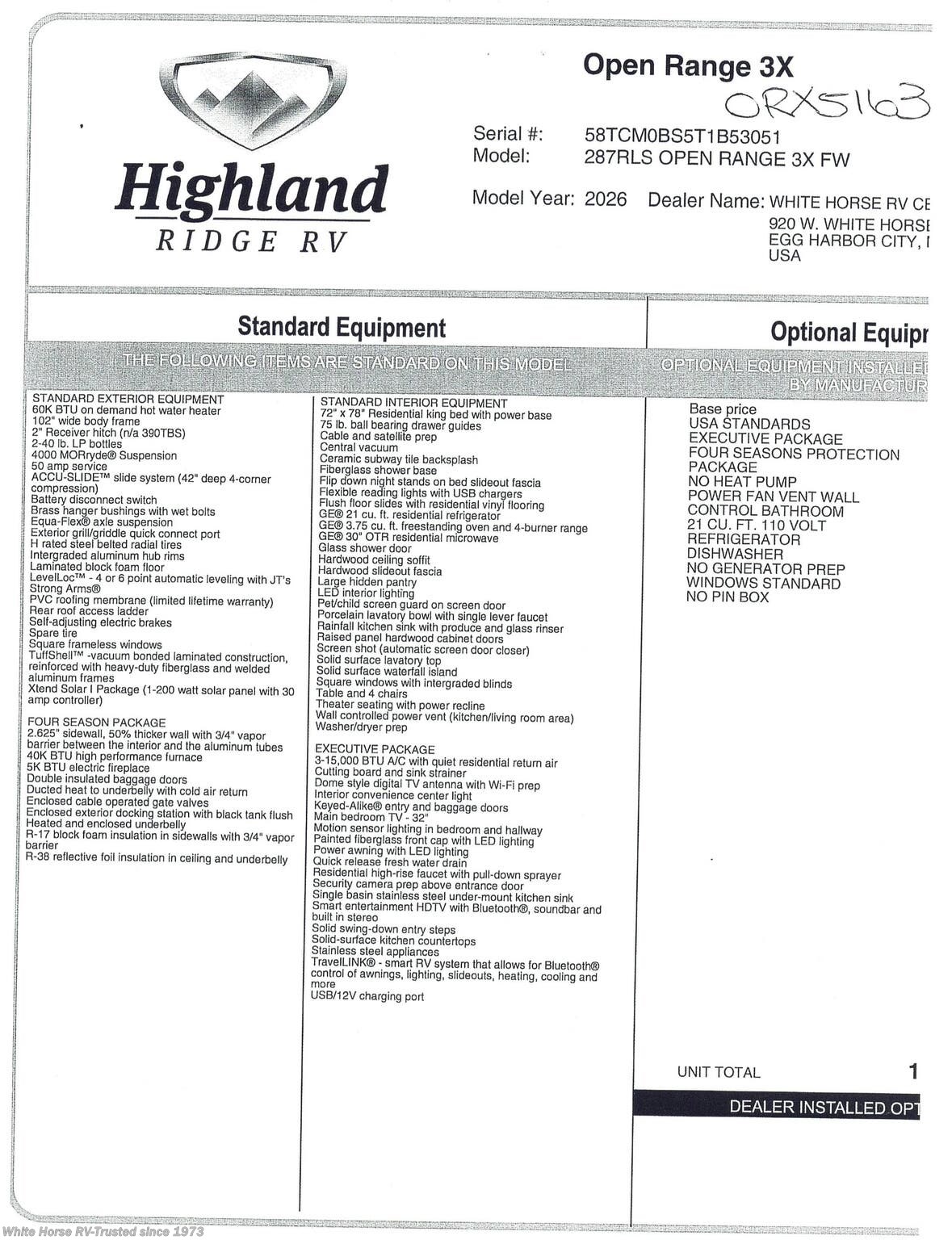 2026 Highland Ridge Open Range 3X 287RLS Features