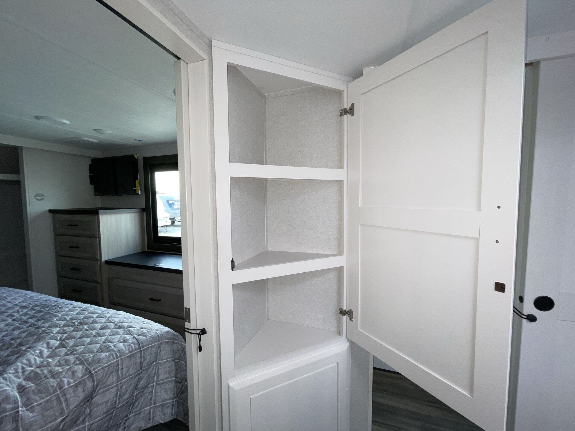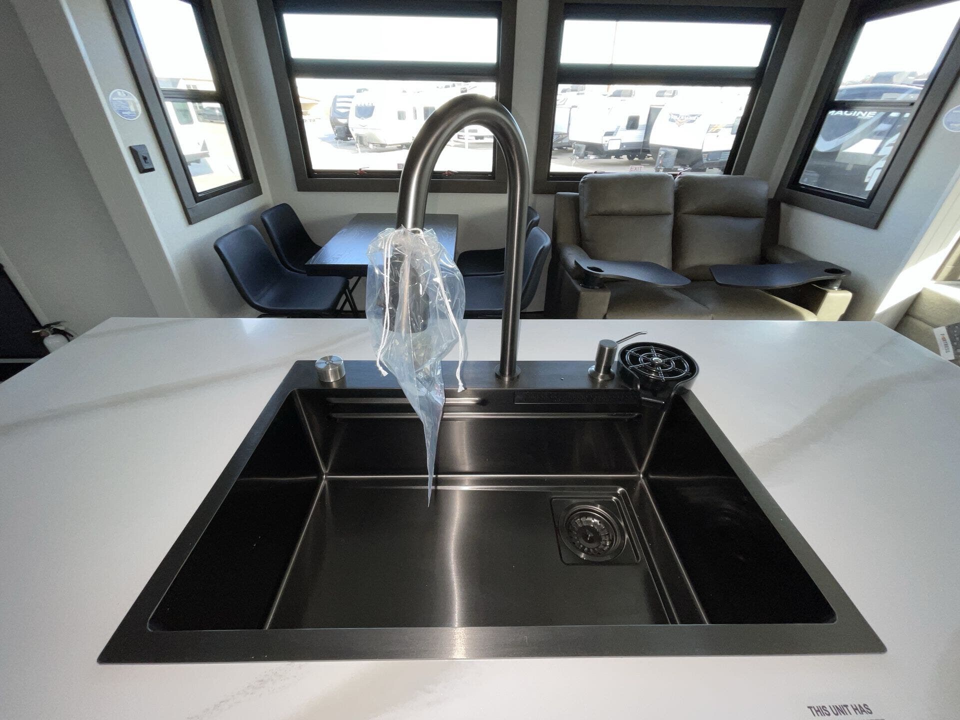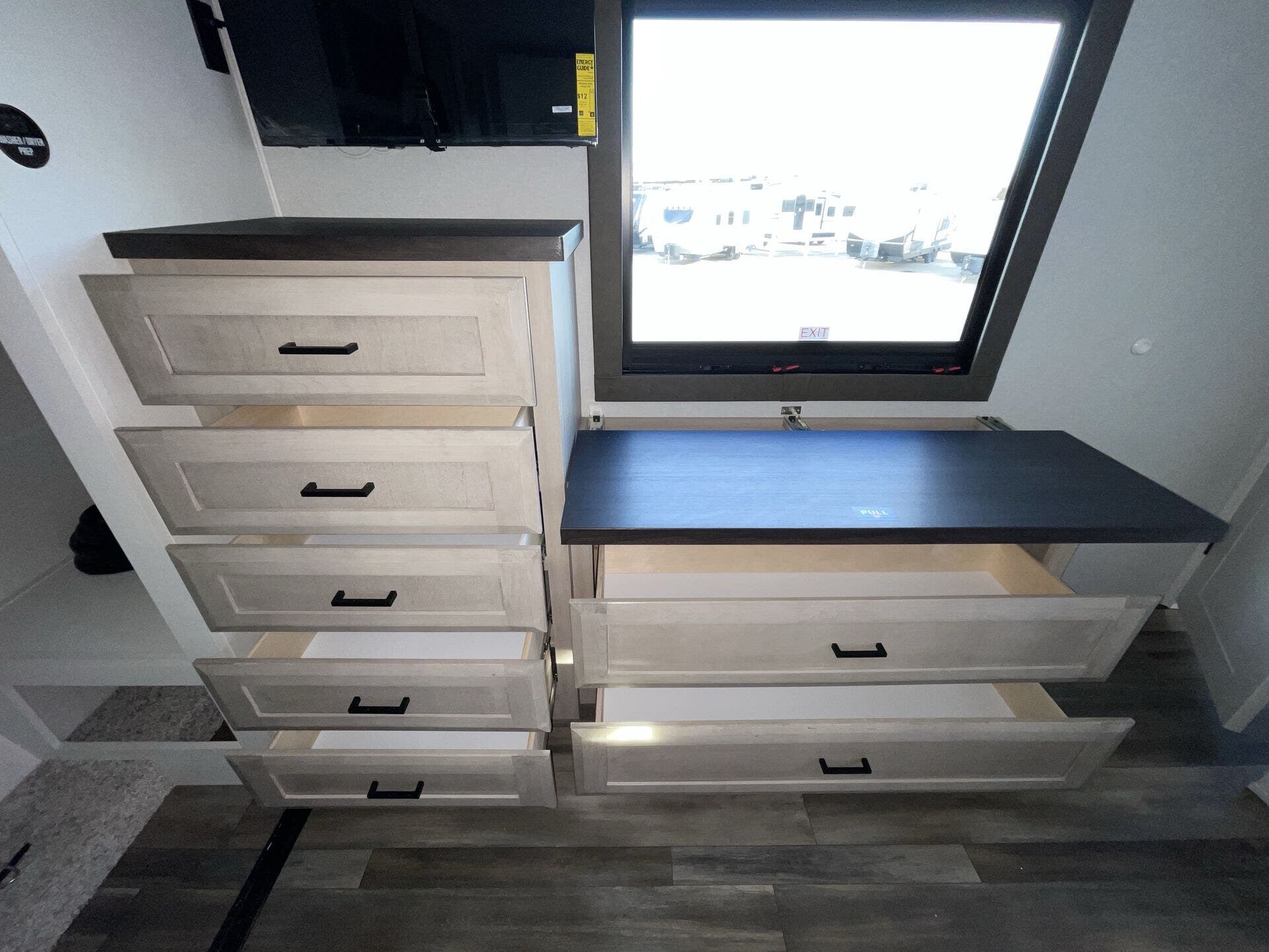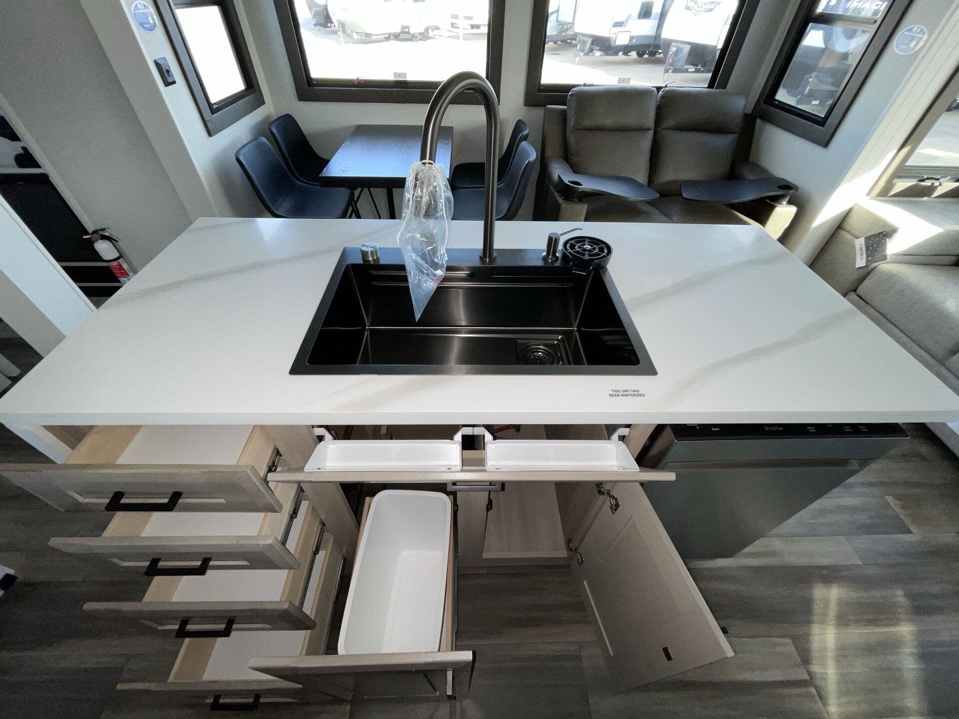Booth Dinette, Bunk Beds, Bunkhouse, Central Vacuum, Dinette, Fireplace, Glass Shower Door, King Size Bed, Kitchen Sink, Medicine Cabinet, Overhead Cabinetry, Pantry, Roof Vents, Shower, Sofa Bed, Solid Surface Countertops, Theater Seating, Wardrobe(s), Washer/Dryer Prep -