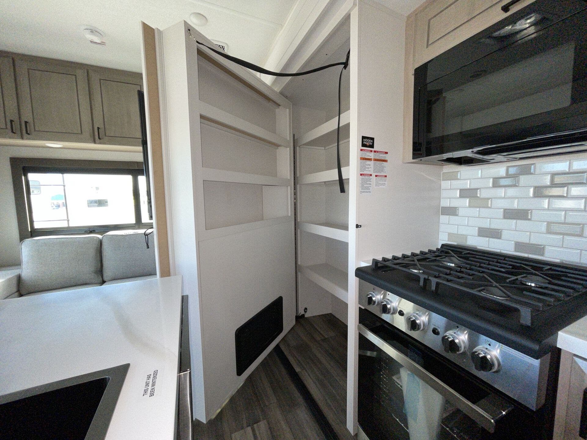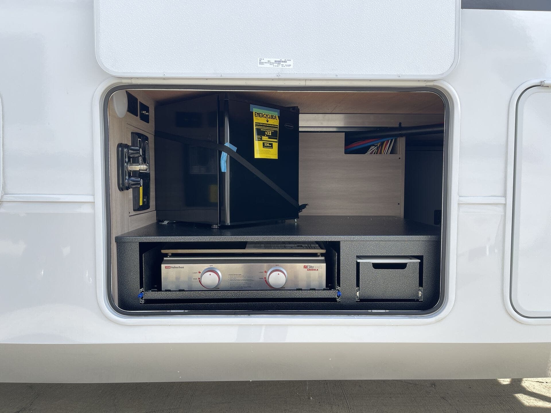 Awning, Black Tank Flush, Detachable Power Cord, Enclosed Underbelly, Exterior Grill, Griddle, Heated Underbelly, Hitch, Ladder, Pass Thru Storage, Power Awning, PVC Roof, Roof Vent, Screen Door, Slideout -