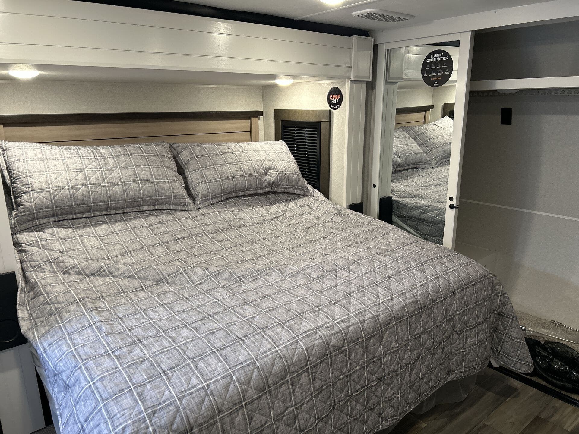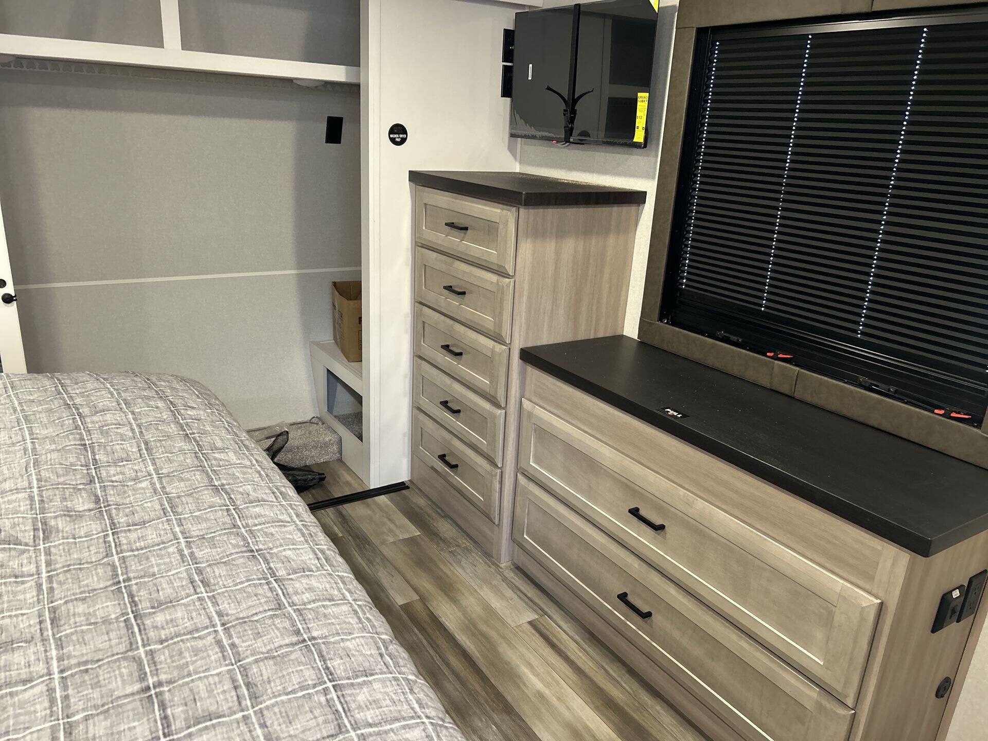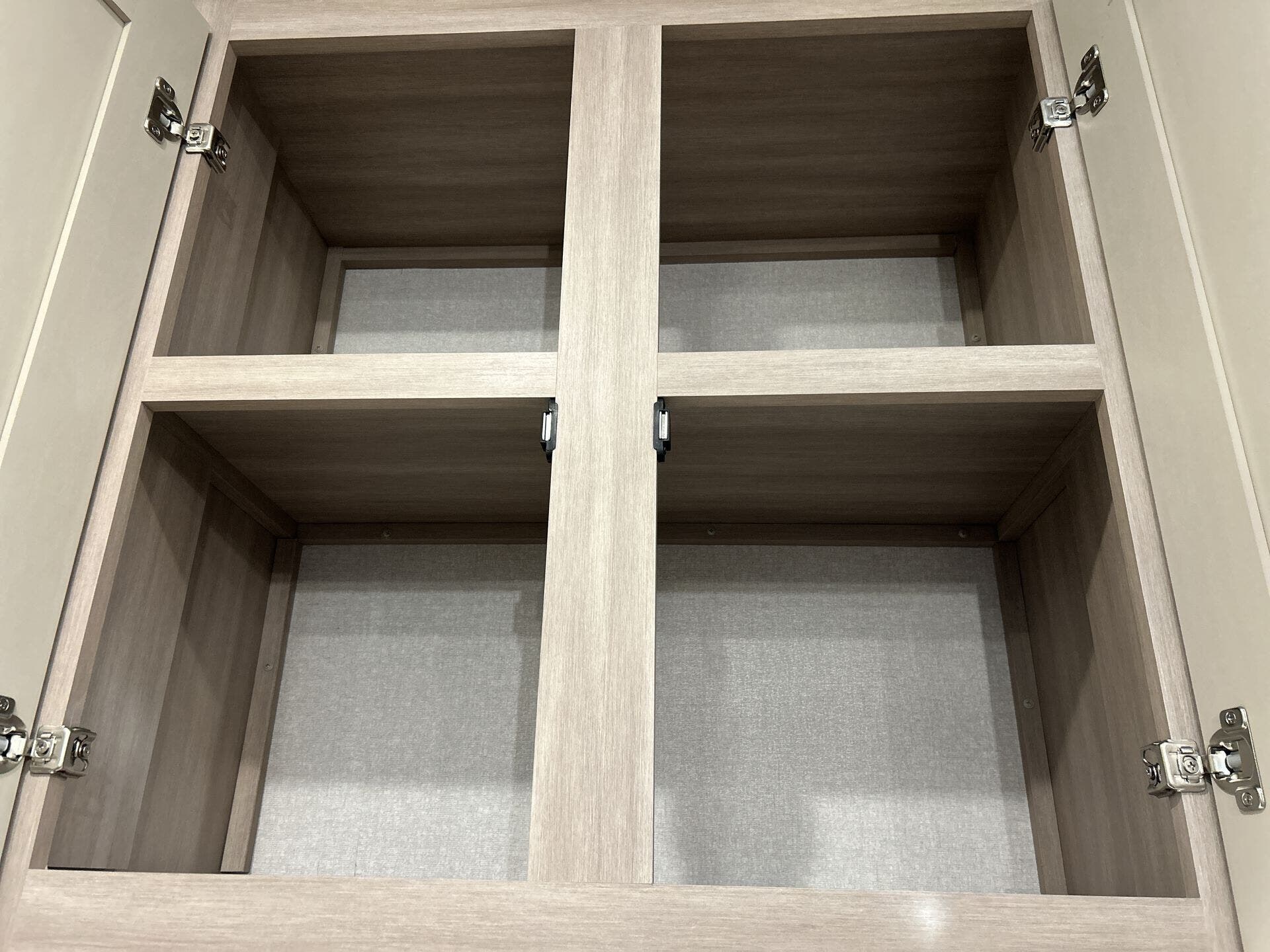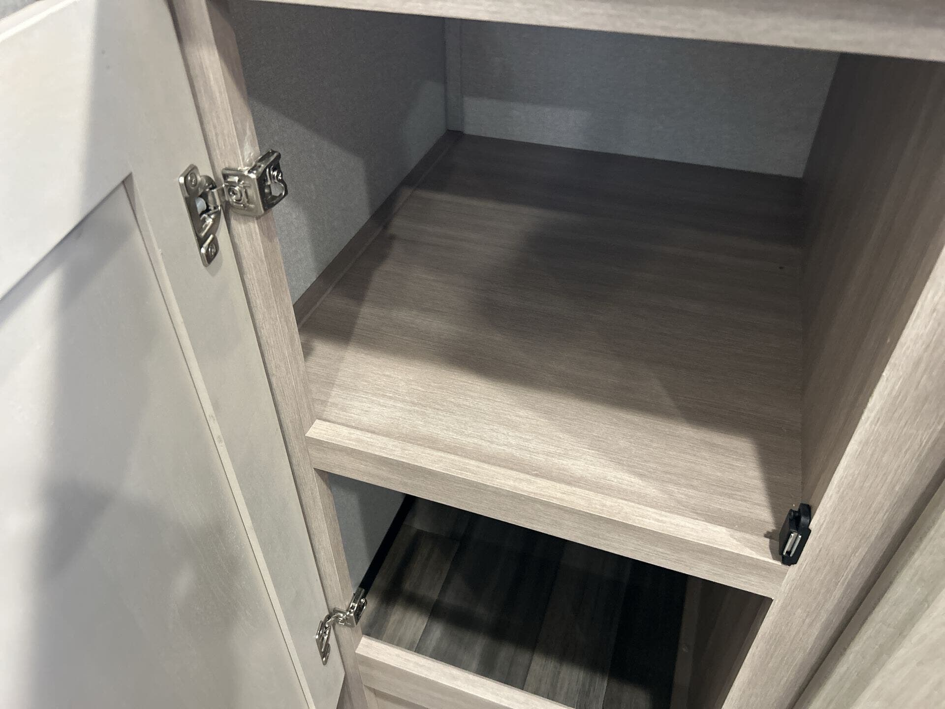 Day/Night Shades, King Size Bed, Kitchen Sink, Medicine Cabinet, Overhead Cabinetry, Pantry, Queen Bed, Removable Table, Roof Vents, Shower, Theater Seating, Toilet, Wardrobe(s)
