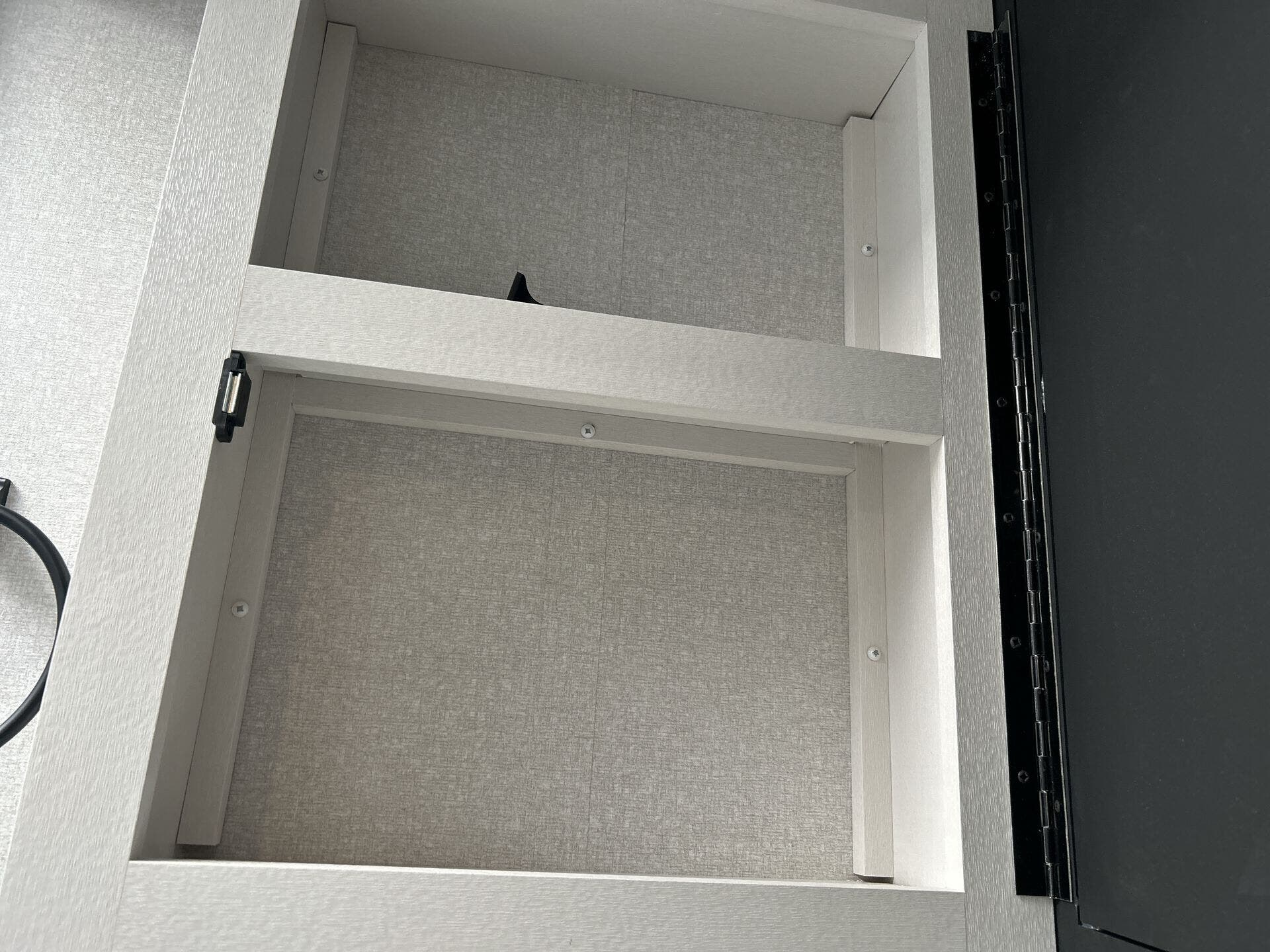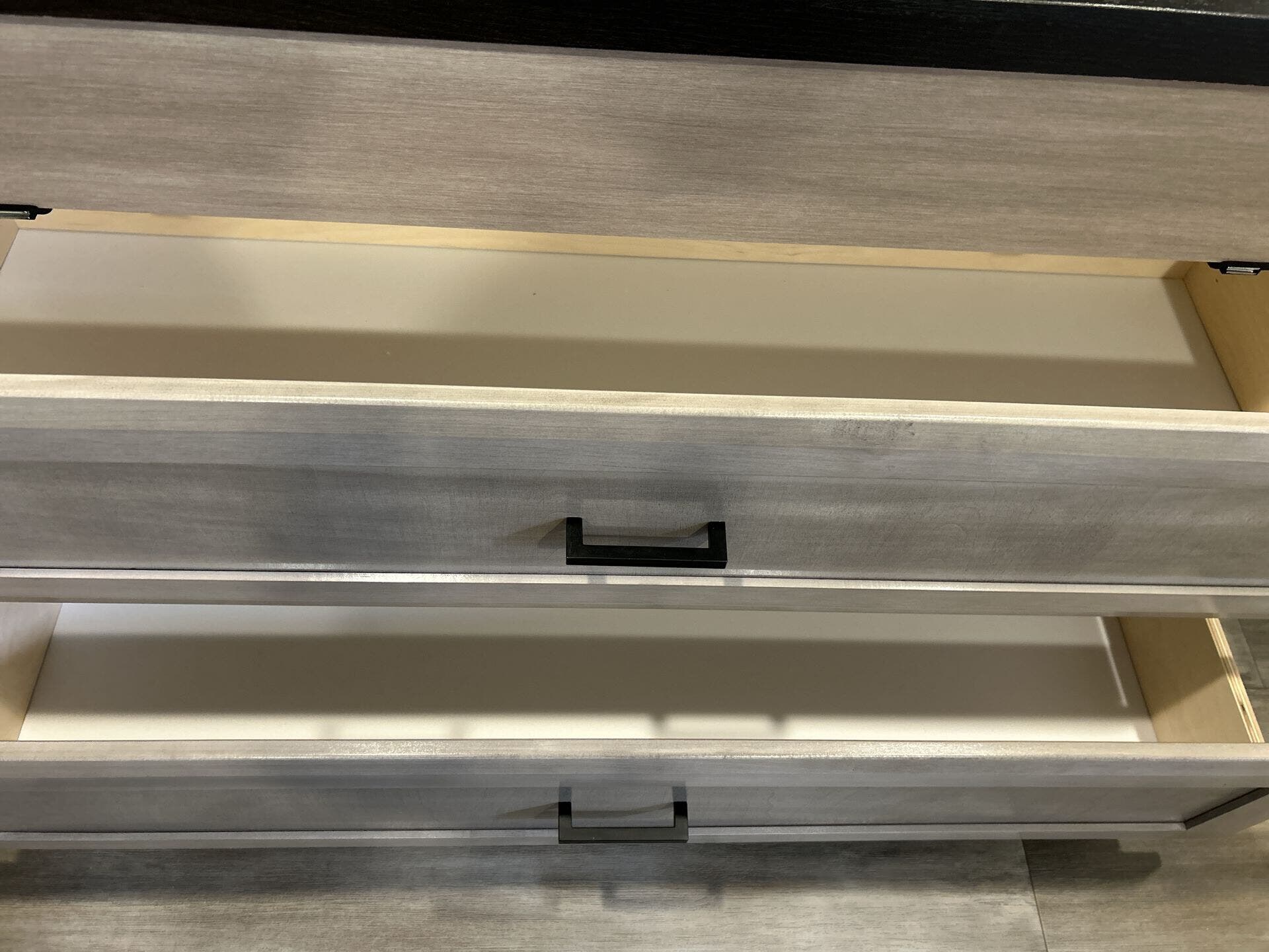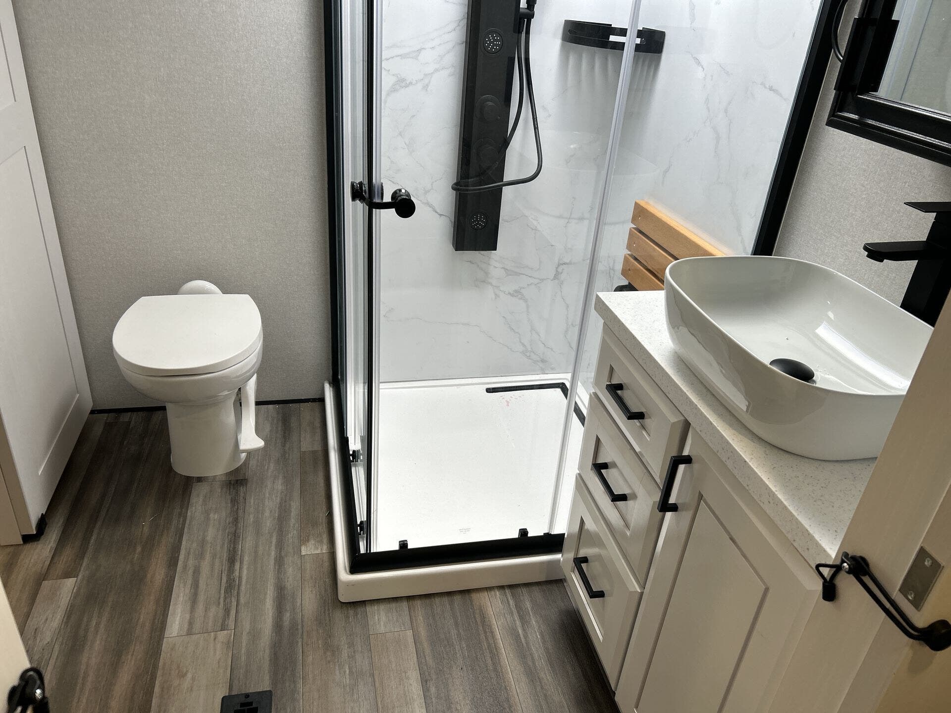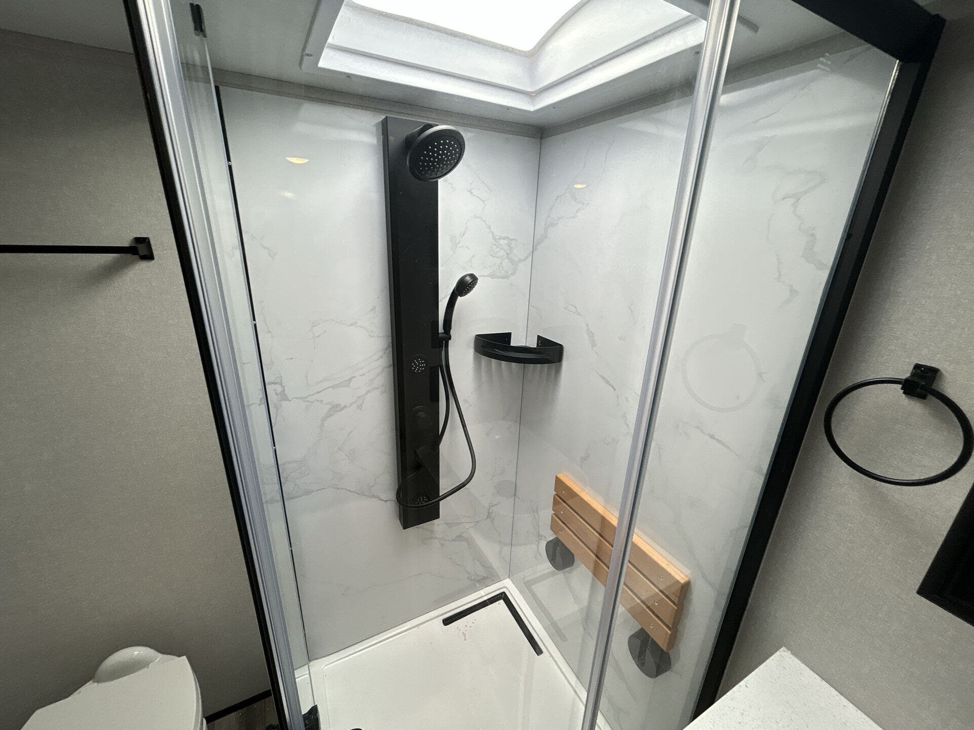 Day/Night Shades, King Size Bed, Kitchen Sink, Medicine Cabinet, Overhead Cabinetry, Pantry, Queen Bed, Removable Table, Roof Vents, Shower, Theater Seating, Toilet, Wardrobe(s)