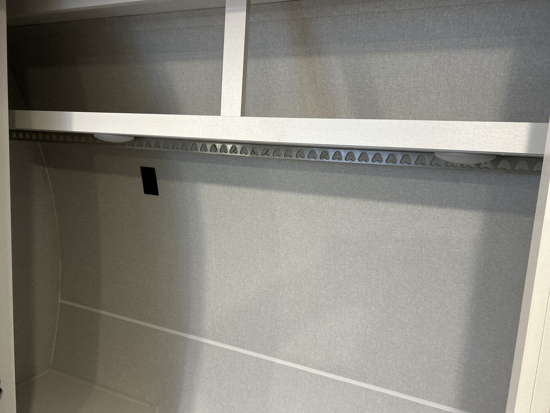 - Theater seating, ample overhead cabinetry, and a dedicated TV area