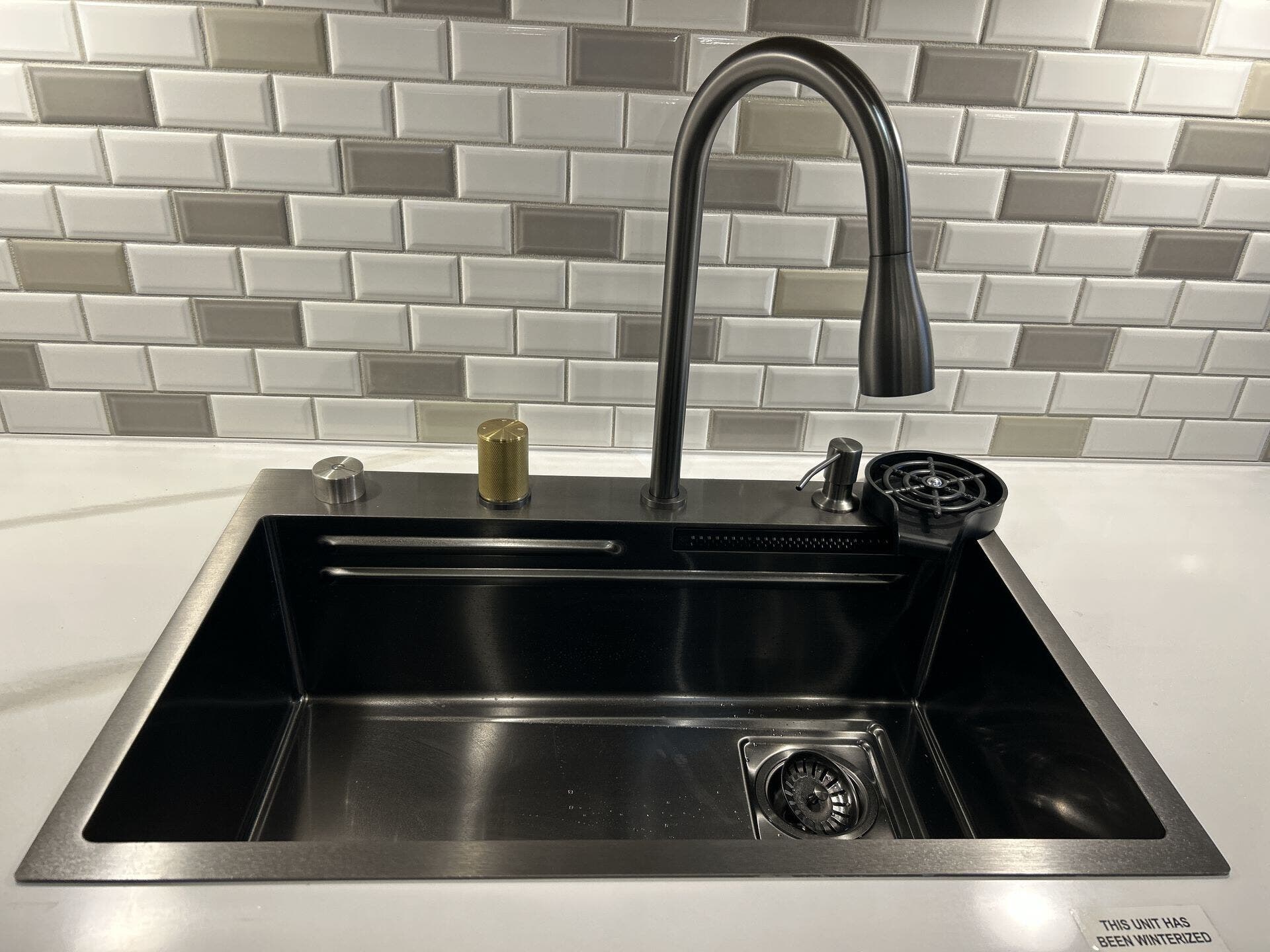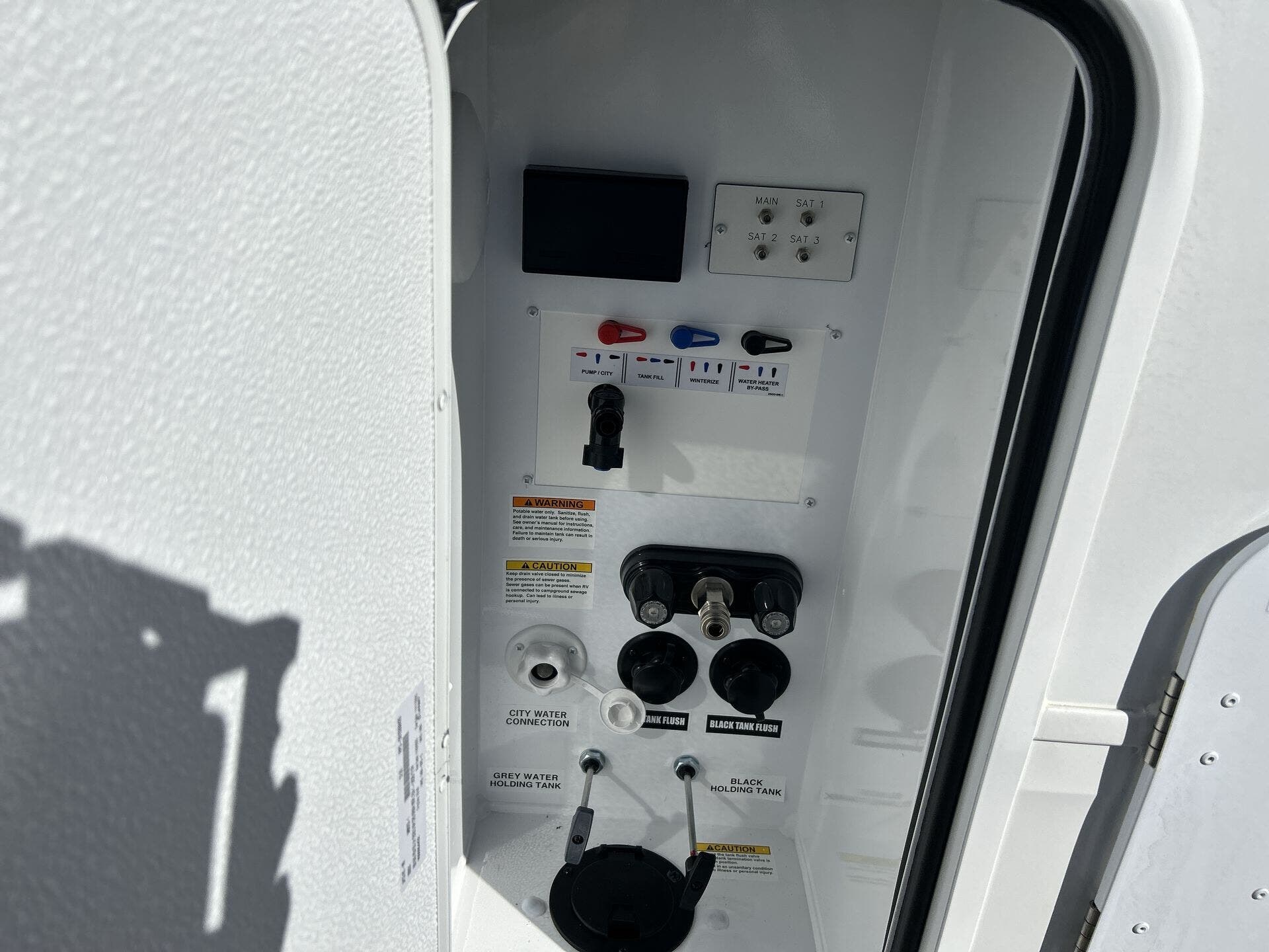 - Fresh water: 75 gallons; Grey water: 97 gallons; Black water: 80 gallons