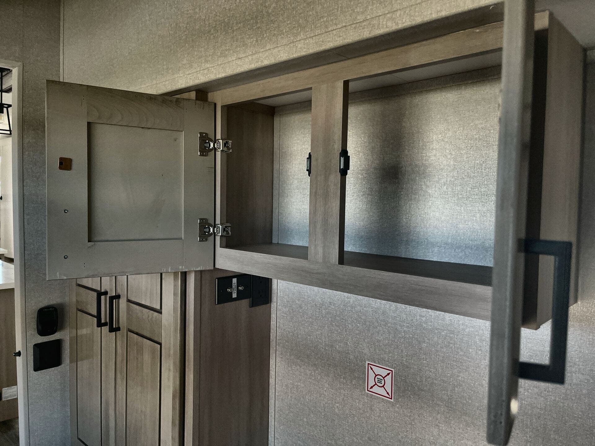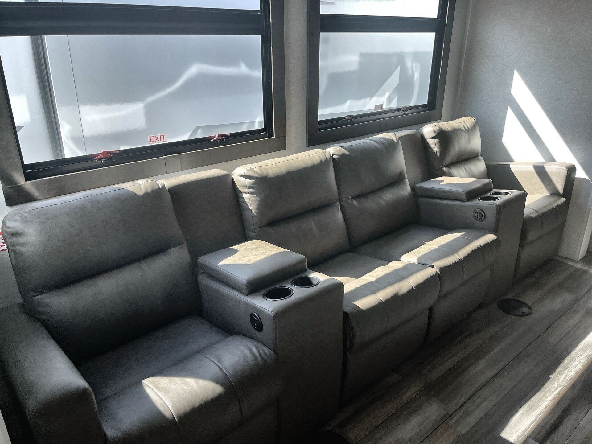 Inside, you get two full baths, a front master bedroom, theater-style seating, pantry storage, and abundant cabinetry. Exterior features include a large power awning, integrated solar package (Xtend Solar I), LevelLoc automatic leveling system, rear ladder, and exterior square windows with built-in blinds. With its robust thermal and structural build, it handles extended use and varying climates well.