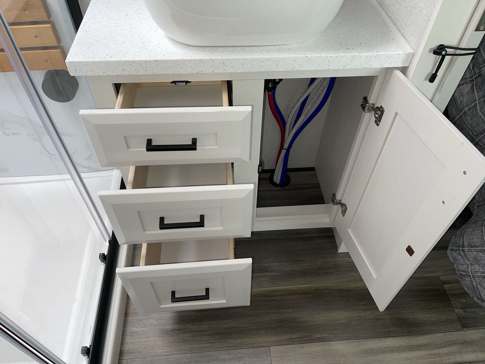 - Fresh Water: 75 gallons | Gray Water: 97 gallons | Black Water: 80 gallons