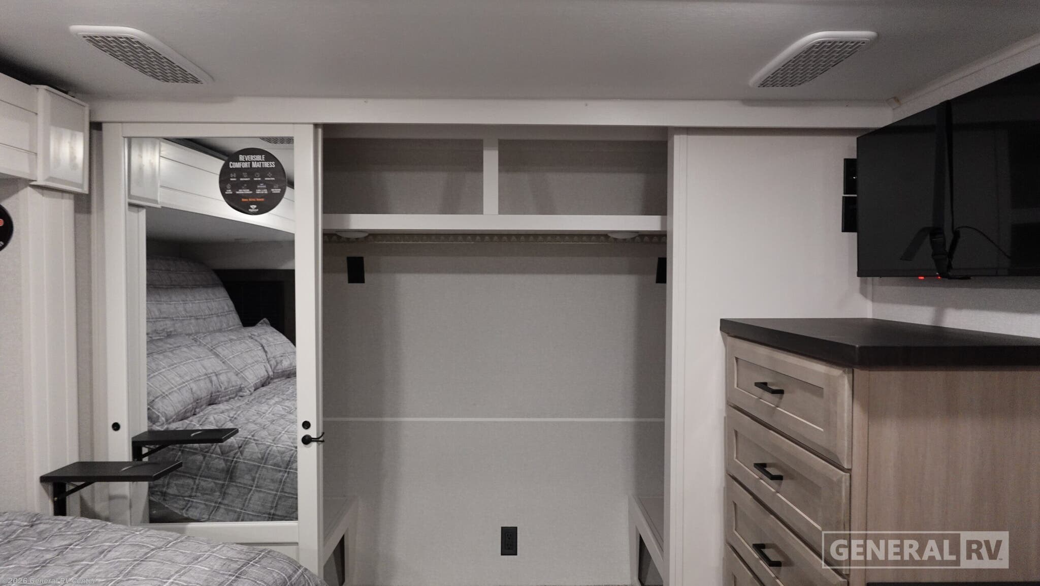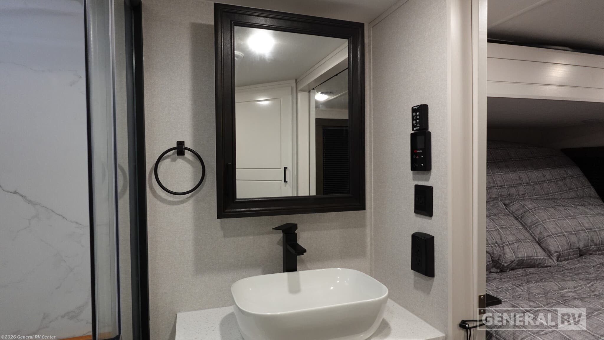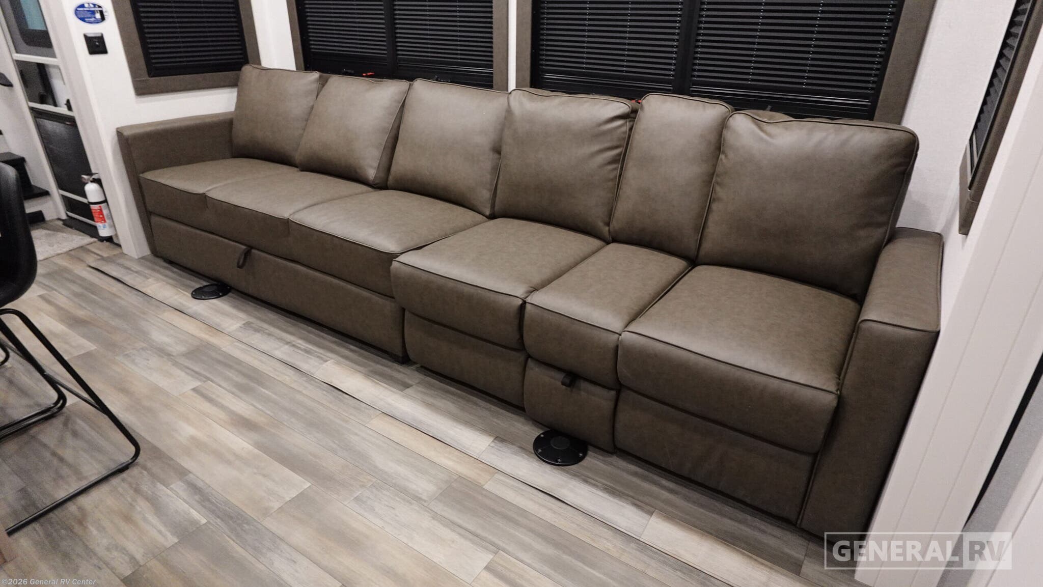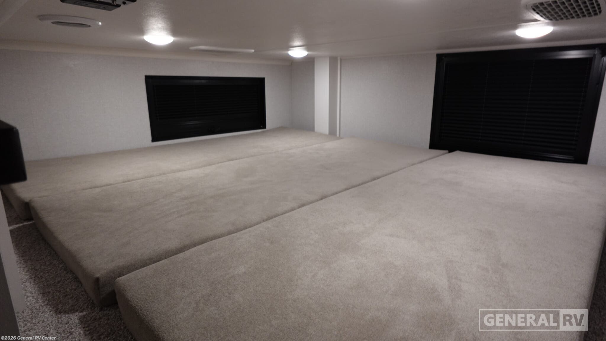 **Open Range RV Open Range 3X fifth wheel 390TBS highlights:** * Four Slide Outs * Two Master Bedrooms * Two Power Awnings * Loft * Dual Entry Doors * Outdoor Kitchen If you enjoy luxury camping or you're looking for a residential fifth wheel to go full-time in, this Open Range 3X is the one! The middle kitchen and living room is made open by the dual opposing slides, and your crew can get comfortable on the mega lounge with two tables. The chef of your group will love cooking on GE free-standing four burner range, or they can use the GE residential microwave to heat up leftovers. The standard dishwasher and central vacuum make cleanup a breeze. A waterfall island with four chairs will provide a place to dine and the hidden pantry behind the swing-out entertainment center can hold snacks galore. There is also a fireplace and smart HDTV to make movie nights cozy. The front master bedroom includes a slide out king bed with a power tilt, two dressers, a large front closet, and a 32" TV to watch shows in bed. You even have your own entrance into the full bath, plus washer and dryer prep. The rear master bedroom is just as accommodating with a queen bed slide out, a wardrobe and a dresser, plus a second full bath with its own exterior entry door. And the loft above the rear bedroom provides even more sleeping space. With any Open Range 3X fifth wheel by Open Range RV, you will enjoy residential luxuries and an exceptional build. The TuffShell construction includes vacuum bonded laminated fiberglass and welded aluminum frames for added strength, and the PVC roofing membrane is ultra durable. You can plan to camp year around or go full-time since there is a mandatory Four Season Package that includes a heated and enclosed underbelly, a 40K BTU high-performance furnace, double insulated baggage doors, and more. The residential features continue on with the mandatory Executive Package with the TravelLINK Smart RV system, Keyed-Alike entry and baggage doors, painted fiberglass front cap with LED lighting, and three 15,000 BTU A/C units with quiet residential return air. Inside, you'll enjoy GE kitchen appliances, sleek square windows with integrated blinds, ceramic subway tile backsplash, a glass shower door, and the list of amenities goes on!