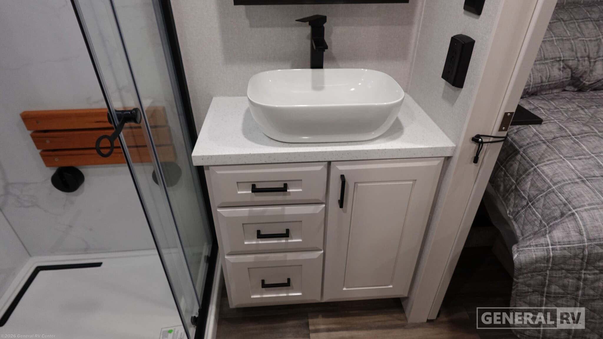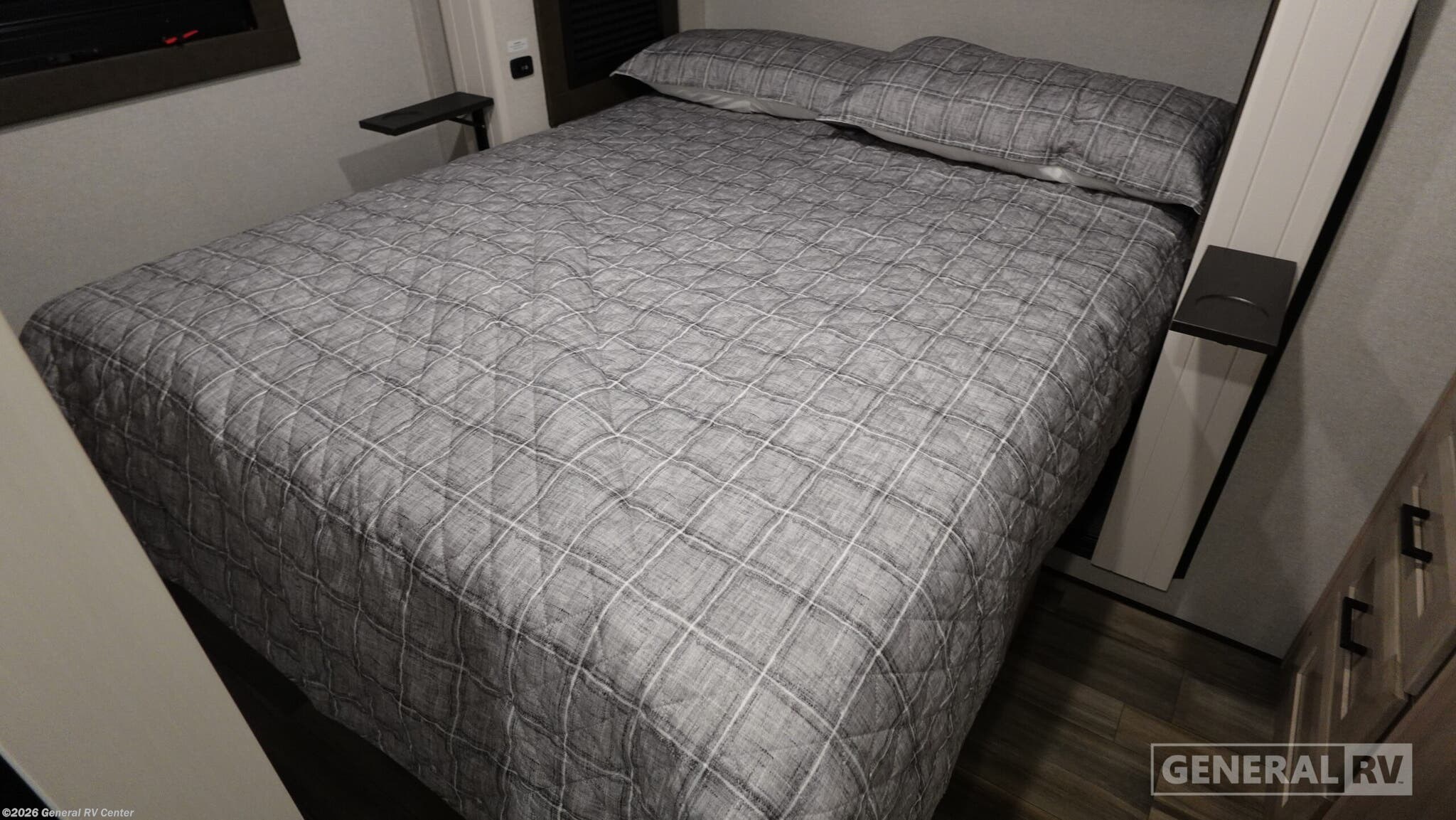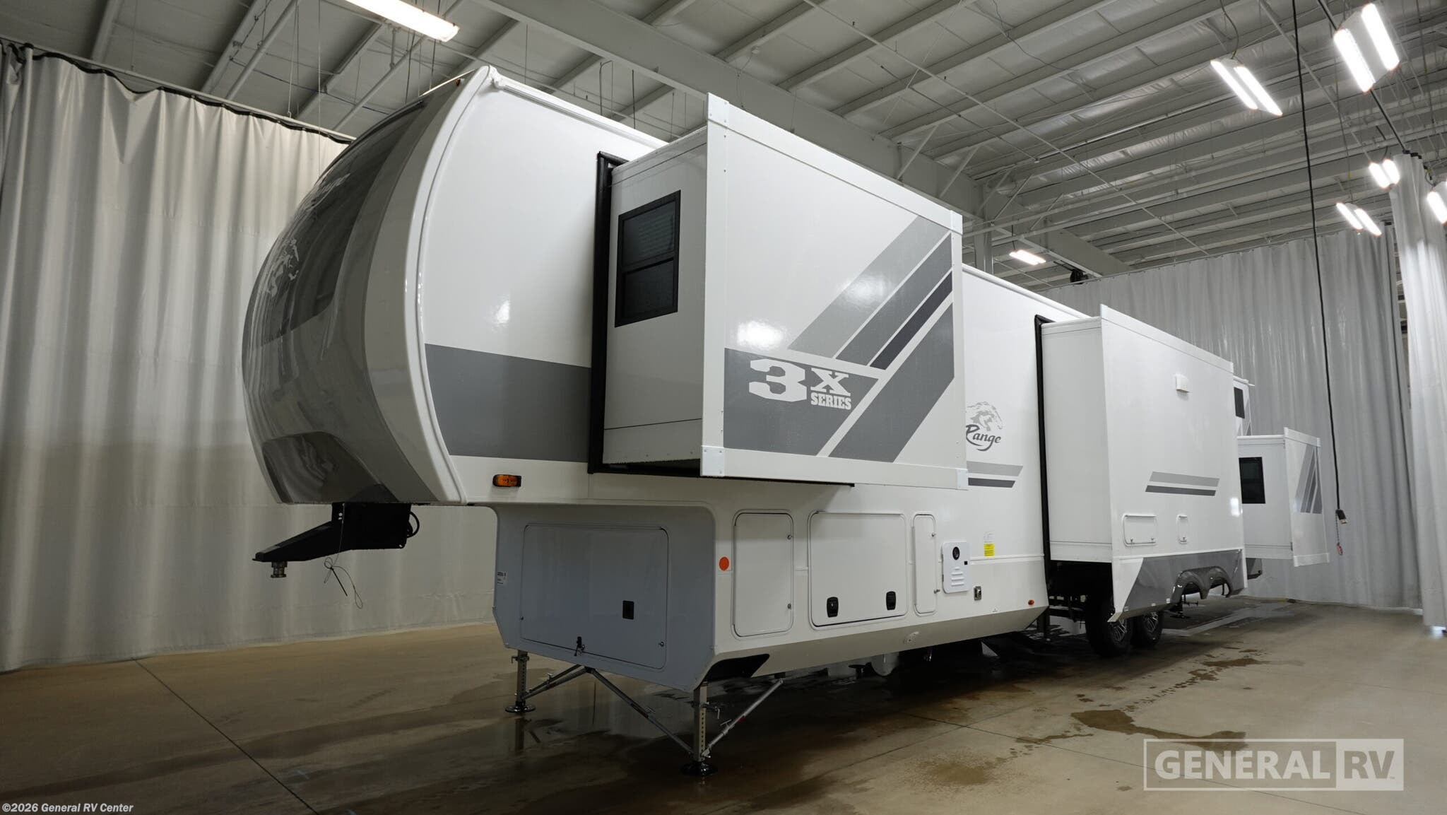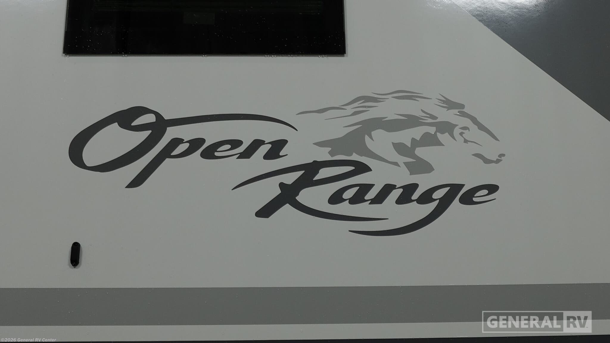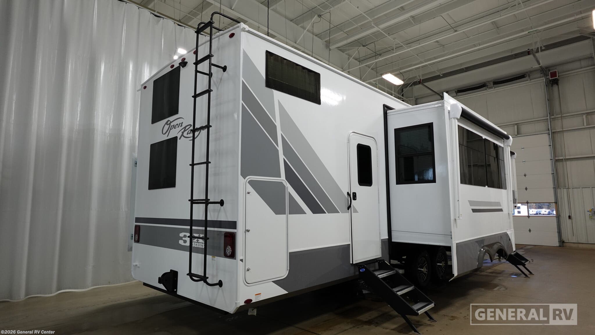 **Open Range RV Open Range 3X fifth wheel 390TBS highlights:** * Four Slide Outs * Two Master Bedrooms * Two Power Awnings * Loft * Dual Entry Doors * Outdoor Kitchen If you enjoy luxury camping or you're looking for a residential fifth wheel to go full-time in, this Open Range 3X is the one! The middle kitchen and living room is made open by the dual opposing slides, and your crew can get comfortable on the mega lounge with two tables. The chef of your group will love cooking on GE free-standing four burner range, or they can use the GE residential microwave to heat up leftovers. The standard dishwasher and central vacuum make cleanup a breeze. A waterfall island with four chairs will provide a place to dine and the hidden pantry behind the swing-out entertainment center can hold snacks galore. There is also a fireplace and smart HDTV to make movie nights cozy. The front master bedroom includes a slide out king bed with a power tilt, two dressers, a large front closet, and a 32" TV to watch shows in bed. You even have your own entrance into the full bath, plus washer and dryer prep. The rear master bedroom is just as accommodating with a queen bed slide out, a wardrobe and a dresser, plus a second full bath with its own exterior entry door. And the loft above the rear bedroom provides even more sleeping space. With any Open Range 3X fifth wheel by Open Range RV, you will enjoy residential luxuries and an exceptional build. The TuffShell construction includes vacuum bonded laminated fiberglass and welded aluminum frames for added strength, and the PVC roofing membrane is ultra durable. You can plan to camp year around or go full-time since there is a mandatory Four Season Package that includes a heated and enclosed underbelly, a 40K BTU high-performance furnace, double insulated baggage doors, and more. The residential features continue on with the mandatory Executive Package with the TravelLINK Smart RV system, Keyed-Alike entry and baggage doors, painted fiberglass front cap with LED lighting, and three 15,000 BTU A/C units with quiet residential return air. Inside, you'll enjoy GE kitchen appliances, sleek square windows with integrated blinds, ceramic subway tile backsplash, a glass shower door, and the list of amenities goes on!
