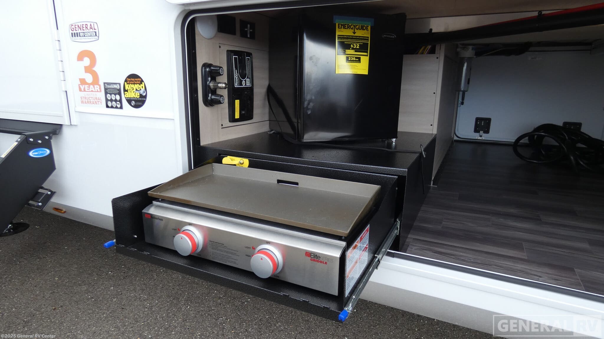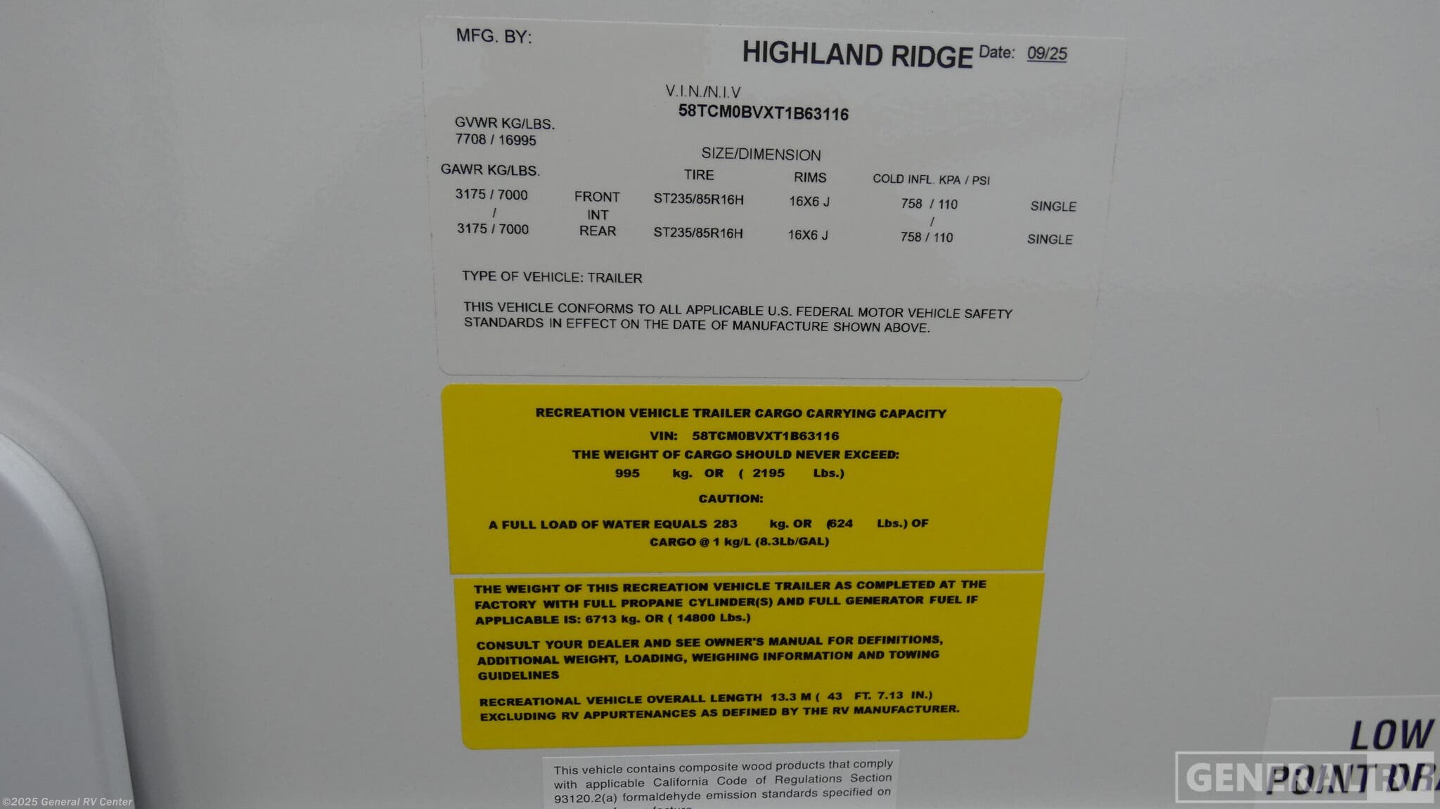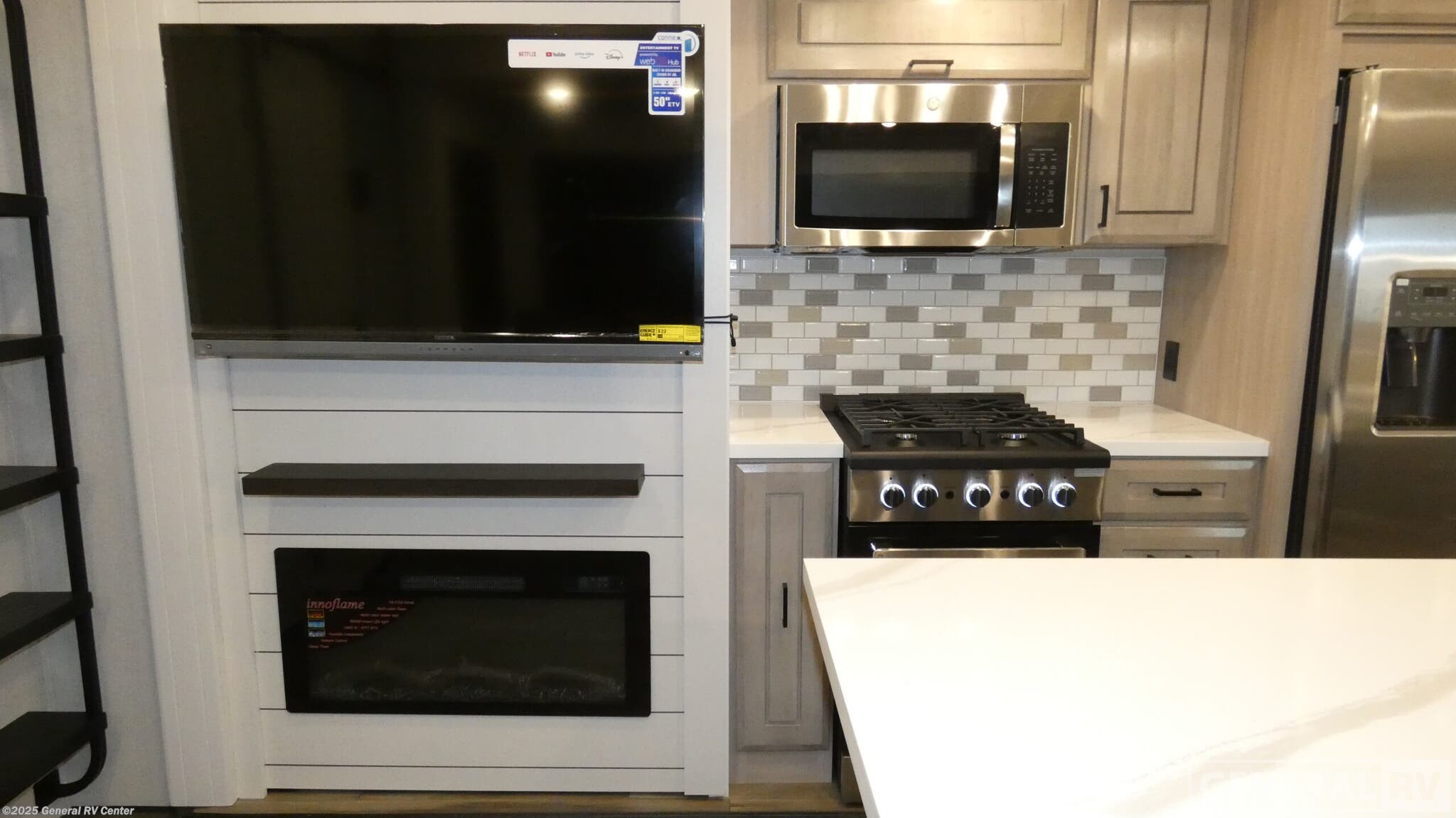 Experience the ultimate in luxury and comfort with the 2025 Highland Ridge Open Range 3X 390TBS. This spacious fifth wheel, stretching over 43 feet, is designed to accommodate up to seven guests, making it perfect for family adventures or entertaining friends. With a thoughtfully designed floorplan featuring both a queen and a king-sized bed, along with three bunks, everyone will find their perfect sleeping spot. The center kitchen, equipped with a full-size electric refrigerator and a four-burner cooktop, is ideal for creating culinary delights, while the adjacent center living area offers a cozy space with a fireplace and a 50” entertainment TV for those relaxing evenings indoors. The 390TBS also boasts a luxurious center bath with a stylish plastic/glass shower, ensuring you have all the comforts of home on the road. The front and rear bedrooms offer ample privacy, and the bunkhouse is a hit with kids or guests. Enjoy the great outdoors with the convenience of an outdoor kitchen and two expansive powered awnings that provide shade and comfort. With a fresh water capacity of 91 gallons and generous storage throughout, this RV is ready for extended journeys. For more information or to see this beauty in person, visit your nearest General RV dealership.