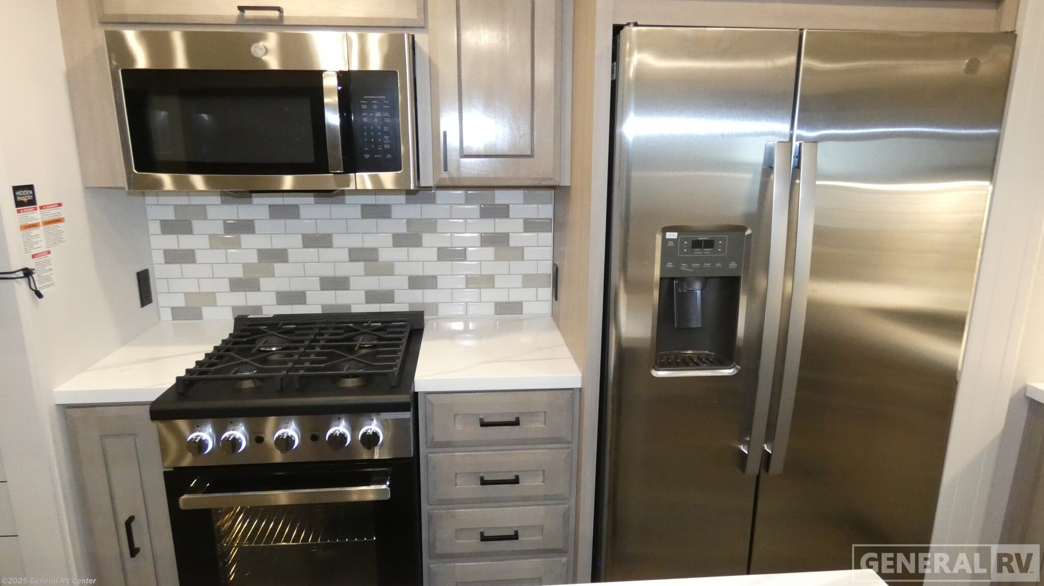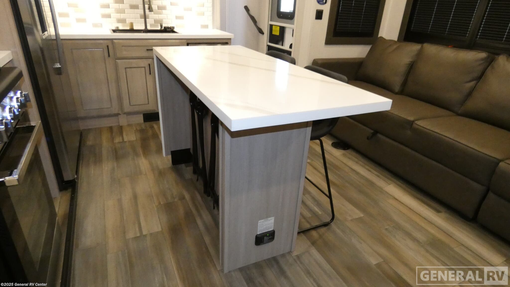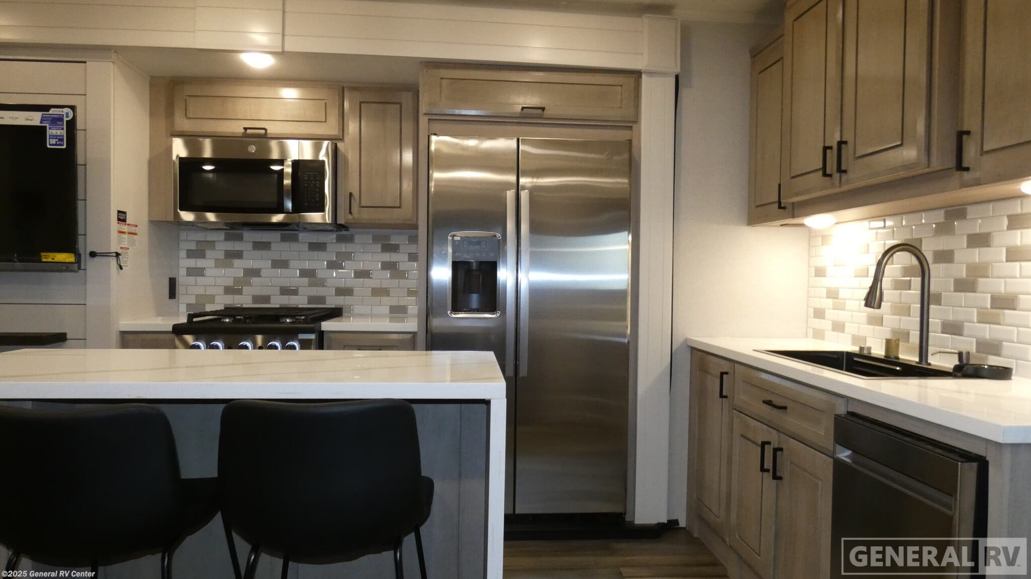 Experience the ultimate in luxury and comfort with the 2025 Highland Ridge Open Range 3X 390TBS. This spacious fifth wheel, stretching over 43 feet, is designed to accommodate up to seven guests, making it perfect for family adventures or entertaining friends. With a thoughtfully designed floorplan featuring both a queen and a king-sized bed, along with three bunks, everyone will find their perfect sleeping spot. The center kitchen, equipped with a full-size electric refrigerator and a four-burner cooktop, is ideal for creating culinary delights, while the adjacent center living area offers a cozy space with a fireplace and a 50” entertainment TV for those relaxing evenings indoors. The 390TBS also boasts a luxurious center bath with a stylish plastic/glass shower, ensuring you have all the comforts of home on the road. The front and rear bedrooms offer ample privacy, and the bunkhouse is a hit with kids or guests. Enjoy the great outdoors with the convenience of an outdoor kitchen and two expansive powered awnings that provide shade and comfort. With a fresh water capacity of 91 gallons and generous storage throughout, this RV is ready for extended journeys. For more information or to see this beauty in person, visit your nearest General RV dealership.