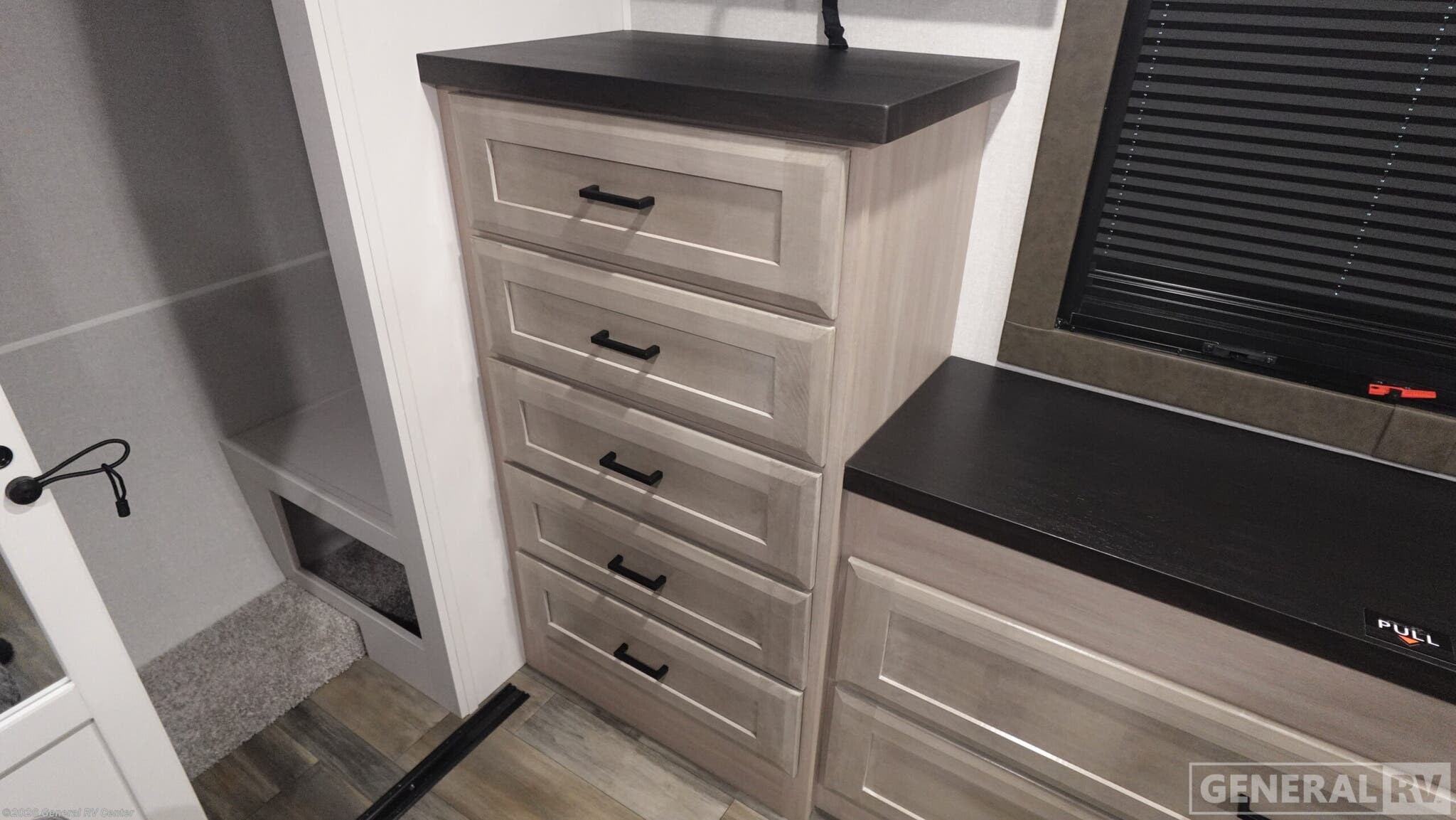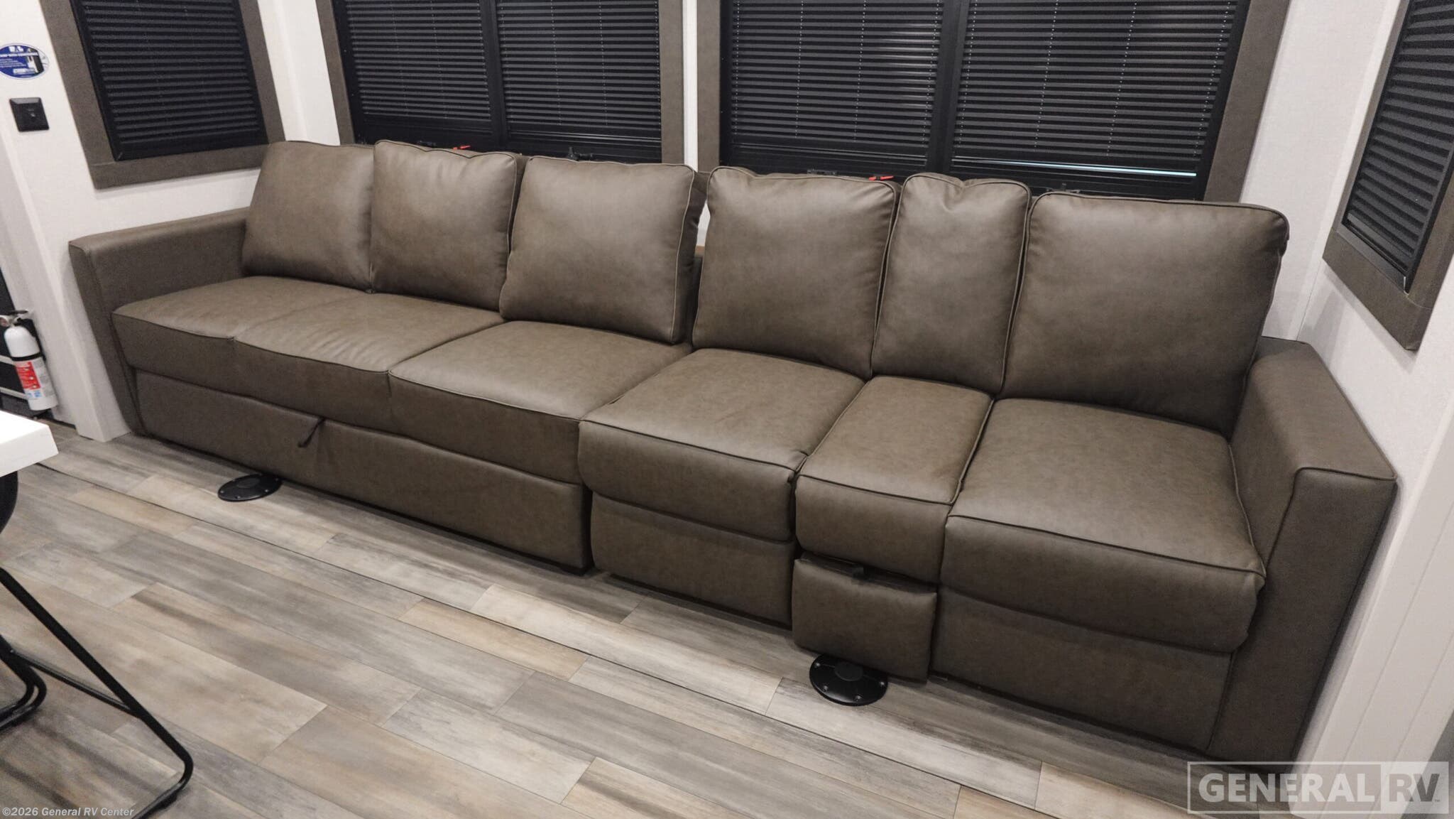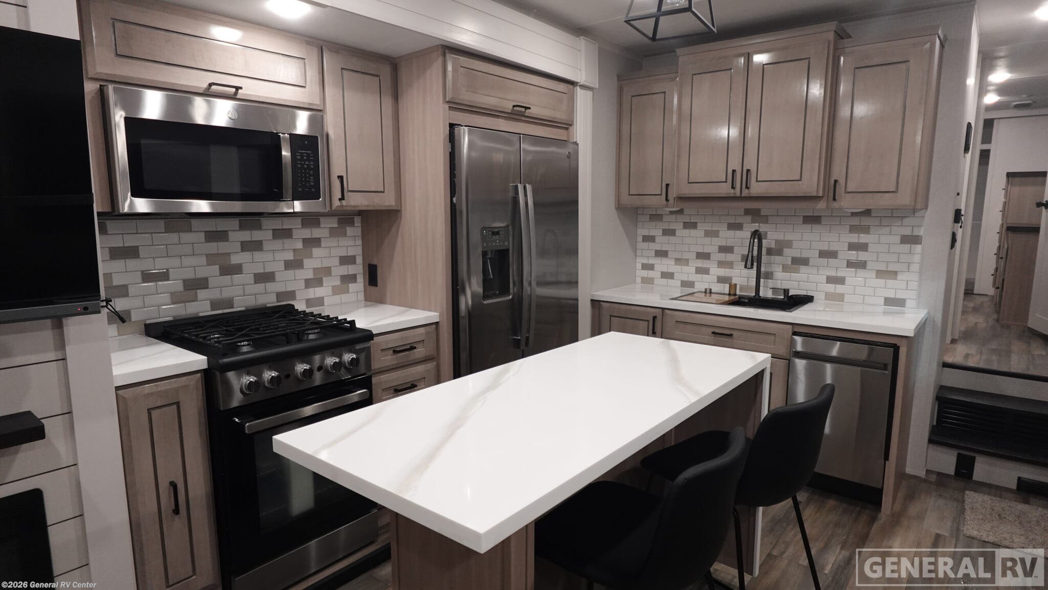 Experience the ultimate in luxury and comfort with the 2025 Highland Ridge Open Range 3X 390TBS. This spacious fifth wheel, stretching over 43 feet, is designed to accommodate up to seven guests, making it perfect for family adventures or entertaining friends. With a thoughtfully designed floorplan featuring both a queen and a king-sized bed, along with three bunks, everyone will find their perfect sleeping spot. The center kitchen, equipped with a full-size electric refrigerator and a four-burner cooktop, is ideal for creating culinary delights, while the adjacent center living area offers a cozy space with a fireplace and a 50” entertainment TV for those relaxing evenings indoors. The 390TBS also boasts a luxurious center bath with a stylish plastic/glass shower, ensuring you have all the comforts of home on the road. The front and rear bedrooms offer ample privacy, and the bunkhouse is a hit with kids or guests. Enjoy the great outdoors with the convenience of an outdoor kitchen and two expansive powered awnings that provide shade and comfort. With a fresh water capacity of 91 gallons and generous storage throughout, this RV is ready for extended journeys. For more information or to see this beauty in person, visit your nearest General RV dealership.
