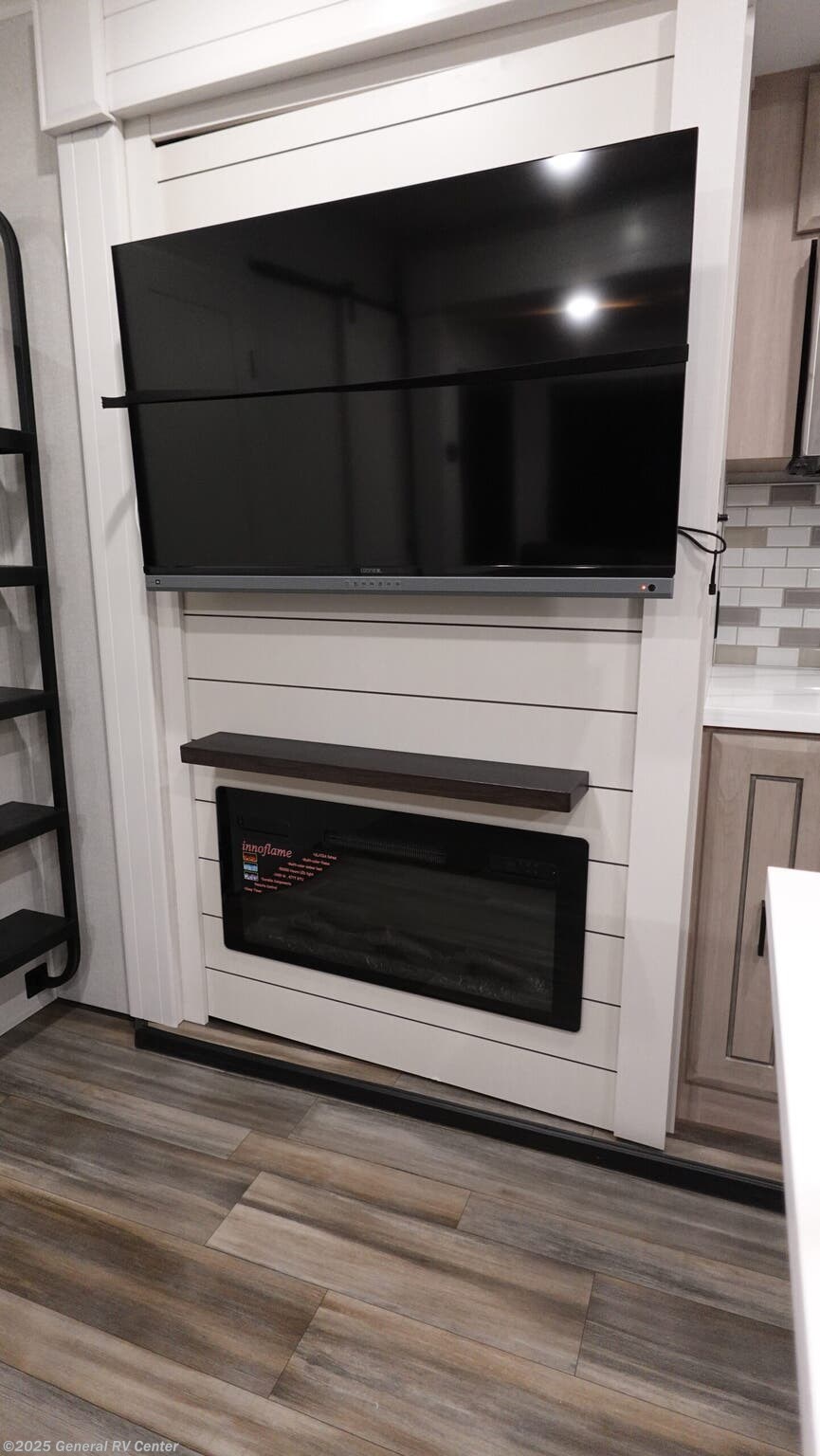 Open Range RV Open Range 3X fifth wheel 390TBS highlights: Four Slide Outs Two Master Bedrooms Two Power Awnings Loft Dual Entry Doors Outdoor Kitchen If you enjoy luxury camping or you're looking for a residential fifth wheel to go full-time in, this Open Range 3X is the one! The middle kitchen and living room is made open by the dual opposing slides, and your crew can get comfortable on the mega lounge with two tables. The chef of your group will love cooking on GE free-standing four burner range, or they can use the GE residential microwave to heat up leftovers. The standard dishwasher and central vacuum make cleanup a breeze. A waterfall island with four chairs will provide a place to dine and the hidden pantry behind the swing-out entertainment center can hold snacks galore. There is also a fireplace and smart HDTV to make movie nights cozy. The front master bedroom includes a slide out king bed with a power tilt, two dressers, a large front closet, and a 32" TV to watch shows in bed. You even have your own entrance into the full bath, plus washer and dryer prep. The rear master bedroom is just as accommodating with a queen bed slide out, a wardrobe and a dresser, plus a second full bath with its own exterior entry door. And the loft above the rear bedroom provides even more sleeping space. With any Open Range 3X fifth wheel by Open Range RV, you will enjoy residential luxuries and an exceptional build. The TuffShell construction includes vacuum bonded laminated fiberglass and welded aluminum frames for added strength, and the PVC roofing membrane is ultra durable. You can plan to camp year around or go full-time since there is a mandatory Four Season Package that includes a heated and enclosed underbelly, a 40K BTU high-performance furnace, double insulated baggage doors, and more. The residential features continue on with the mandatory Executive Package with the TravelLINK Smart RV system, Keyed-Alike entry and baggage doors, painted fiberglass front cap with LED lighting, and three 15,000 BTU A/C units with quiet residential return air. Inside, you'll enjoy GE kitchen appliances, sleek square windows with integrated blinds, ceramic subway tile backsplash, a glass shower door, and the list of amenities goes on!