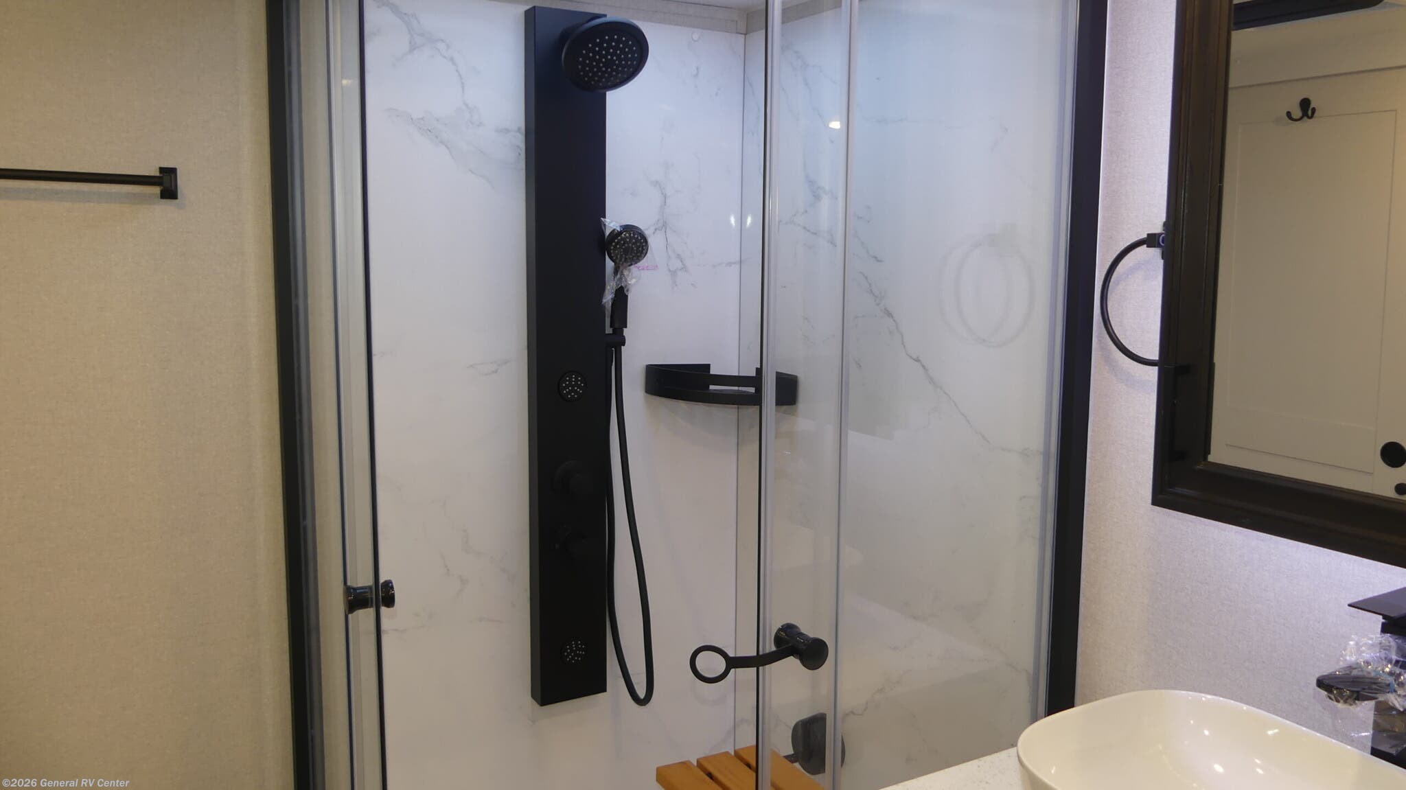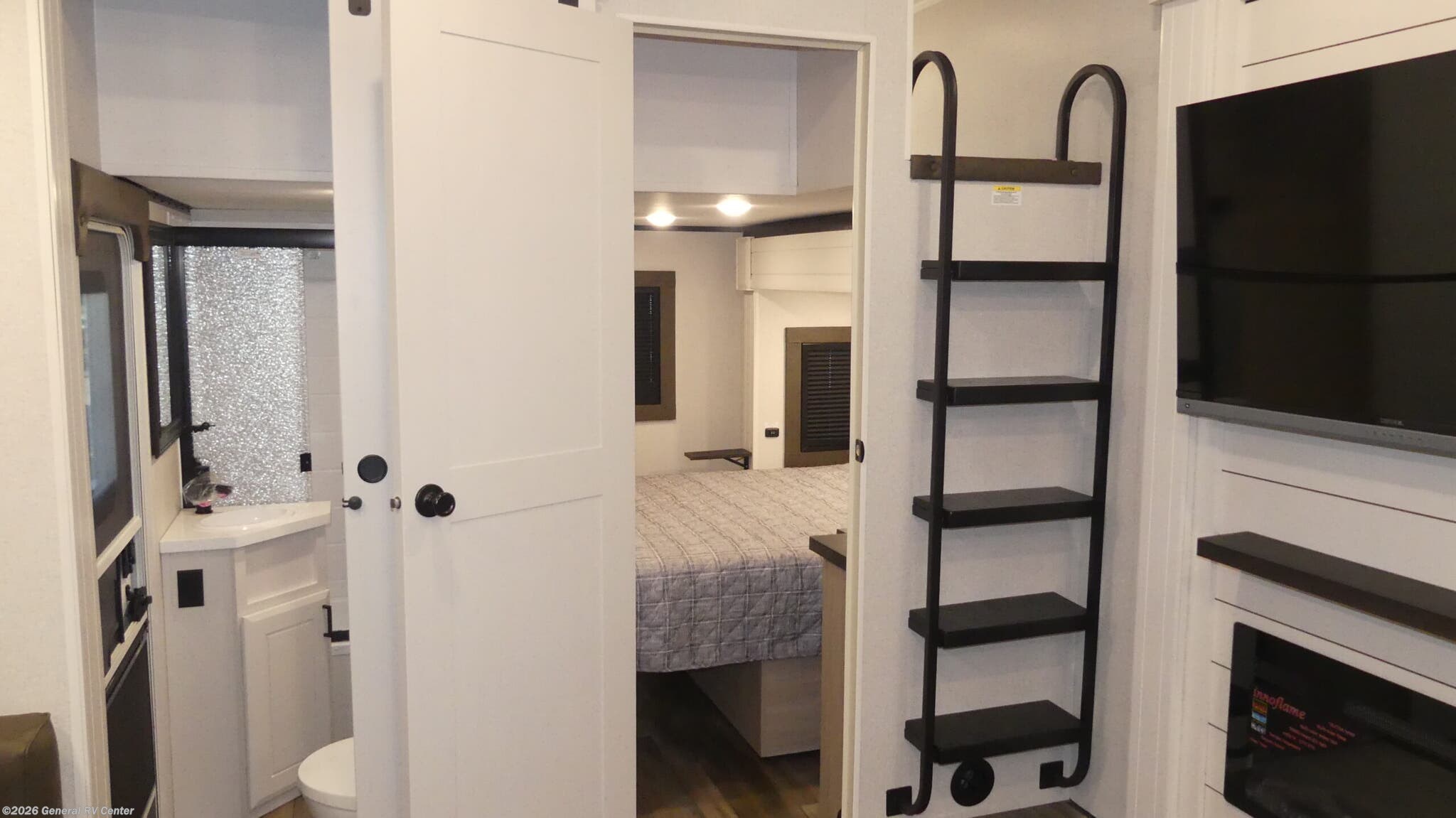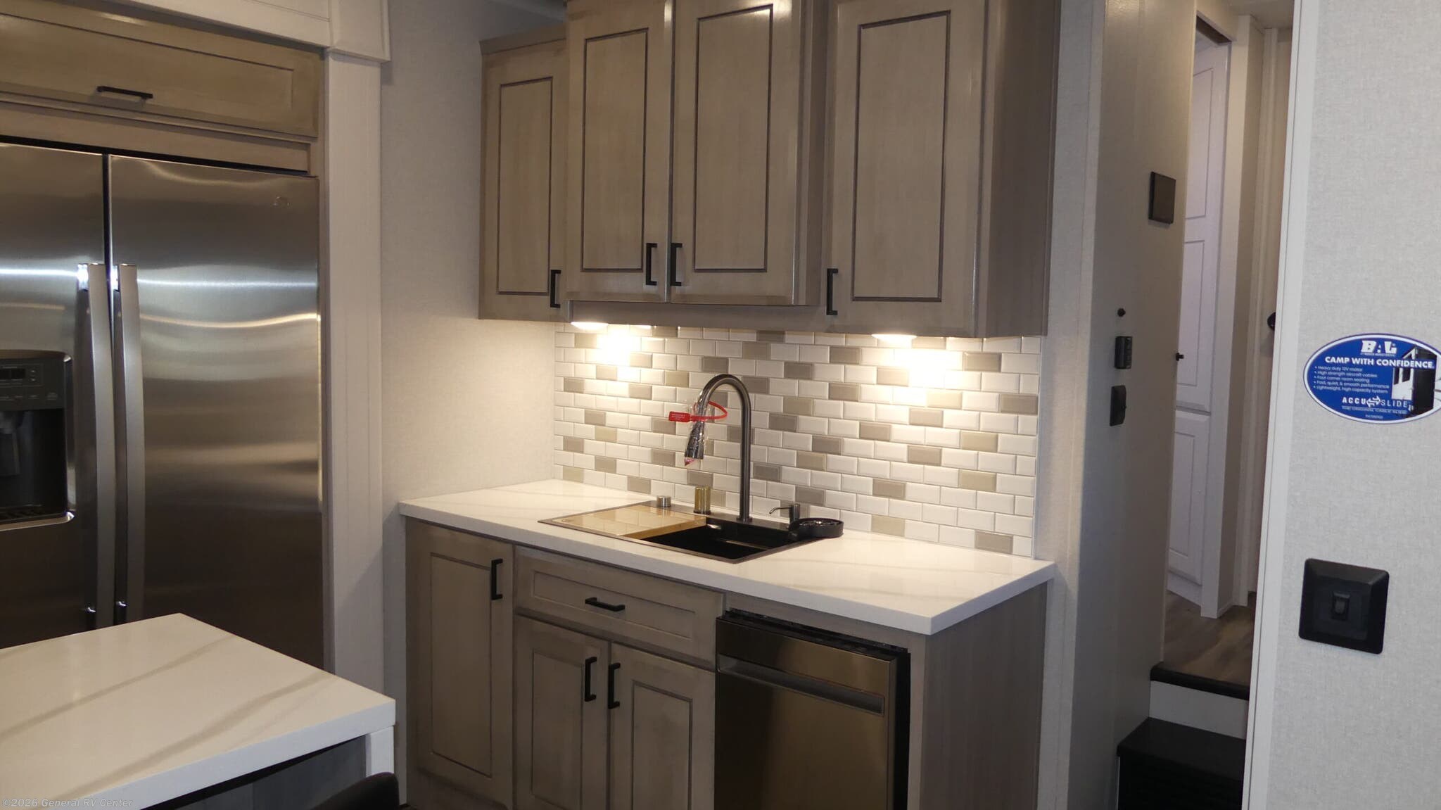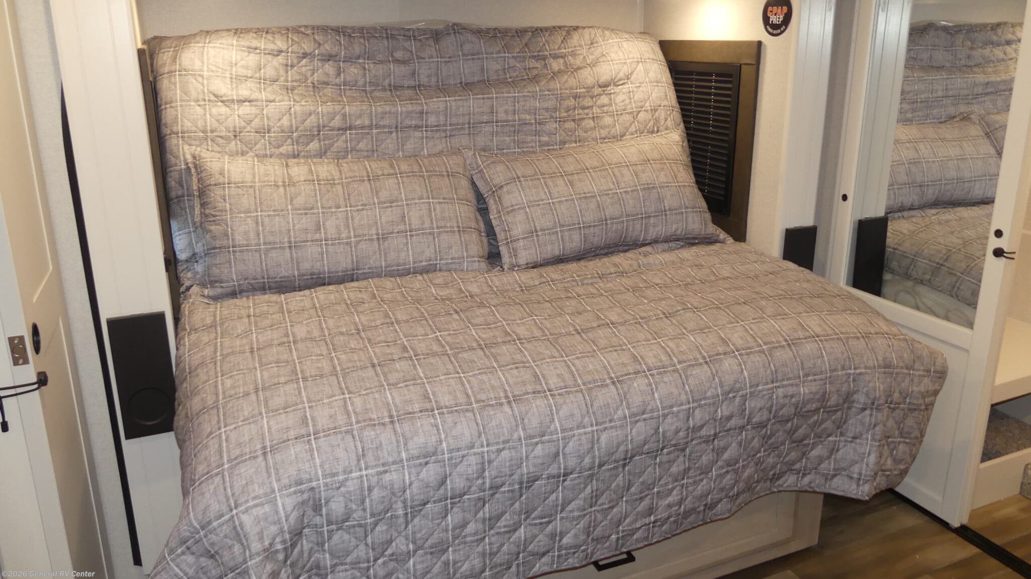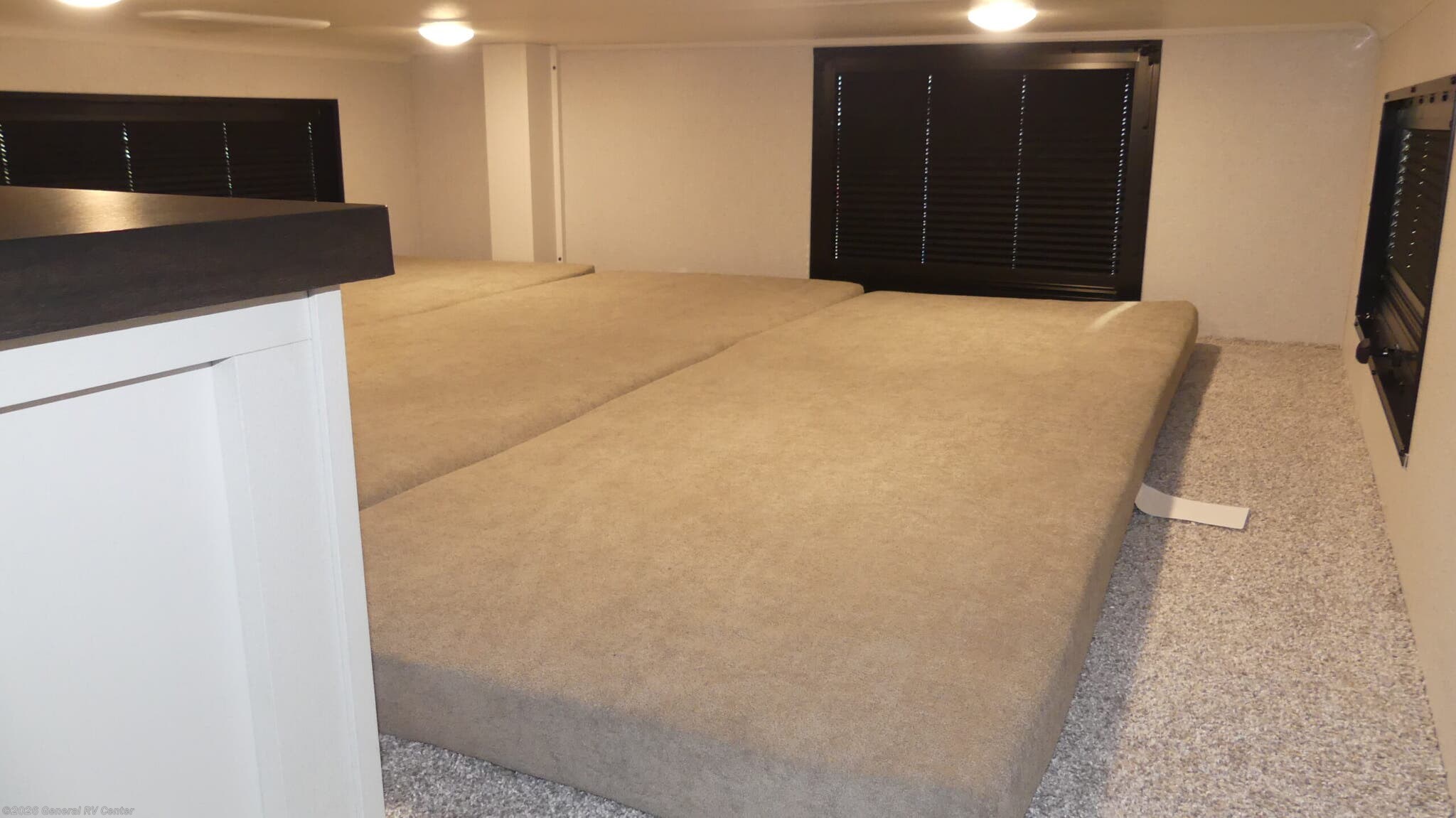 **Open Range RV Open Range 3X fifth wheel 390TBS highlights: ** * Four Slide Outs * Two Master Bedrooms * Two Power Awnings * Loft * Dual Entry Doors * Outdoor Kitchen If you enjoy luxury camping or you're looking for a residential fifth wheel to go full-time in, this Open Range 3X is the one! The middle kitchen and living room is made open by the dual opposing slides, and your crew can get comfortable on the mega lounge with two tables. The chef of your group will love cooking on GE free-standing four burner range, or they can use the GE residential microwave to heat up leftovers. The standard dishwasher and central vacuum make cleanup a breeze. A waterfall island with four chairs will provide a place to dine and the hidden pantry behind the swing-out entertainment center can hold snacks galore. There is also a fireplace and smart HDTV to make movie nights cozy. The front master bedroom includes a slide out king bed with a power tilt, two dressers, a large front closet, and a 32" TV to watch shows in bed. You even have your own entrance into the full bath, plus washer and dryer prep. The rear master bedroom is just as accommodating with a queen bed slide out, a wardrobe and a dresser, plus a second full bath with its own exterior entry door. And the loft above the rear bedroom provides even more sleeping space. With any Open Range 3X fifth wheel by Open Range RV, you will enjoy residential luxuries and an exceptional build. The TuffShell construction includes vacuum bonded laminated fiberglass and welded aluminum frames for added strength, and the PVC roofing membrane is ultra durable. You can plan to camp year around or go full-time since there is a mandatory Four Season Package that includes a heated and enclosed underbelly, a 40K BTU high-performance furnace, double insulated baggage doors, and more. The residential features continue on with the mandatory Executive Package with the TravelLINK Smart RV system, Keyed-Alike entry and baggage doors, painted fiberglass front cap with LED lighting, and three 15,000 BTU A/C units with quiet residential return air. Inside, you'll enjoy GE kitchen appliances, sleek square windows with integrated blinds, ceramic subway tile backsplash, a glass shower door, and the list of amenities goes on!