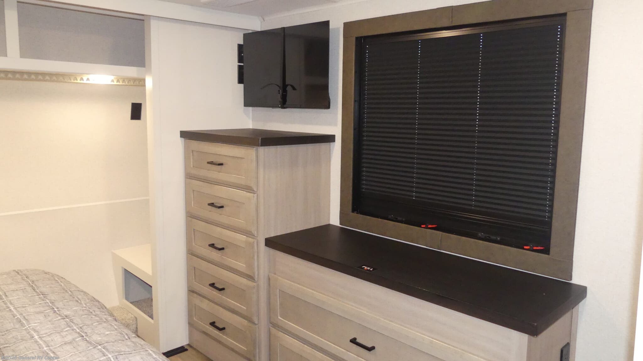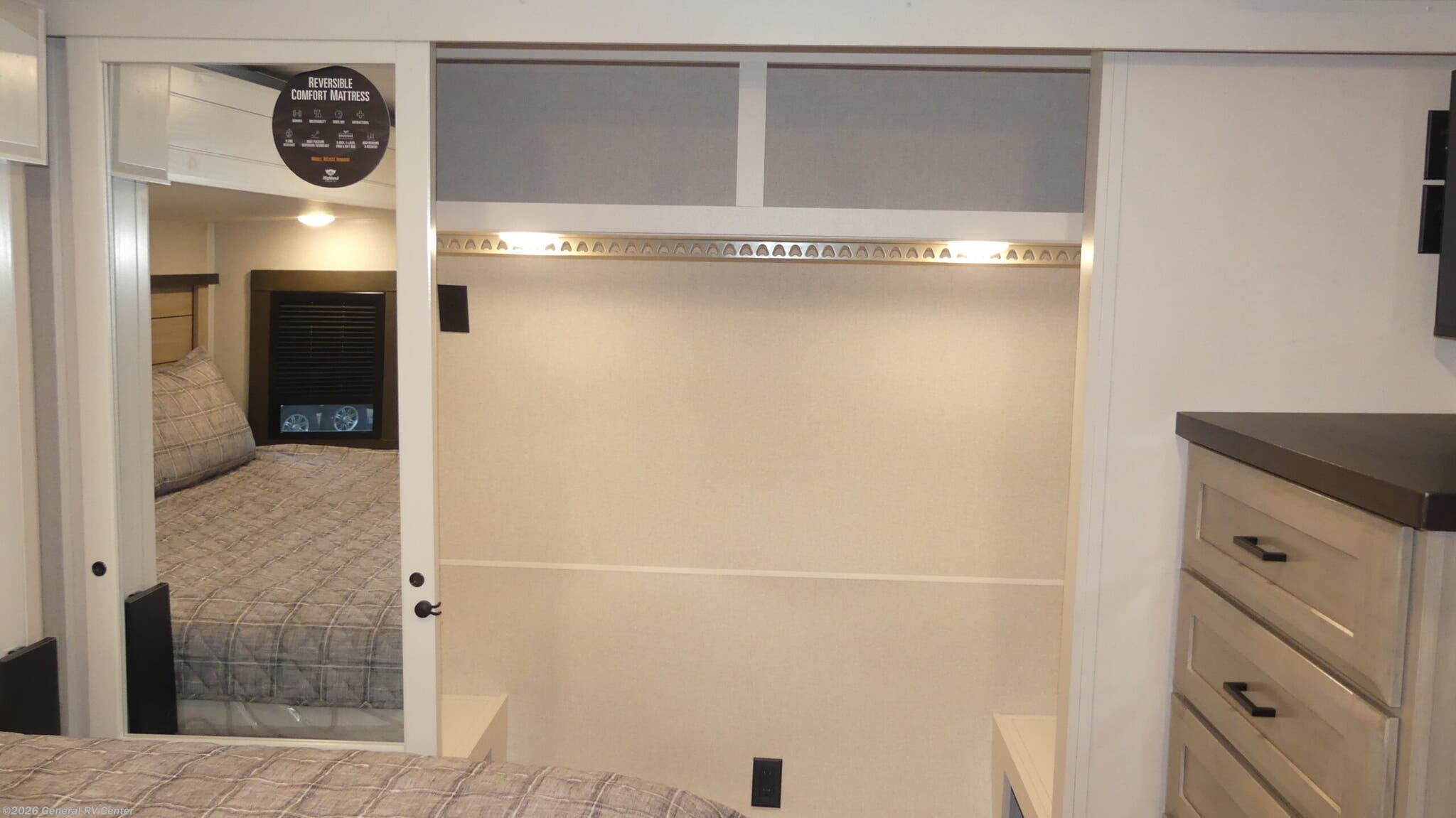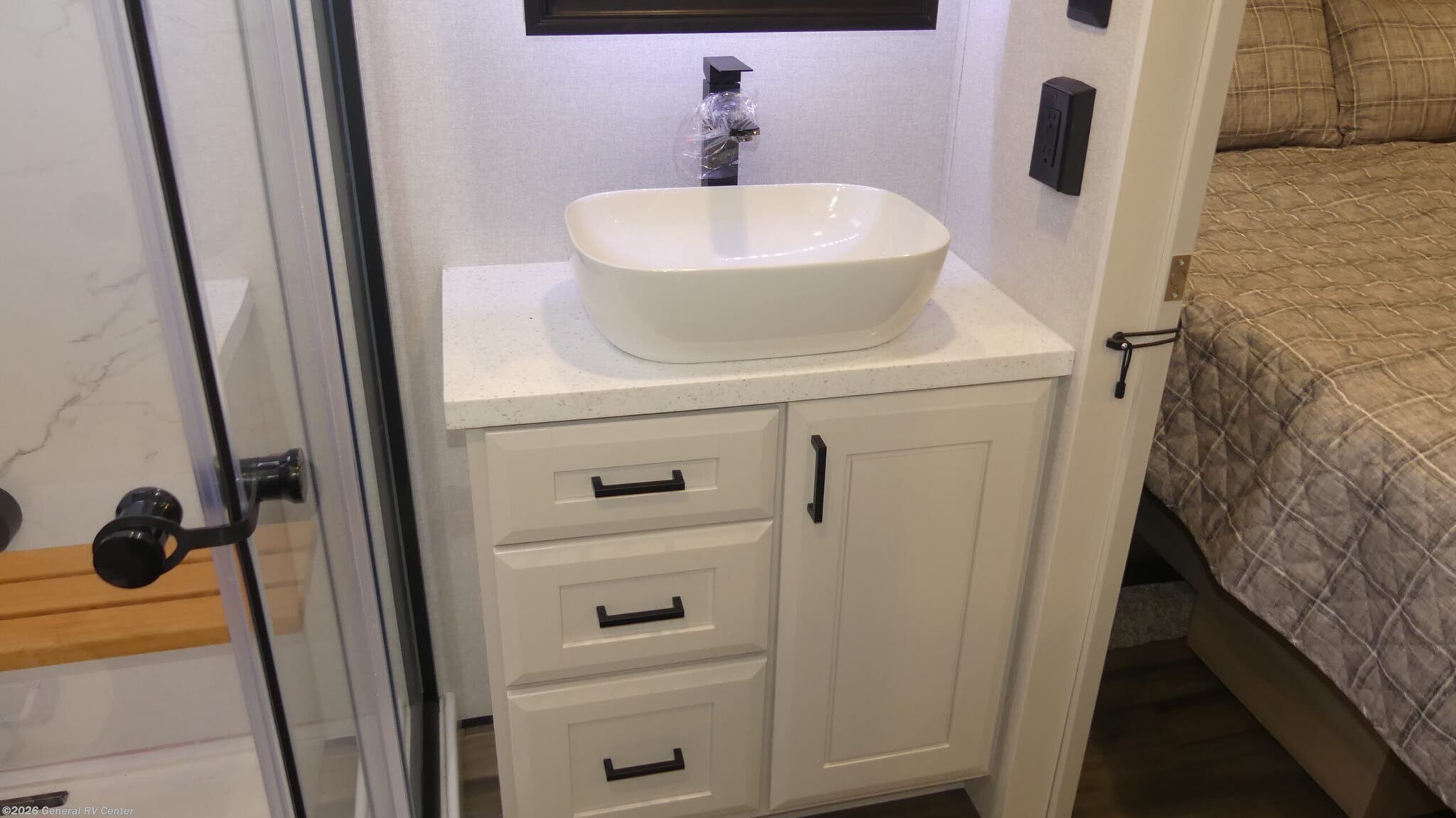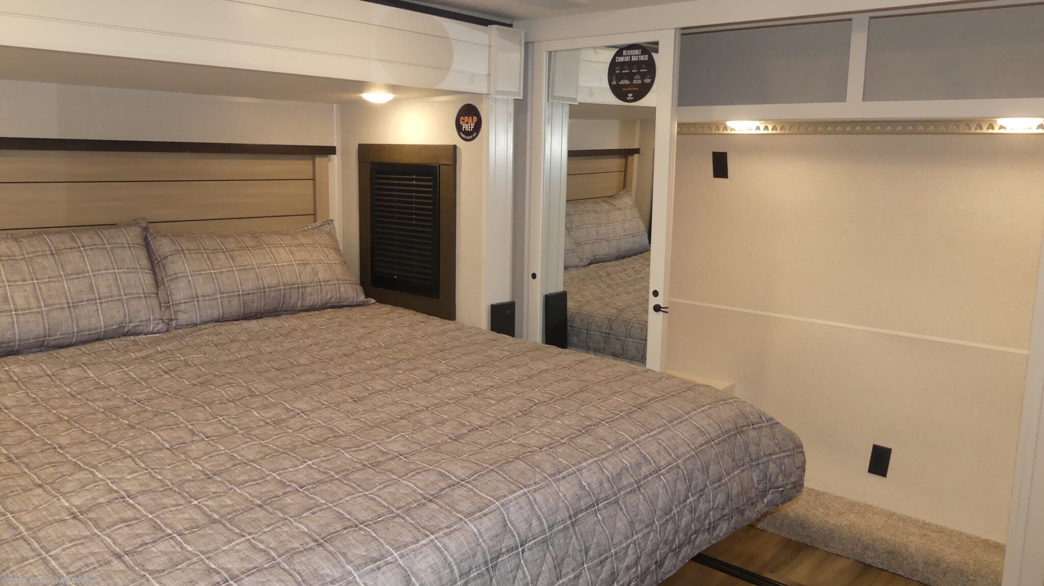 **Open Range RV Open Range 3X fifth wheel 390TBS highlights: ** * Four Slide Outs * Two Master Bedrooms * Two Power Awnings * Loft * Dual Entry Doors * Outdoor Kitchen If you enjoy luxury camping or you're looking for a residential fifth wheel to go full-time in, this Open Range 3X is the one! The middle kitchen and living room is made open by the dual opposing slides, and your crew can get comfortable on the mega lounge with two tables. The chef of your group will love cooking on GE free-standing four burner range, or they can use the GE residential microwave to heat up leftovers. The standard dishwasher and central vacuum make cleanup a breeze. A waterfall island with four chairs will provide a place to dine and the hidden pantry behind the swing-out entertainment center can hold snacks galore. There is also a fireplace and smart HDTV to make movie nights cozy. The front master bedroom includes a slide out king bed with a power tilt, two dressers, a large front closet, and a 32" TV to watch shows in bed. You even have your own entrance into the full bath, plus washer and dryer prep. The rear master bedroom is just as accommodating with a queen bed slide out, a wardrobe and a dresser, plus a second full bath with its own exterior entry door. And the loft above the rear bedroom provides even more sleeping space. With any Open Range 3X fifth wheel by Open Range RV, you will enjoy residential luxuries and an exceptional build. The TuffShell construction includes vacuum bonded laminated fiberglass and welded aluminum frames for added strength, and the PVC roofing membrane is ultra durable. You can plan to camp year around or go full-time since there is a mandatory Four Season Package that includes a heated and enclosed underbelly, a 40K BTU high-performance furnace, double insulated baggage doors, and more. The residential features continue on with the mandatory Executive Package with the TravelLINK Smart RV system, Keyed-Alike entry and baggage doors, painted fiberglass front cap with LED lighting, and three 15,000 BTU A/C units with quiet residential return air. Inside, you'll enjoy GE kitchen appliances, sleek square windows with integrated blinds, ceramic subway tile backsplash, a glass shower door, and the list of amenities goes on!