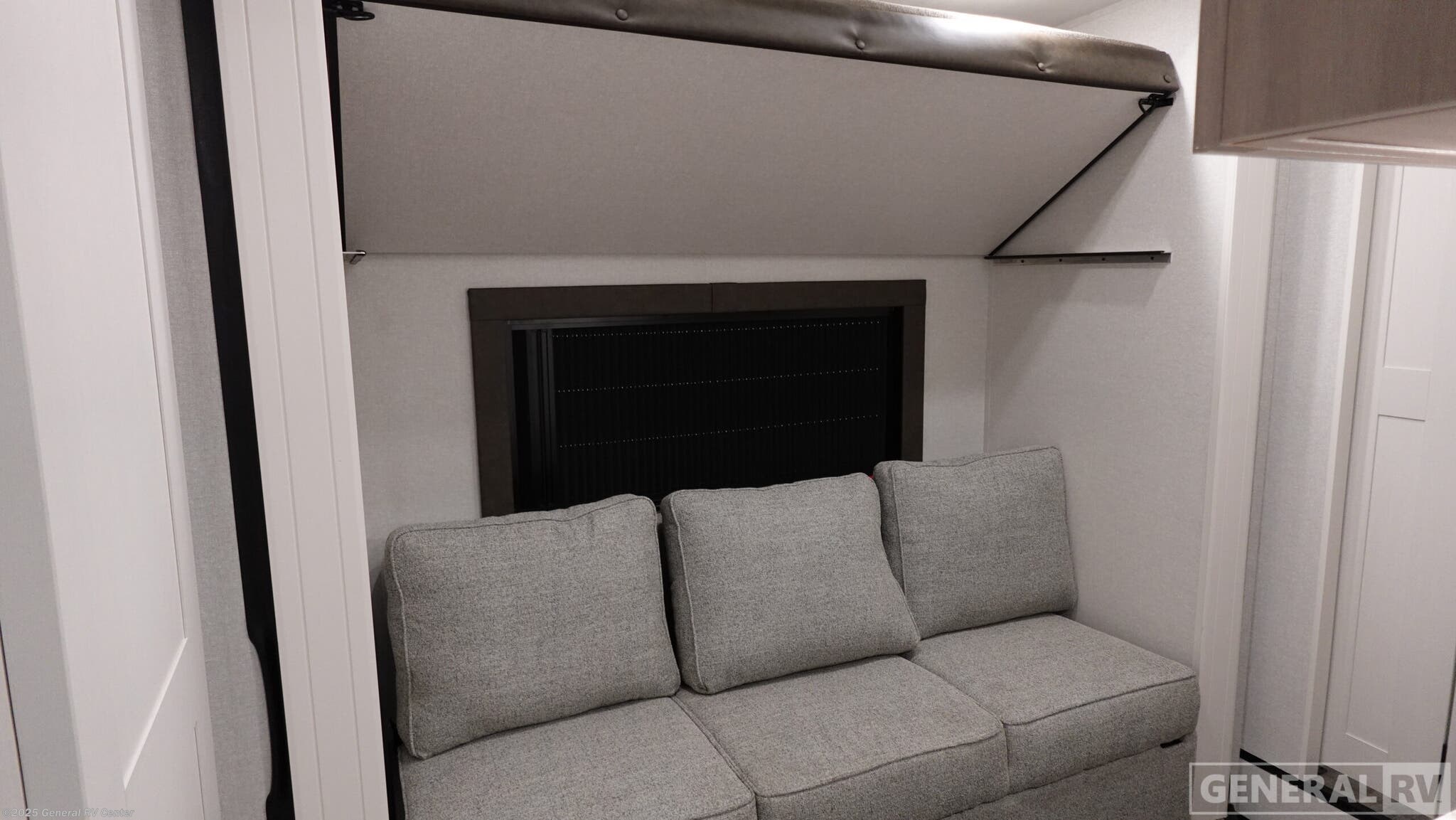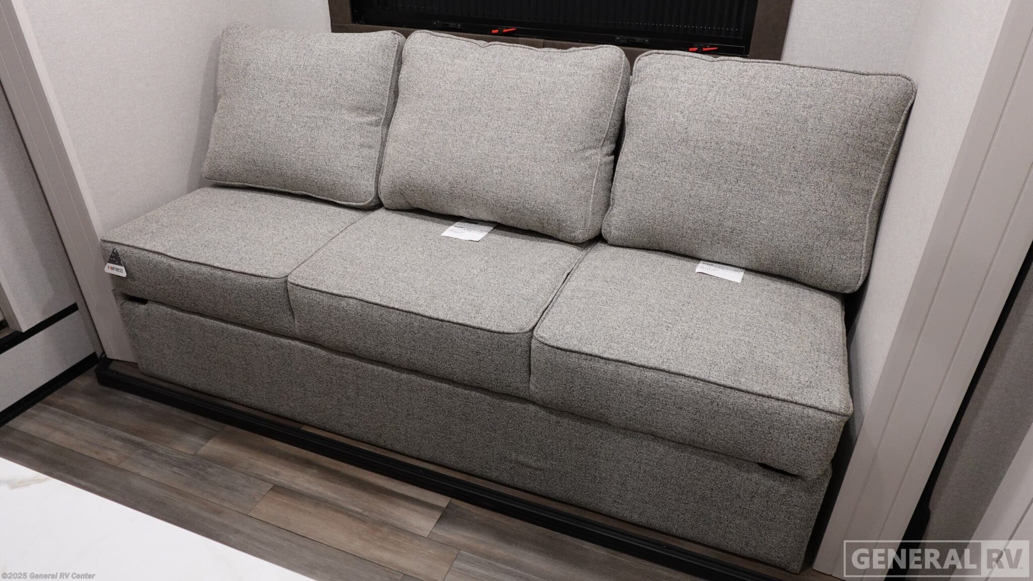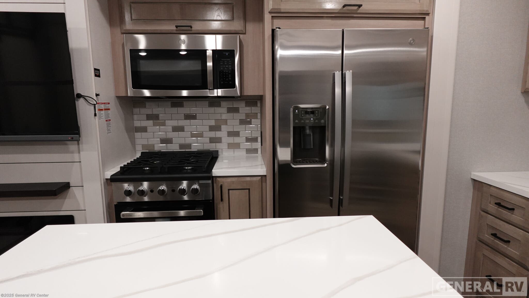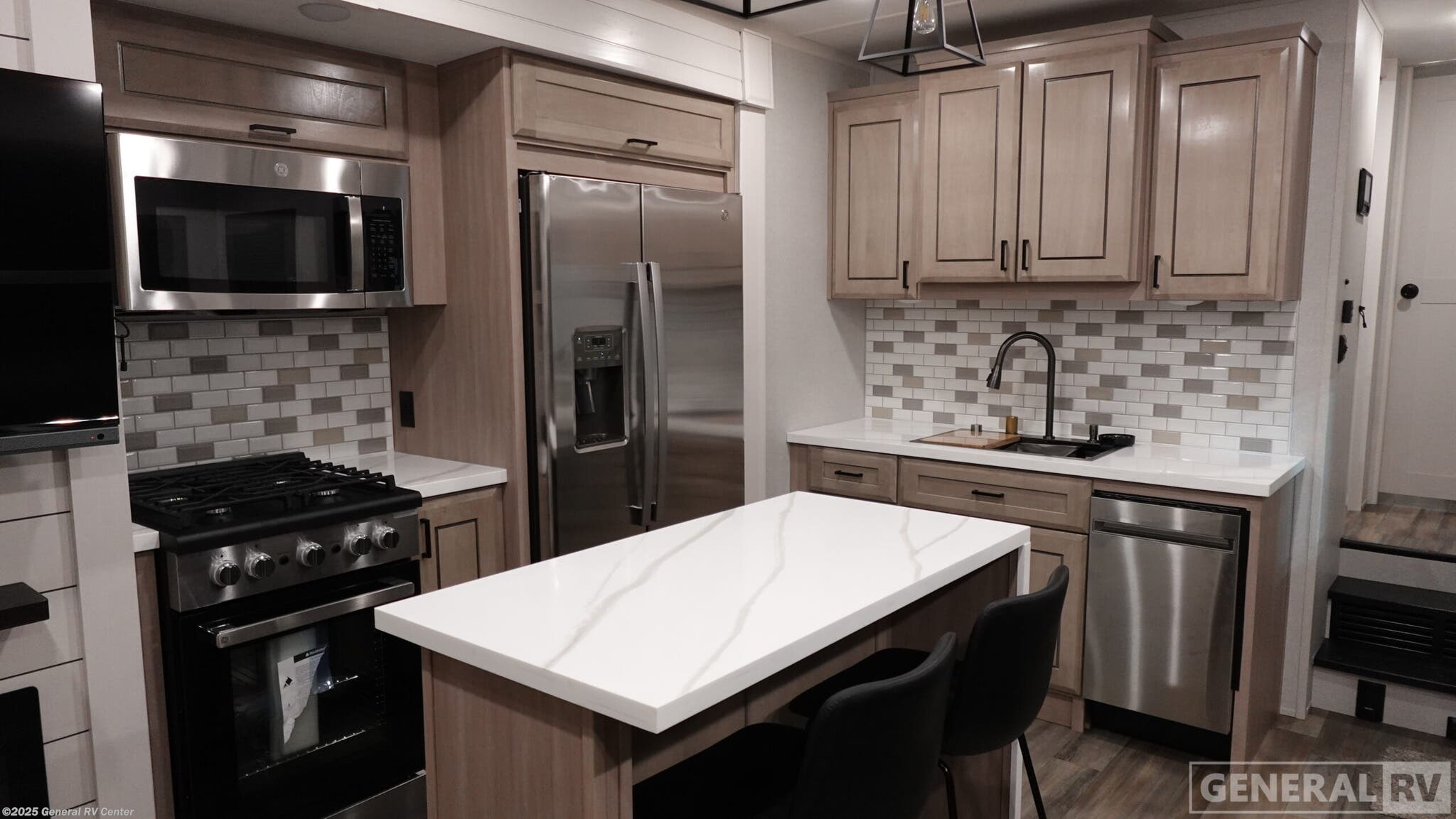 The 2026 Highland Ridge Open Range 3X 393TBR is a true marvel of modern RV design, offering an unparalleled blend of luxury and functionality. With a spacious layout that stretches 44 feet in length, this fifth wheel is perfect for families or groups, comfortably sleeping up to 10 people. The living area is designed for ultimate relaxation, featuring a mega lounge and a stylish waterfall table, perfect for entertaining or enjoying a quiet evening by the swing-out entertainment center and fireplace. Moving through the Open Range 3X, you'll find a versatile bunk room with a flip-up bunk and bi-fold sofa, ideal for kids or guests. The master suite offers a king-sized bed and ample storage, including a dresser with a pull-out top and washer/dryer prep. For those who love cooking, the kitchen is a dream come true with a large refrigerator, microwave, and even a dishwasher to make cleanup a breeze. Enjoy outdoor living with two power awnings, providing plenty of shade for the outdoor kitchen and lounging area. Whether you're setting out on a weekend getaway or an extended adventure, the Open Range 3X 393TBR ensures you're traveling in style and comfort. For more information or to see this model in person, visit your nearest General RV dealership.