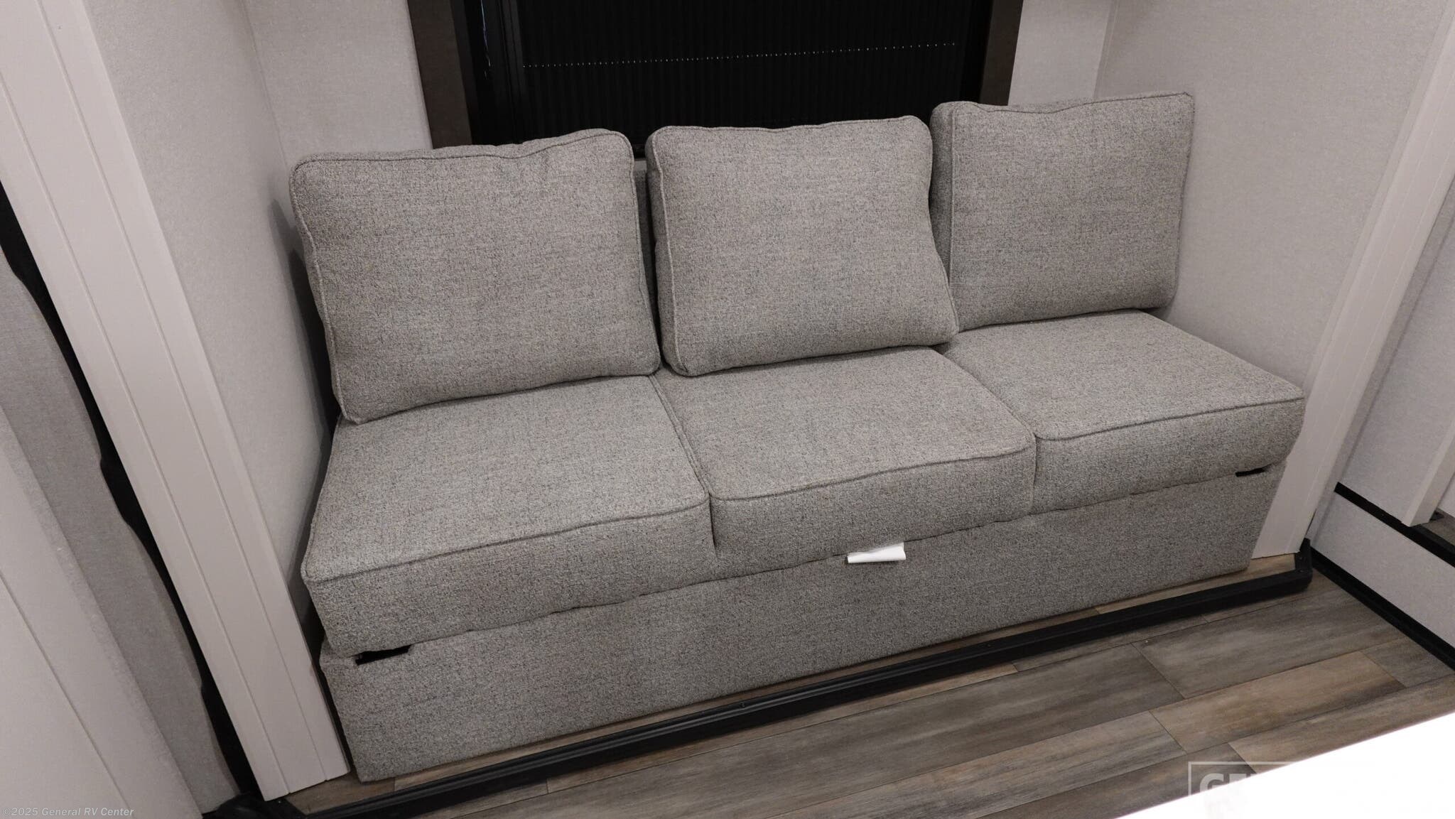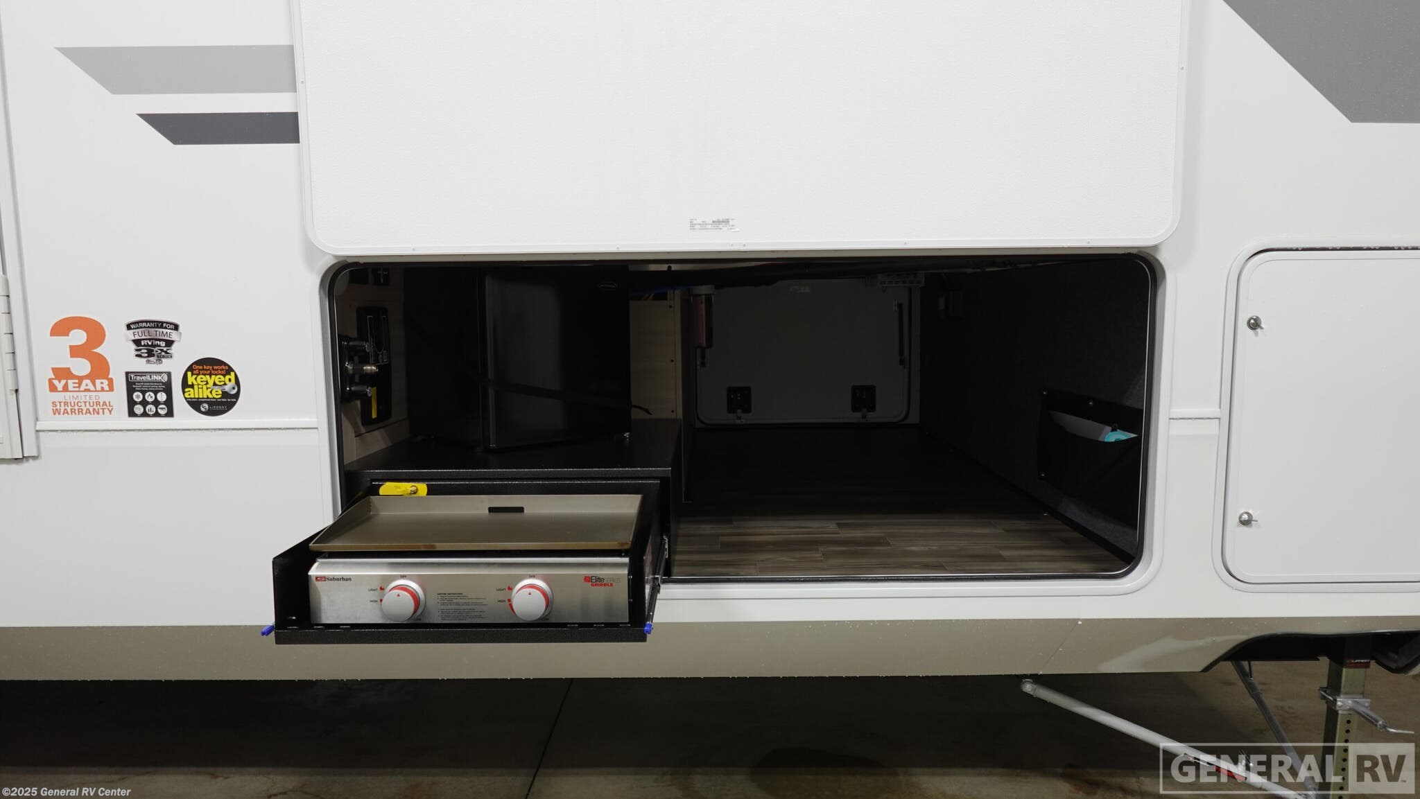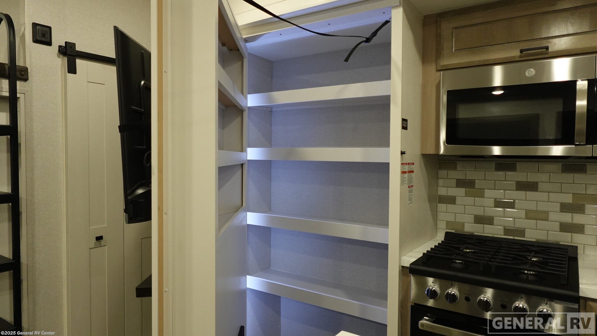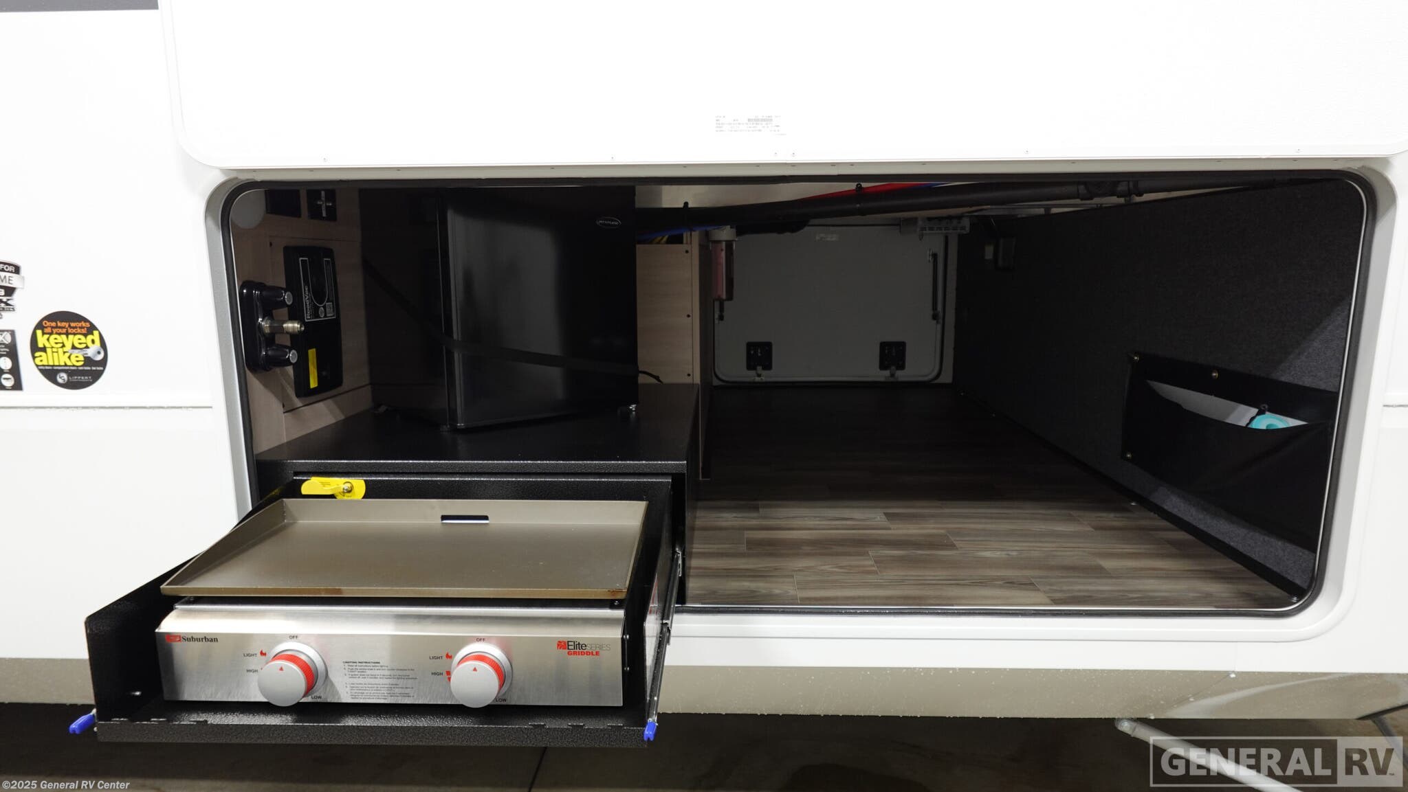 The 2026 Highland Ridge Open Range 3X 393TBR is a true marvel of modern RV design, offering an unparalleled blend of luxury and functionality. With a spacious layout that stretches 44 feet in length, this fifth wheel is perfect for families or groups, comfortably sleeping up to 10 people. The living area is designed for ultimate relaxation, featuring a mega lounge and a stylish waterfall table, perfect for entertaining or enjoying a quiet evening by the swing-out entertainment center and fireplace. Moving through the Open Range 3X, you'll find a versatile bunk room with a flip-up bunk and bi-fold sofa, ideal for kids or guests. The master suite offers a king-sized bed and ample storage, including a dresser with a pull-out top and washer/dryer prep. For those who love cooking, the kitchen is a dream come true with a large refrigerator, microwave, and even a dishwasher to make cleanup a breeze. Enjoy outdoor living with two power awnings, providing plenty of shade for the outdoor kitchen and lounging area. Whether you're setting out on a weekend getaway or an extended adventure, the Open Range 3X 393TBR ensures you're traveling in style and comfort. For more information or to see this model in person, visit your nearest General RV dealership.