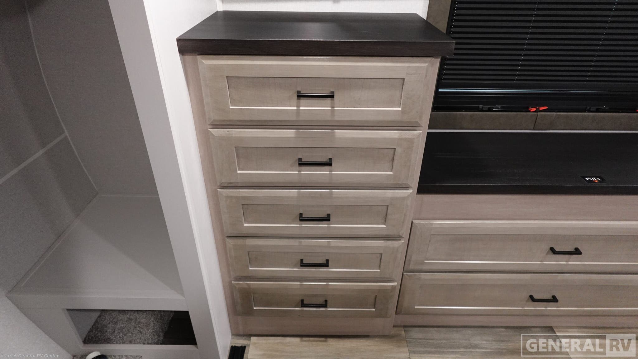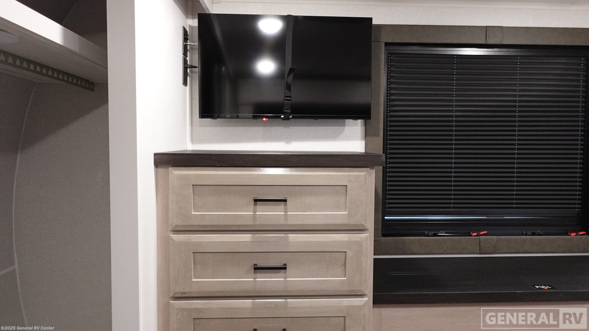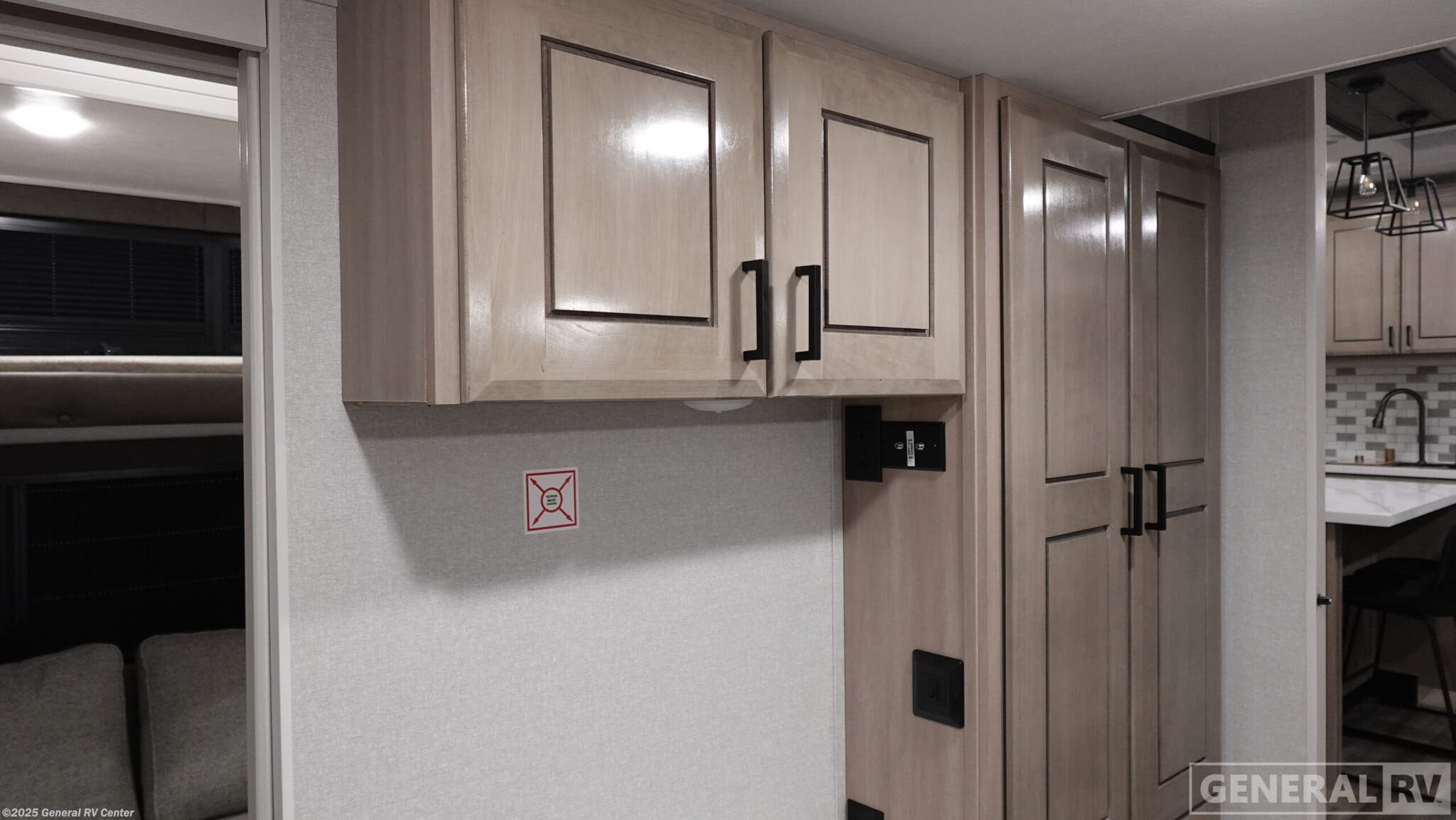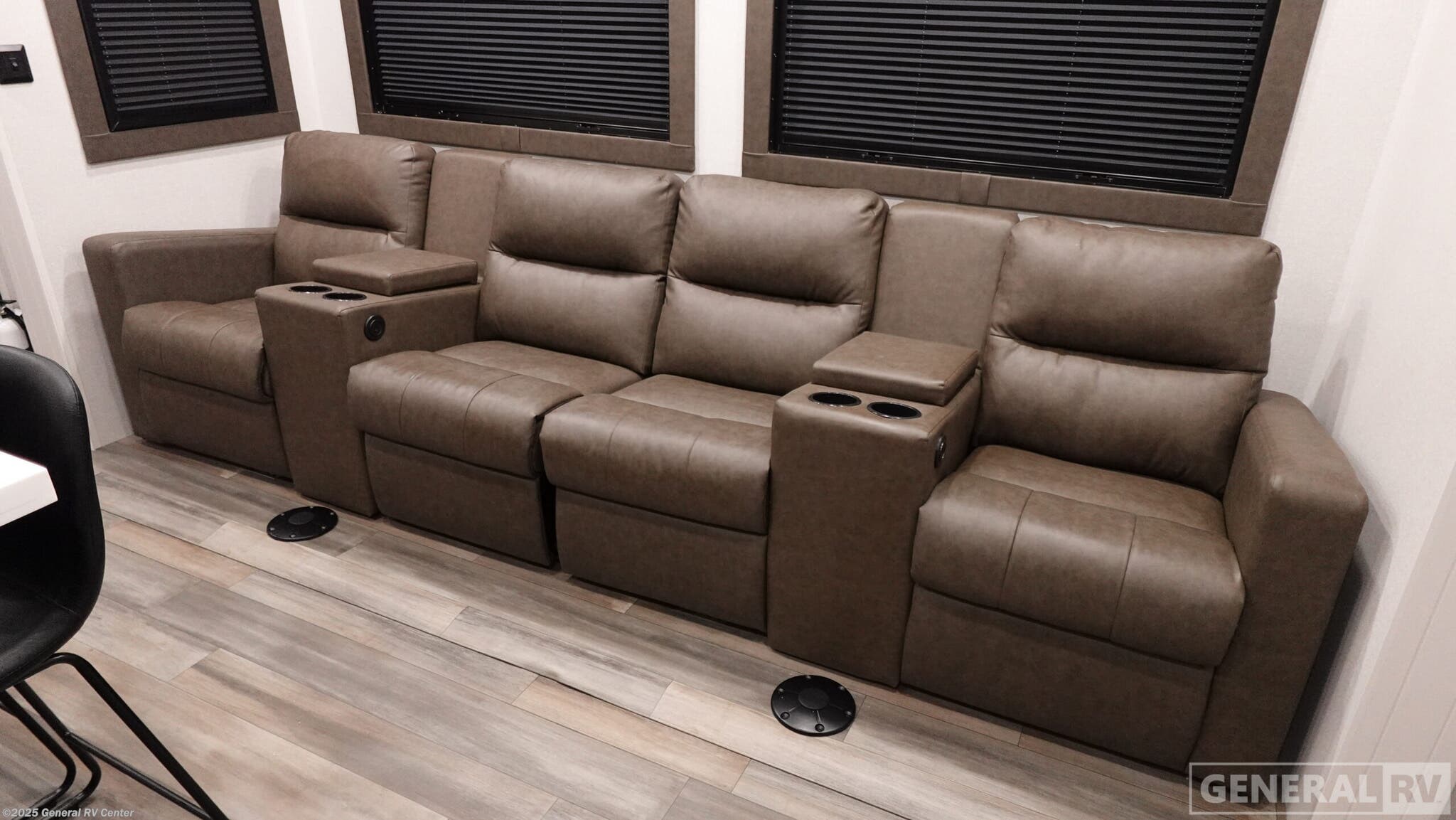 The 2026 Highland Ridge Open Range 3X 393TBR is a true marvel of modern RV design, offering an unparalleled blend of luxury and functionality. With a spacious layout that stretches 44 feet in length, this fifth wheel is perfect for families or groups, comfortably sleeping up to 10 people. The living area is designed for ultimate relaxation, featuring a mega lounge and a stylish waterfall table, perfect for entertaining or enjoying a quiet evening by the swing-out entertainment center and fireplace. Moving through the Open Range 3X, you'll find a versatile bunk room with a flip-up bunk and bi-fold sofa, ideal for kids or guests. The master suite offers a king-sized bed and ample storage, including a dresser with a pull-out top and washer/dryer prep. For those who love cooking, the kitchen is a dream come true with a large refrigerator, microwave, and even a dishwasher to make cleanup a breeze. Enjoy outdoor living with two power awnings, providing plenty of shade for the outdoor kitchen and lounging area. Whether you're setting out on a weekend getaway or an extended adventure, the Open Range 3X 393TBR ensures you're traveling in style and comfort. For more information or to see this model in person, visit your nearest General RV dealership.