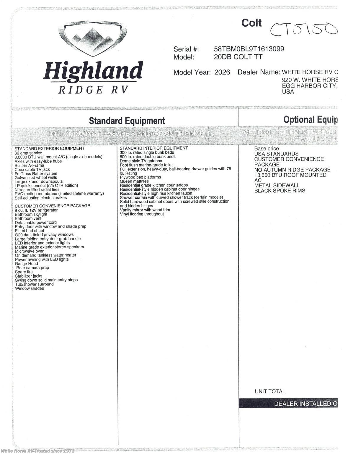 2026 Highland Ridge Colt 20DB
