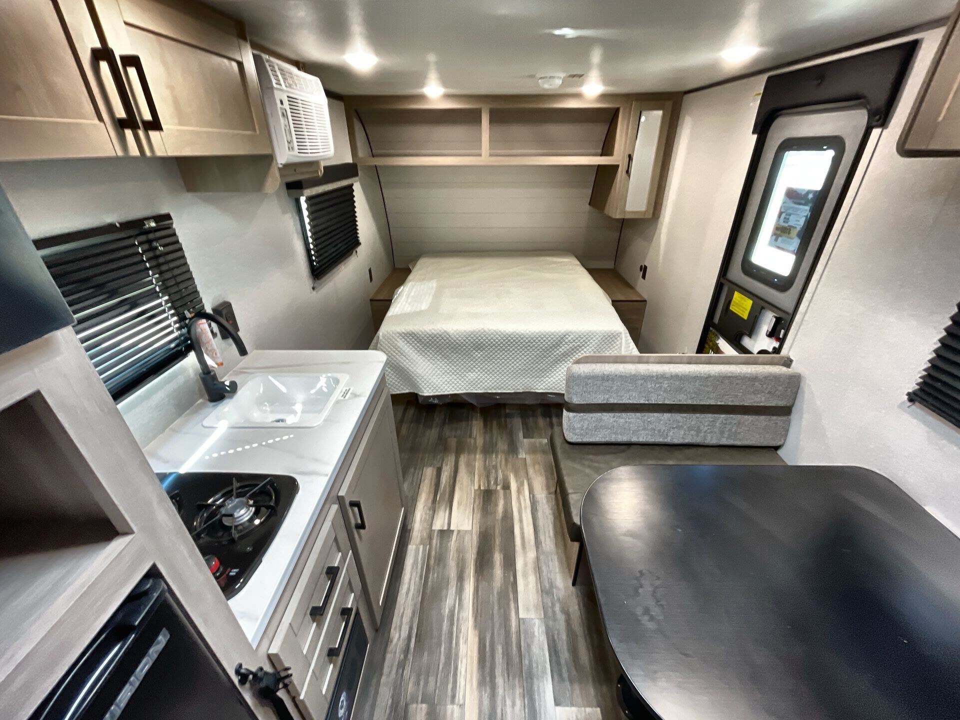 The CONV 17QB layout places a front bedroom, a mid kitchen, a mid living area, and a rear bath in a highly efficient footprint. This design maximizes usable living space while keeping the footprint highly towable for a travel trailer. Enjoy a comfortable sleeping zone, practical cooking amenities, and a clean, compact bathroom—perfect for weekend trips and extended getaways alike.