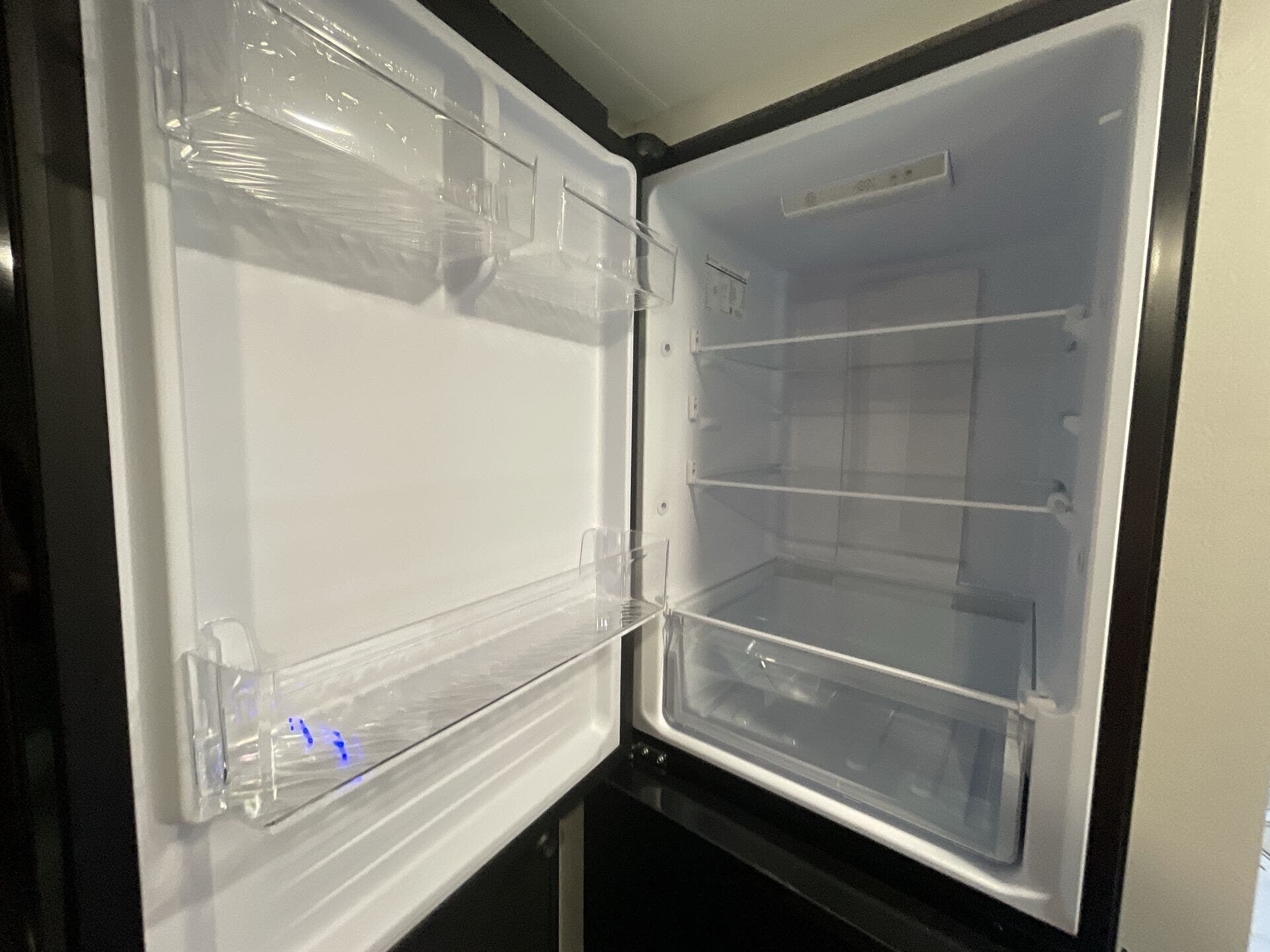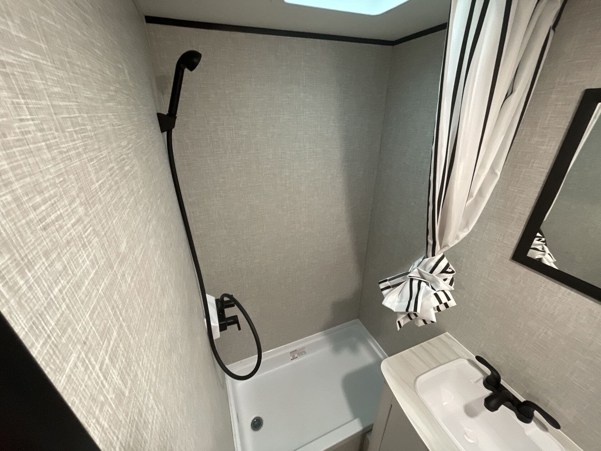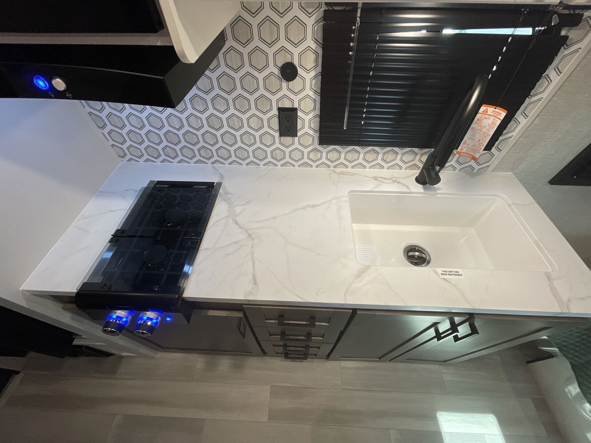 - Essential amenities including microwave, refrigerator, stove top burner, air conditioning, shower, and safety detectors (CO, LP, smoke)